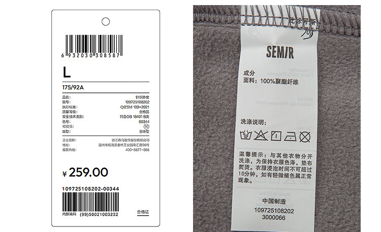 Semir Wang Anyu same style jacket men's autumn and winter double-sided velvet knitted jacket 25 thermal insulation polar fleece 109725108202