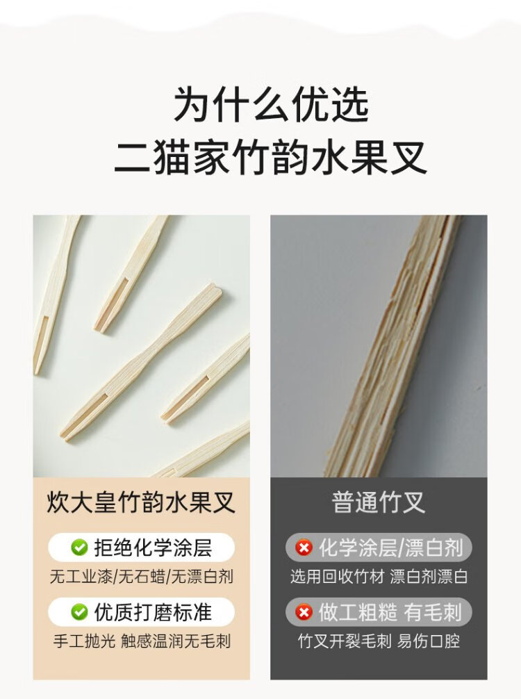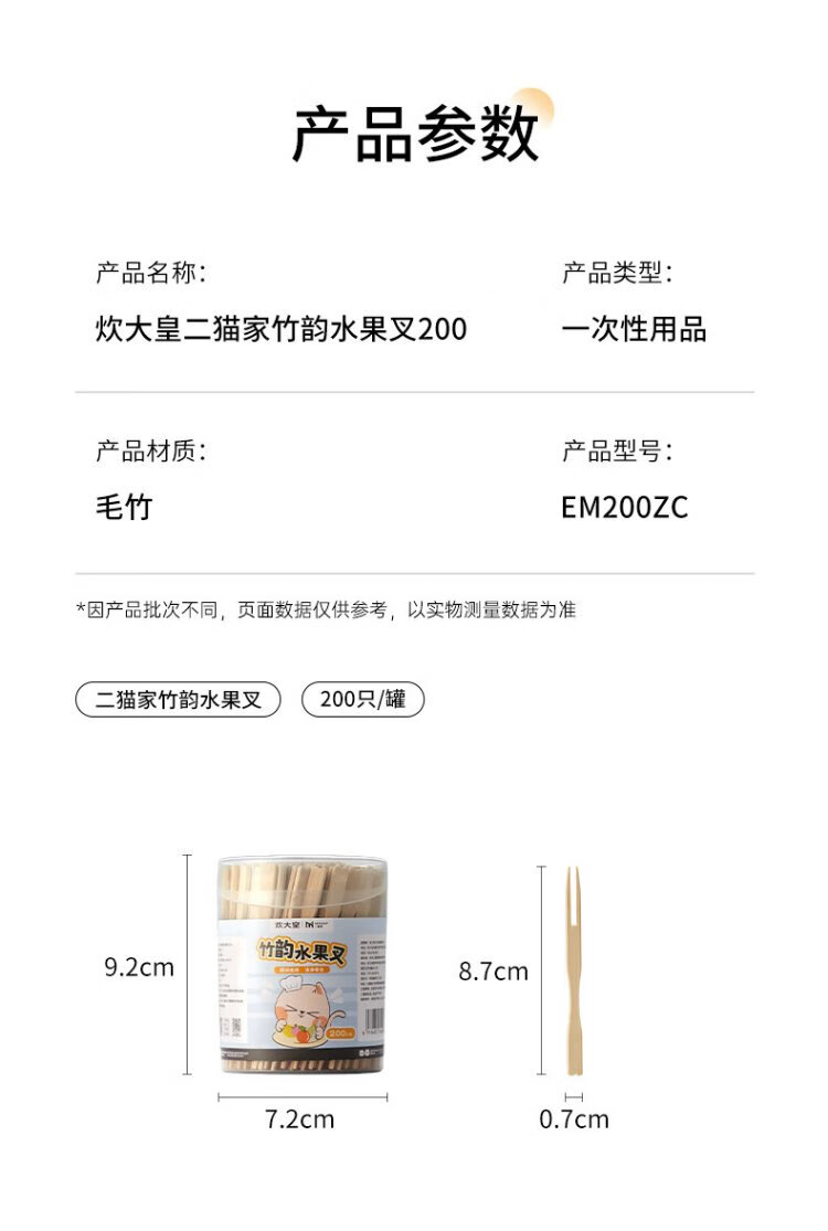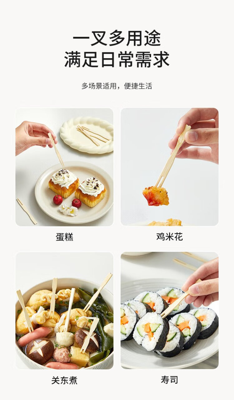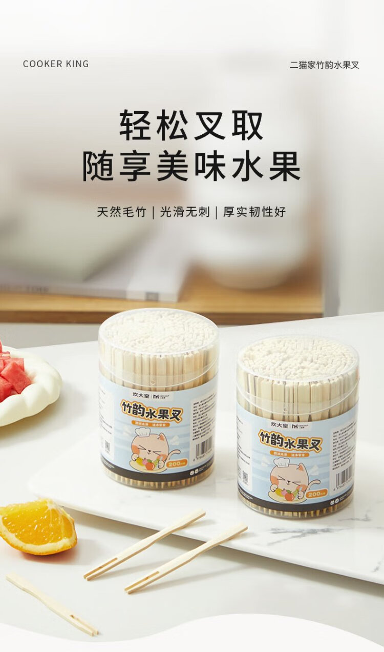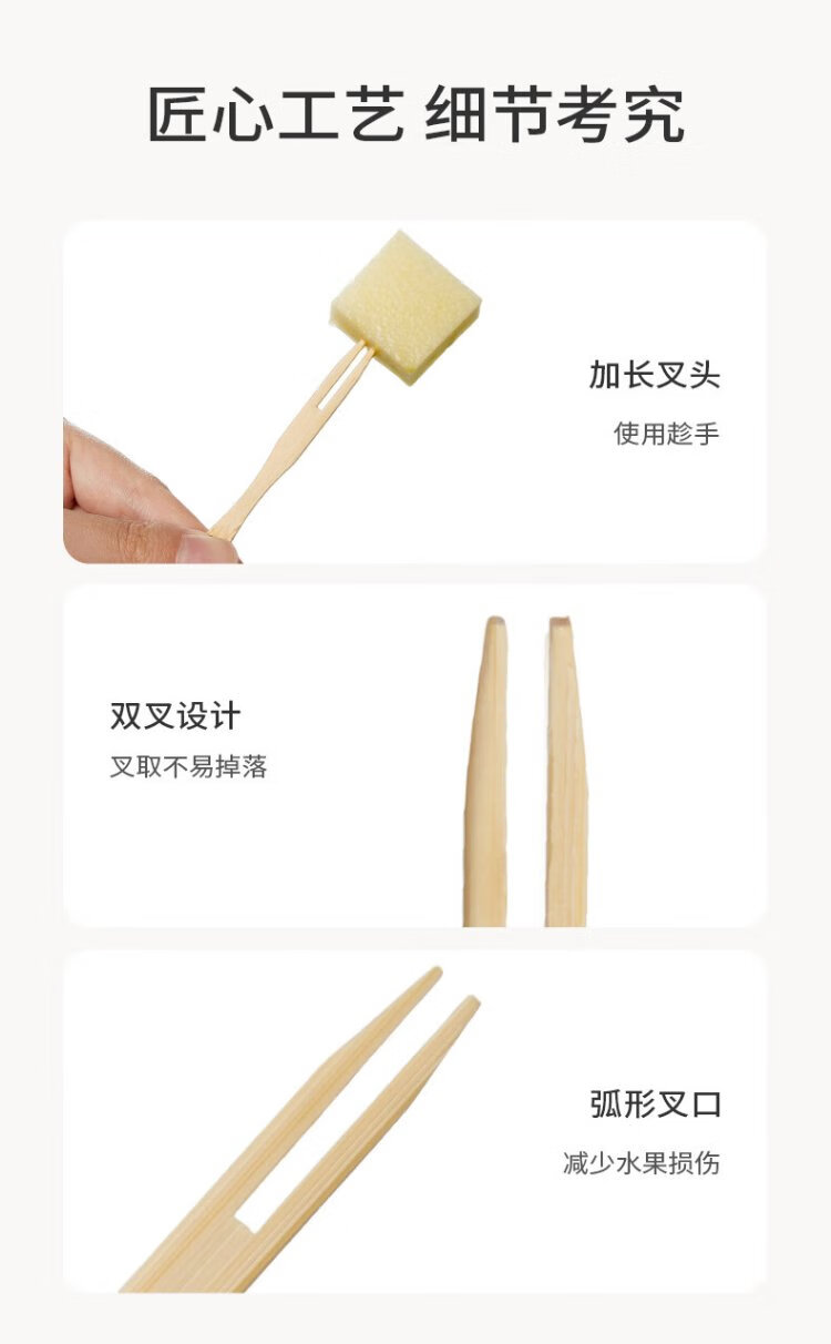 Cui Dahuang disposable fruit fork 200 pieces household large canned bamboo skewers thickened snack natural bamboo fork cake sushi skewers
