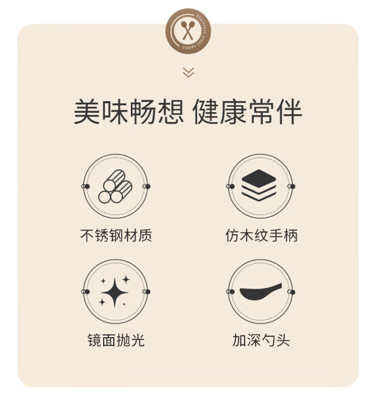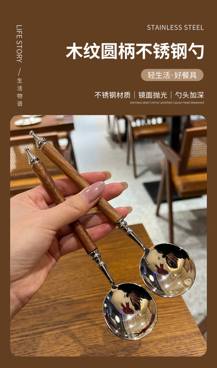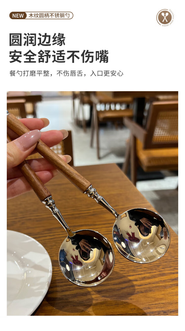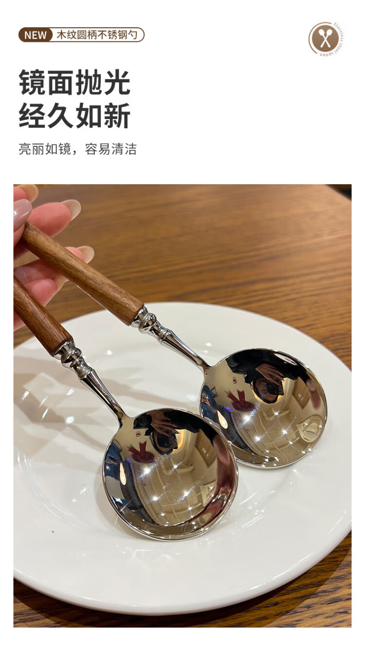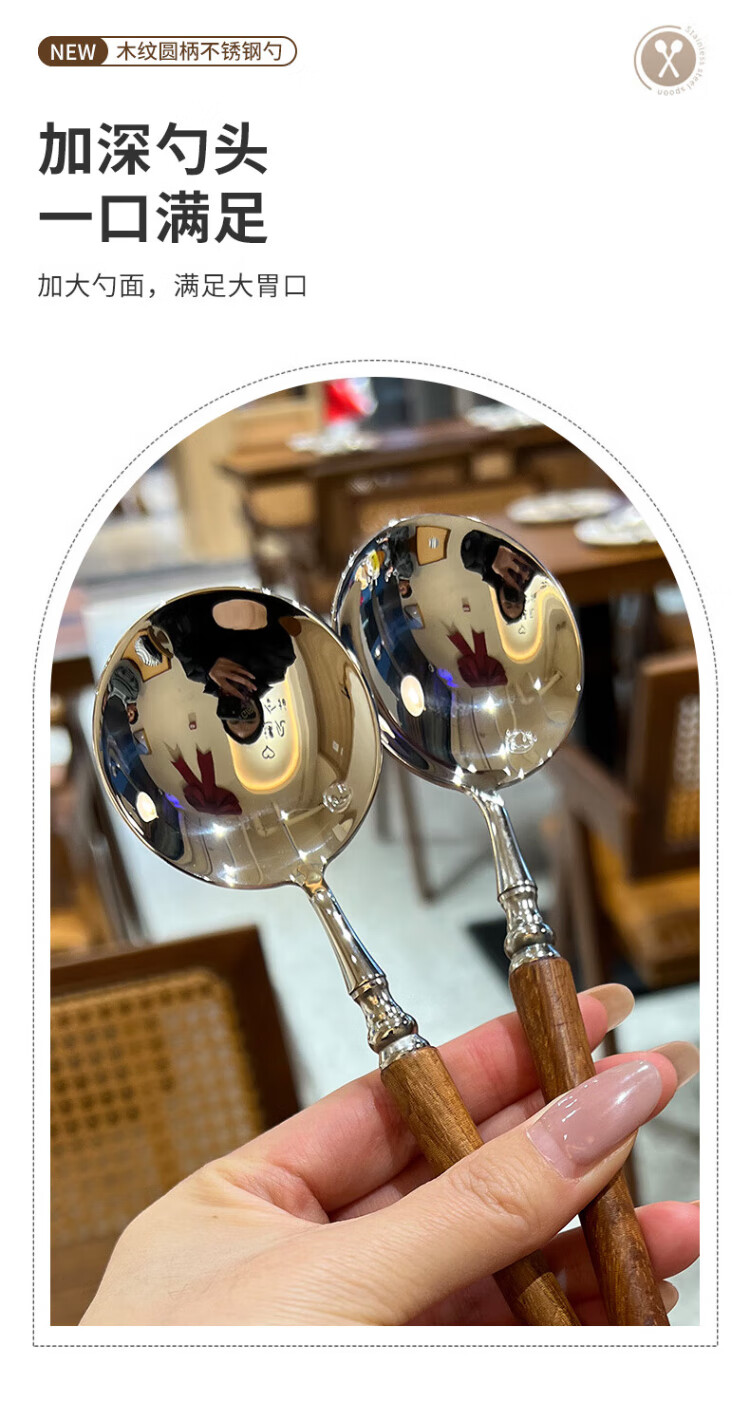 Home Easy Stainless Steel Soup and Rice Spoon Large Thickened Wood Grain Long Handled Dinner Spoon Round Spoon Household Spoon Tableware 2 Pack