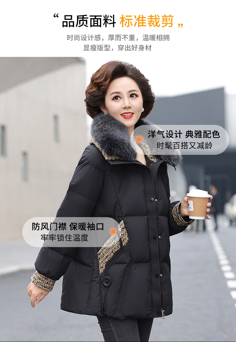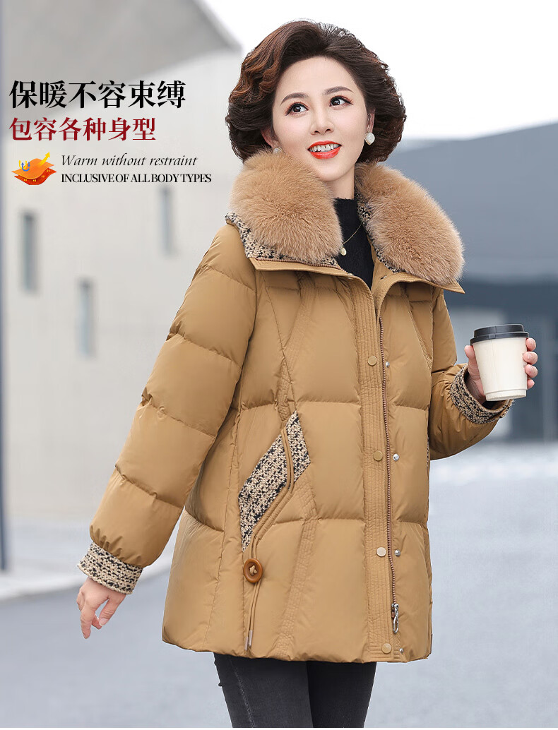 YAYA mommy down jacket 2025 winter new fashionable style middle-aged and elderly thickened short fur collar jacket