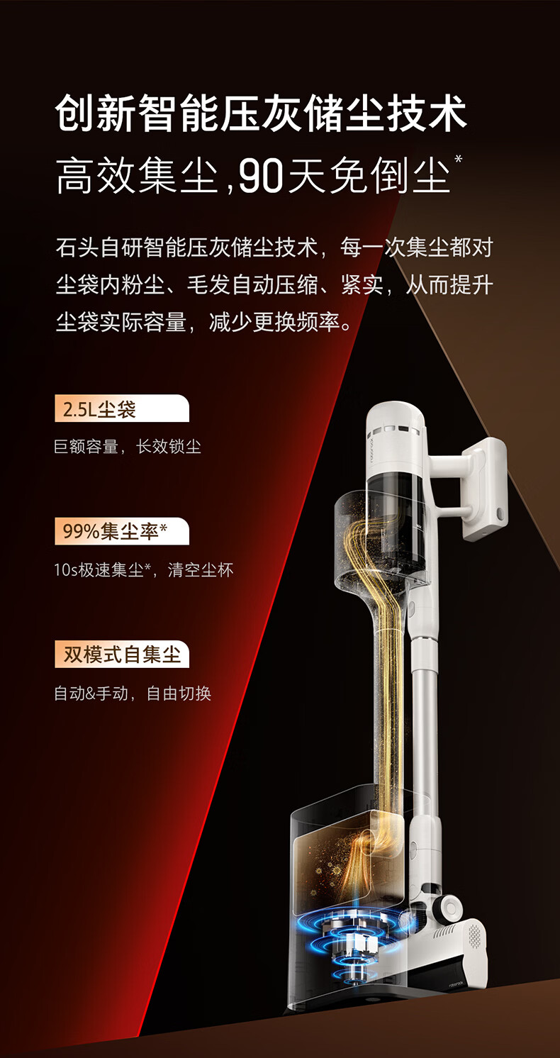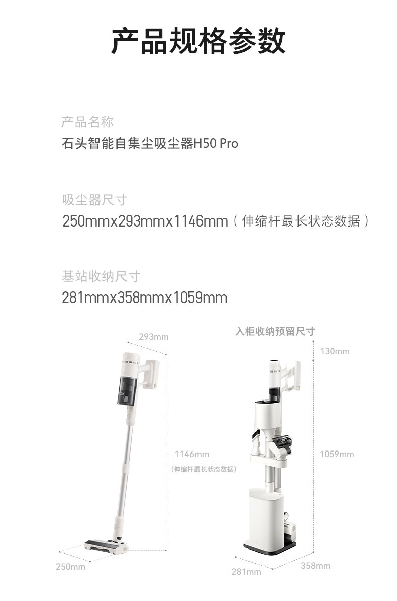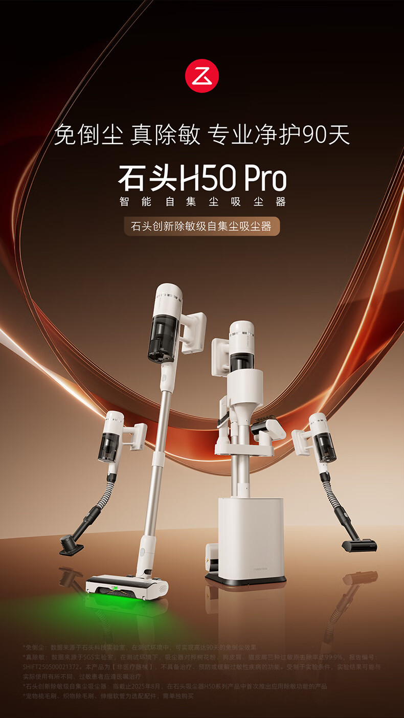 Roborock H50 Pro self-collecting vacuum cleaner, 90 days dust-free, full chain, 0 tangled hair, green light dust display, home wireless, high suction, mite removal for pets