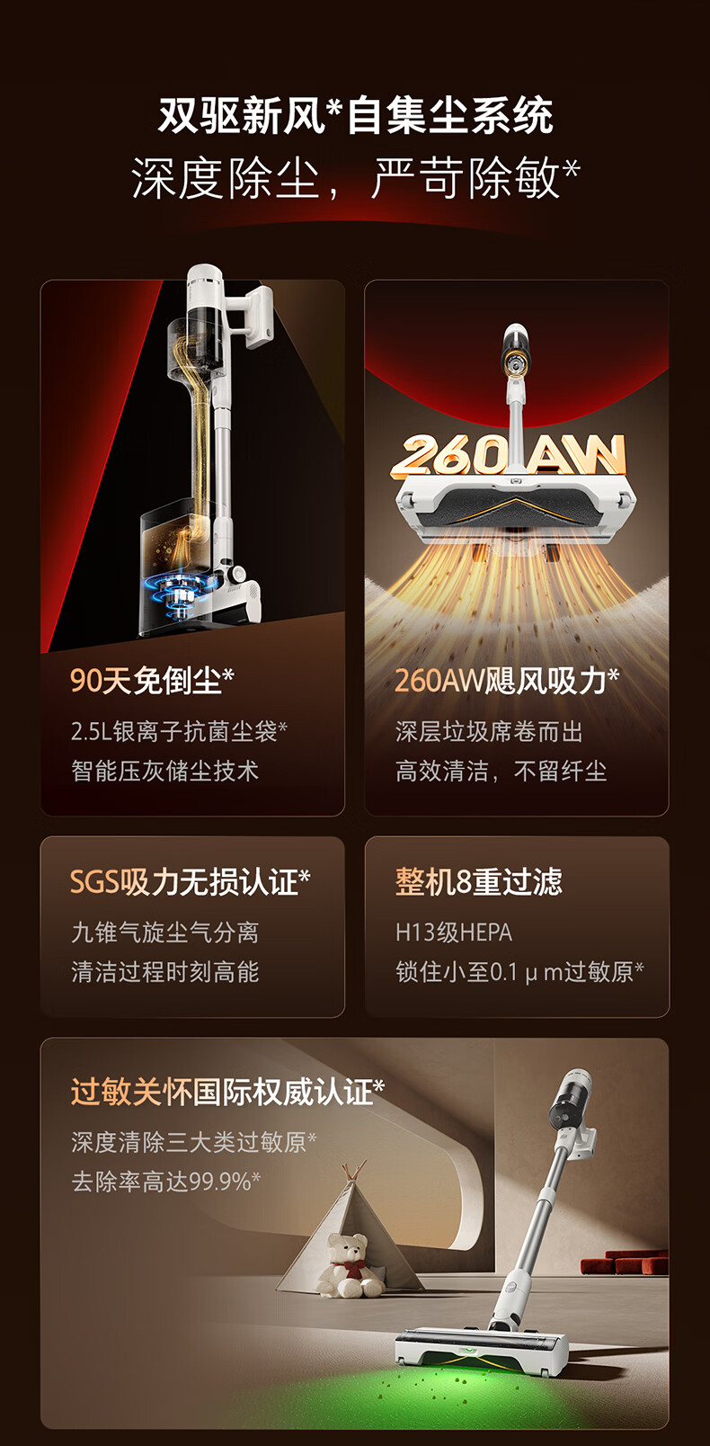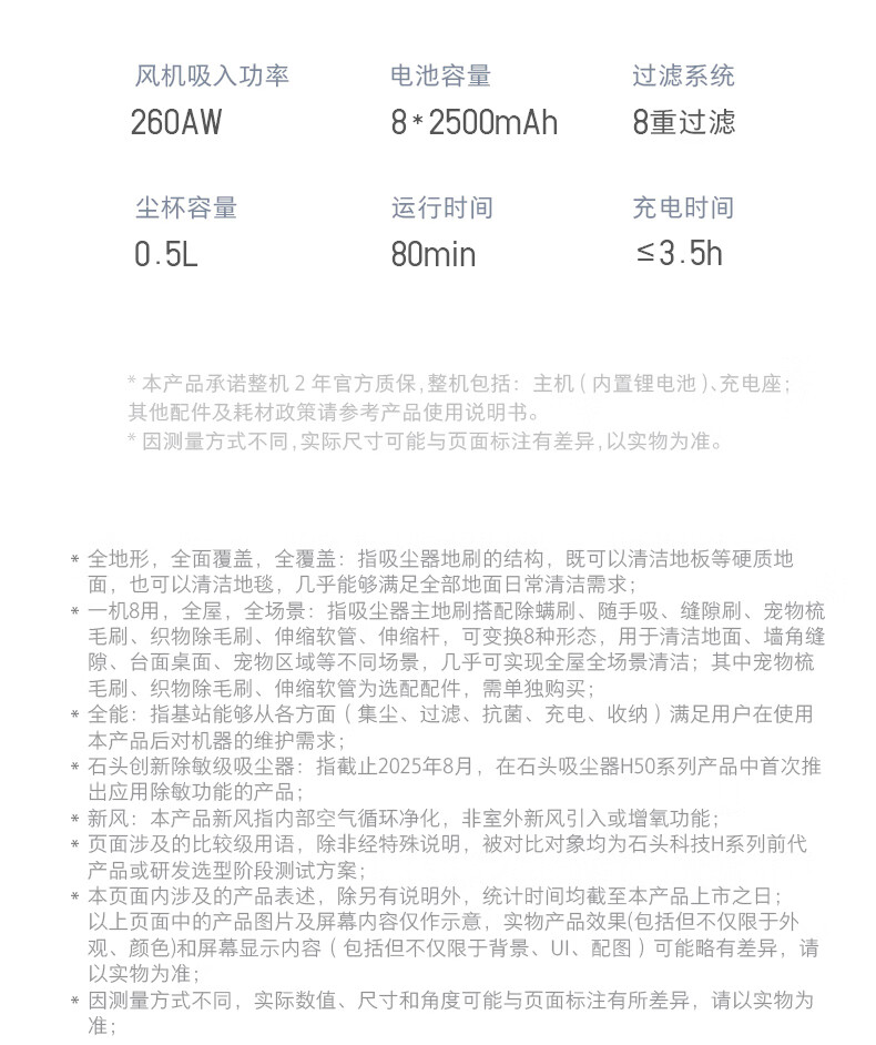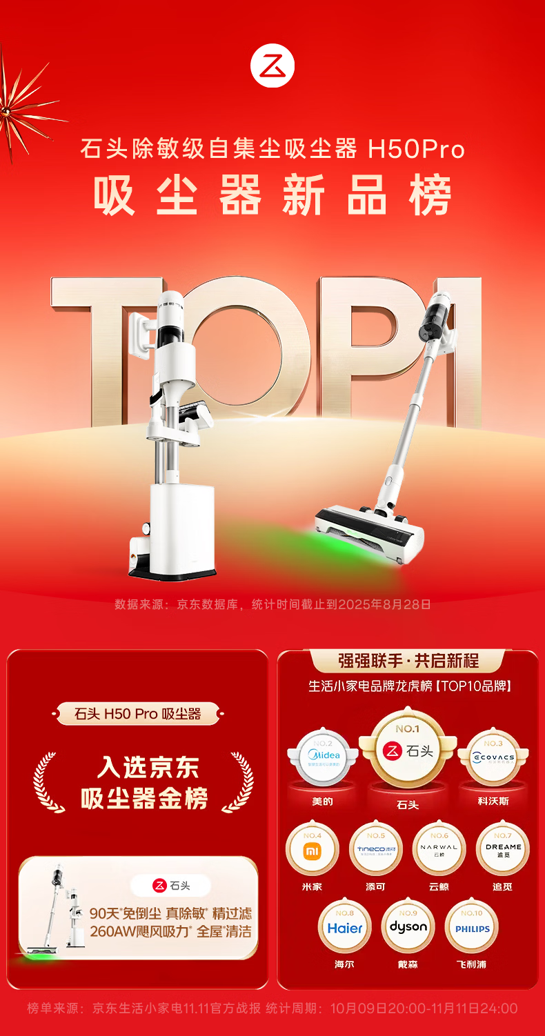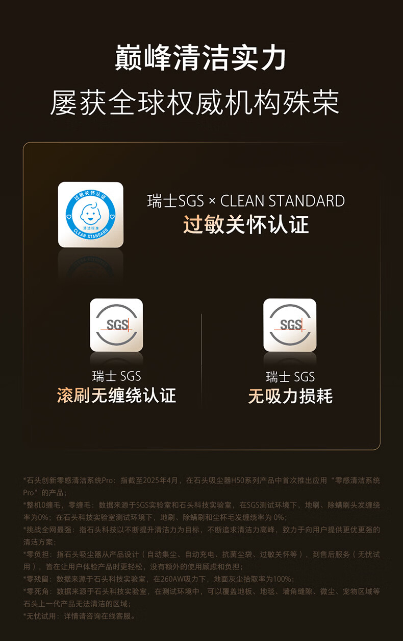 Roborock H50 Pro self-collecting vacuum cleaner, 90 days dust-free, full chain, 0 tangled hair, green light dust display, home wireless, high suction, mite removal for pets