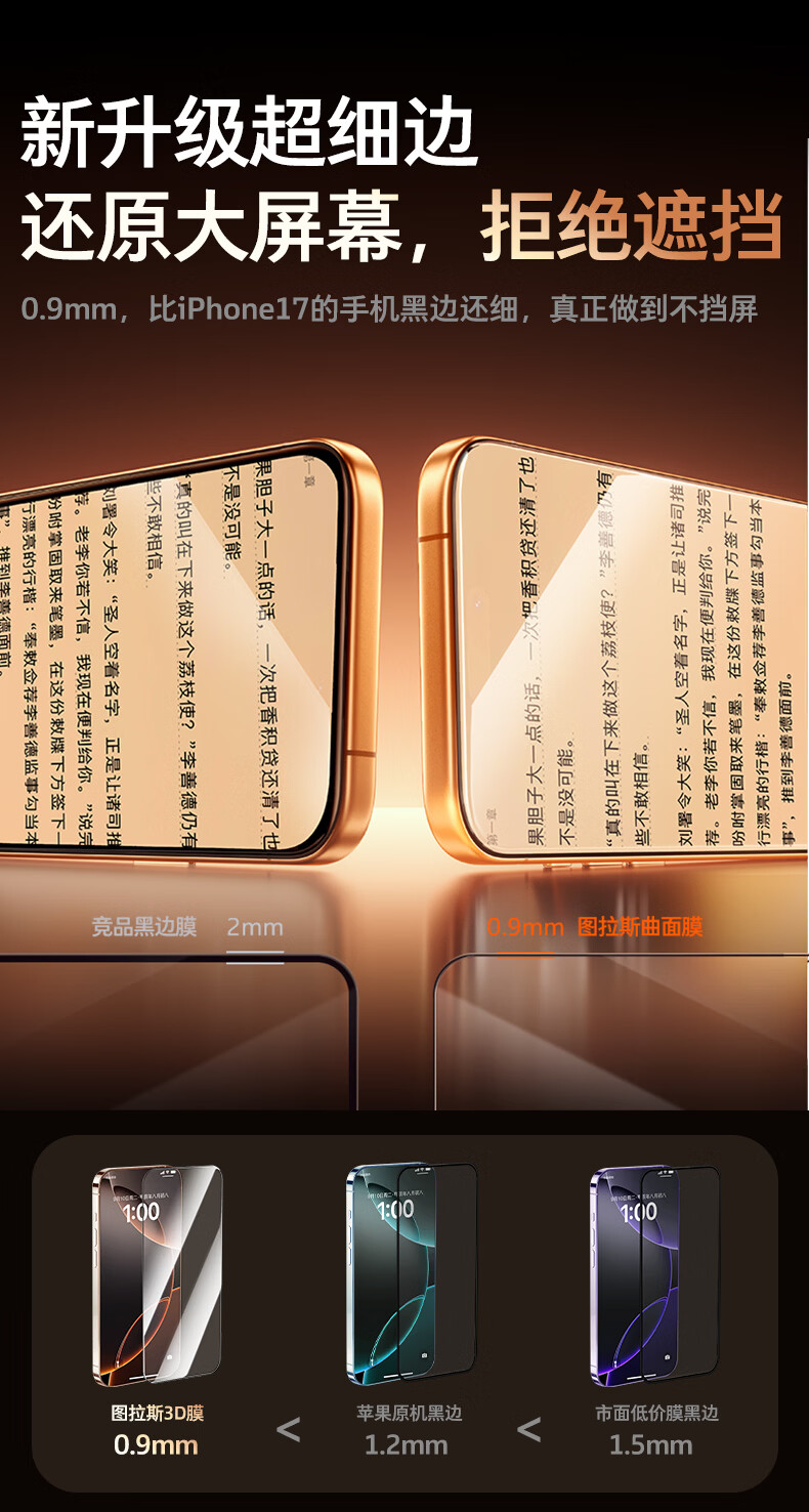 Tulas Hot Selling 1 Million | 3D Large Arc Edge Suitable for iphone17promax tempered film Apple 17promax mobile phone film 0.23mm full screen coverage HD dust-free warehouse