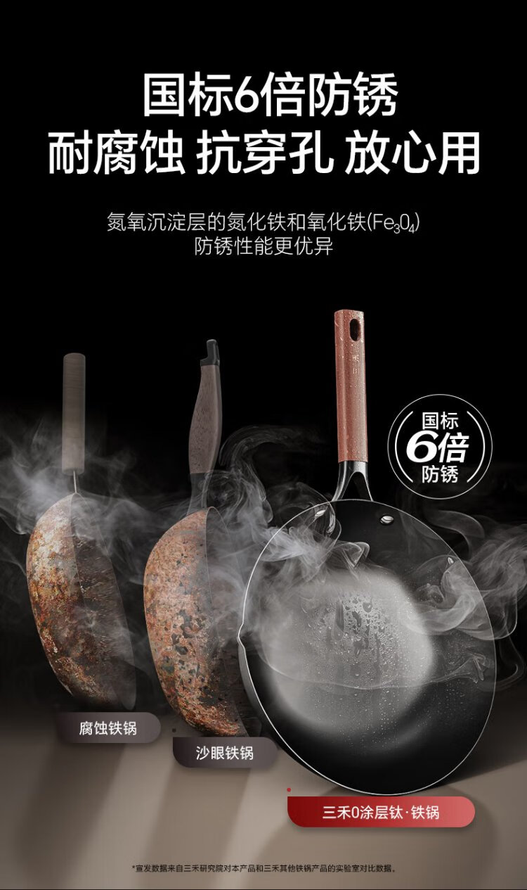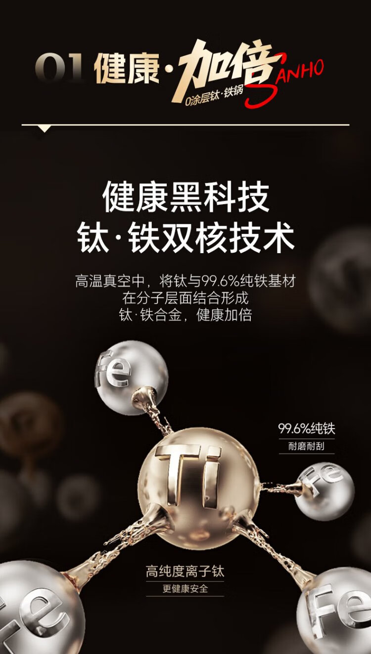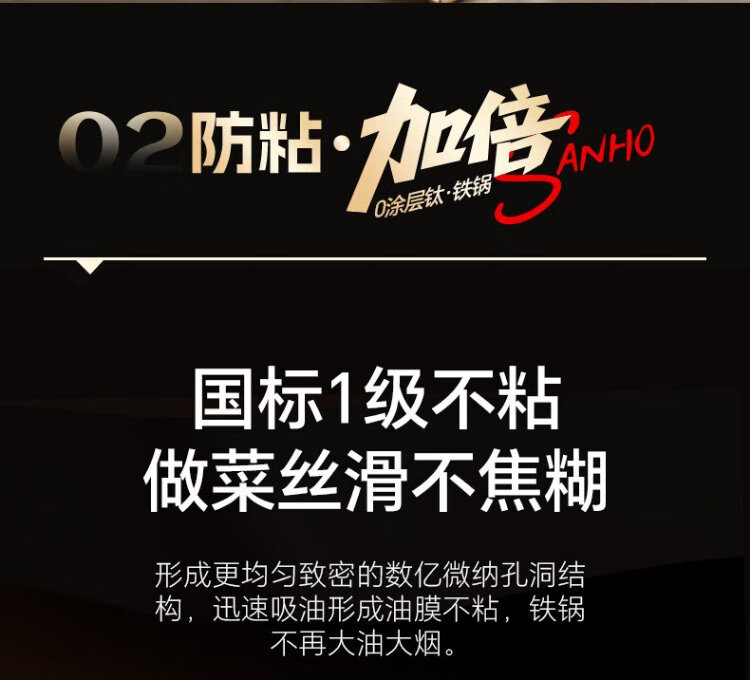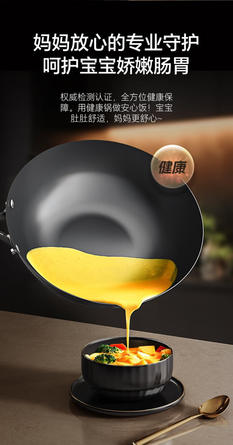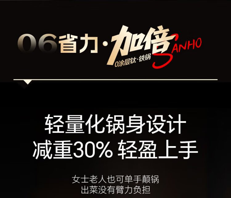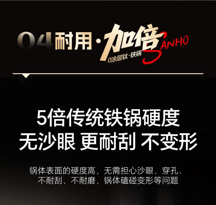 Sanhe titanium iron non-stick wok uncoated wok iron wok lightweight gas stove wok 32cm
