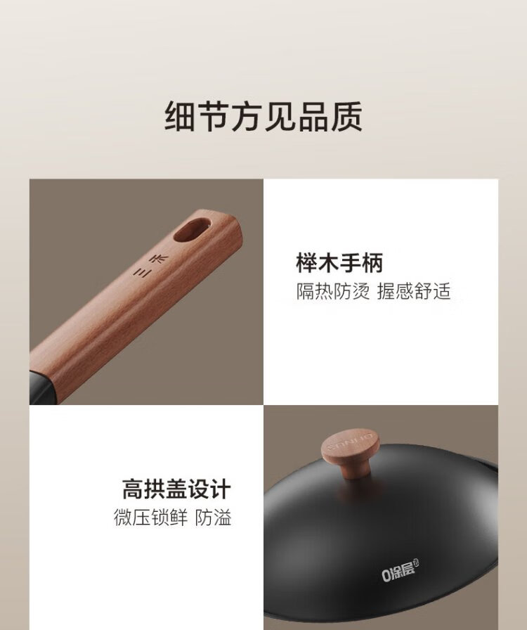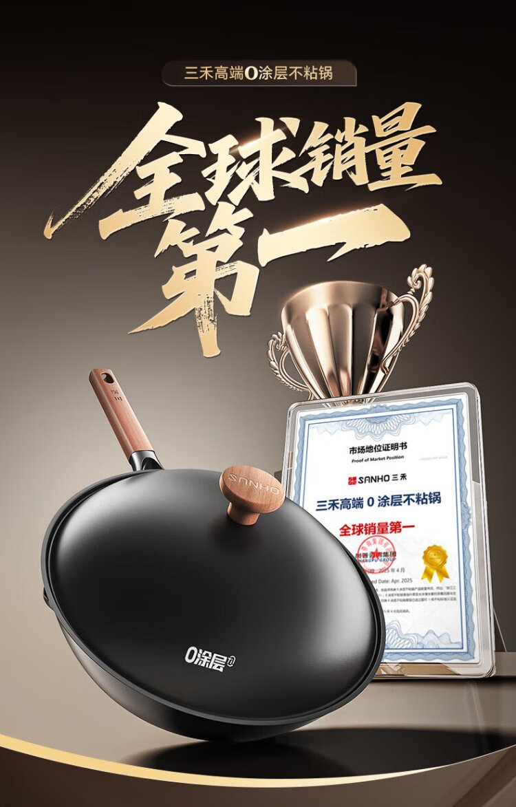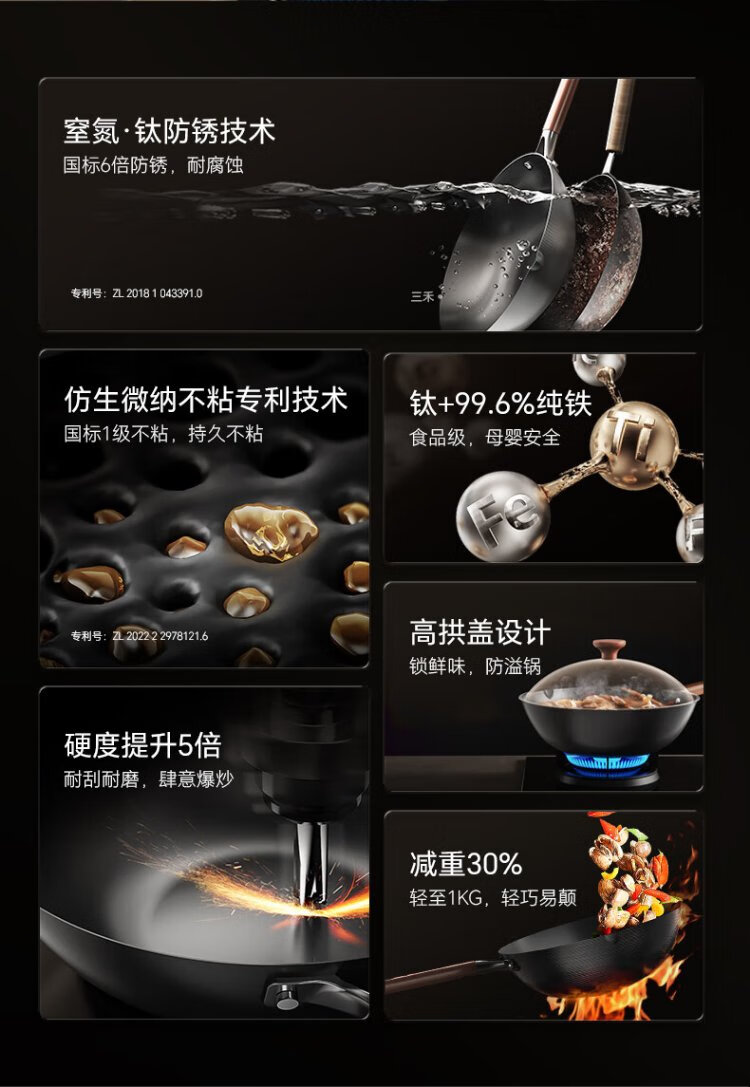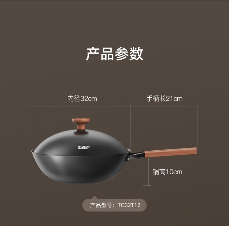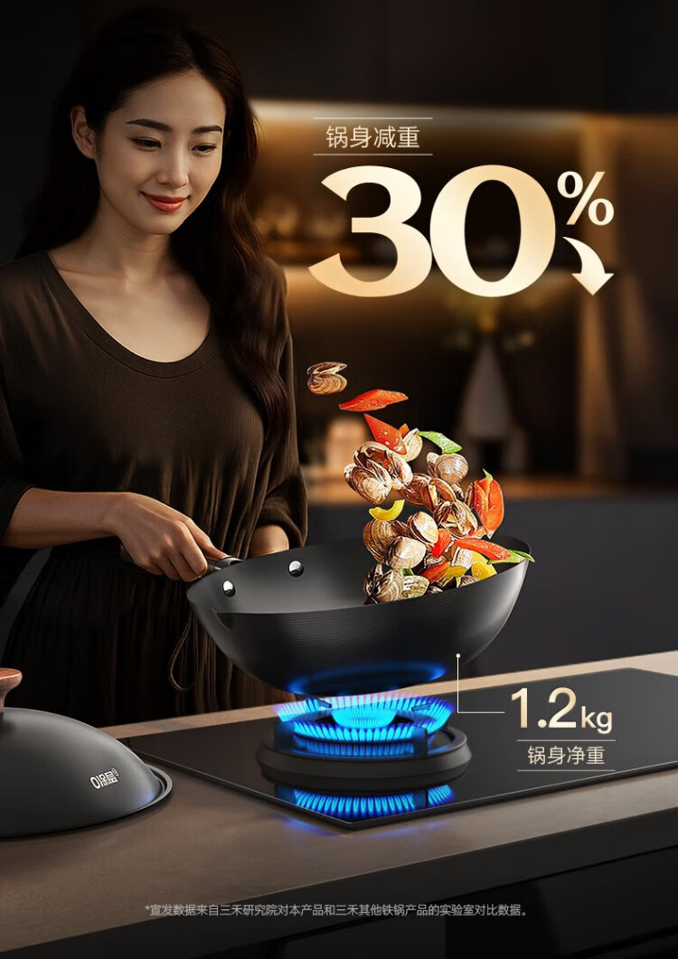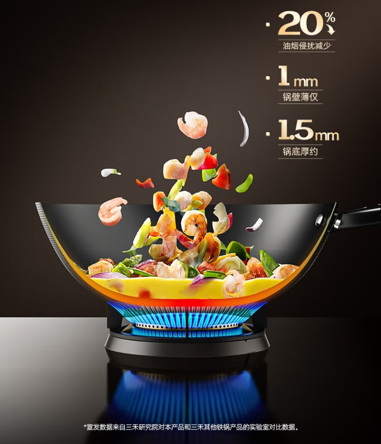 Sanhe titanium iron non-stick wok uncoated wok iron wok lightweight gas stove wok 32cm