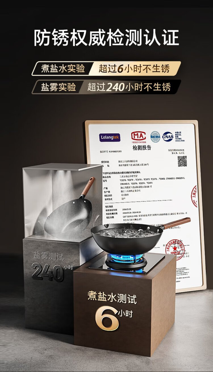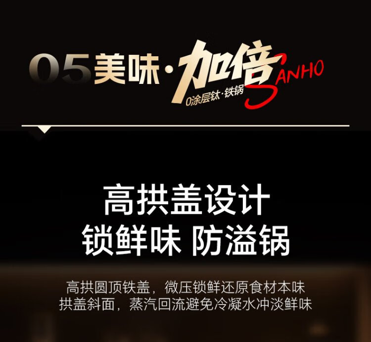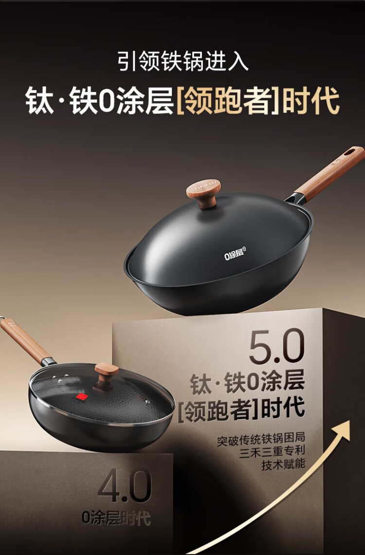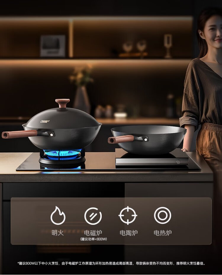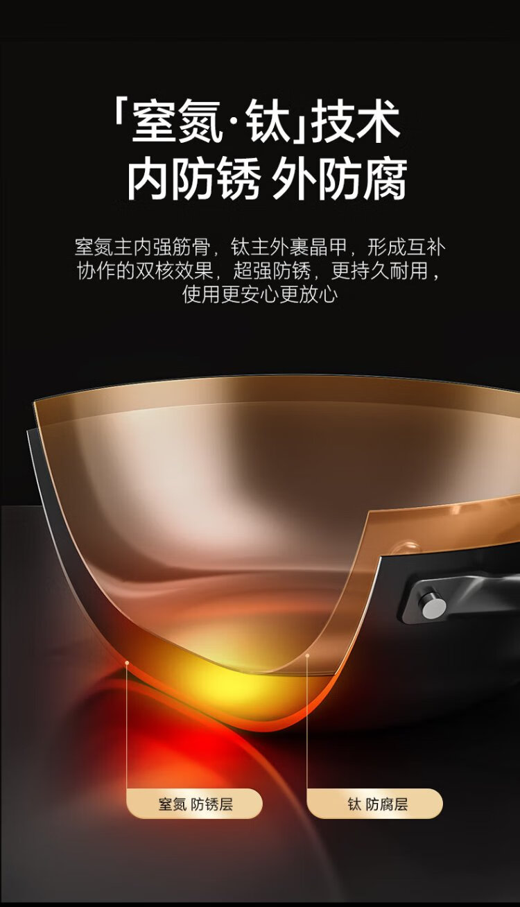 Sanhe titanium iron non-stick wok uncoated wok iron wok lightweight gas stove wok 32cm