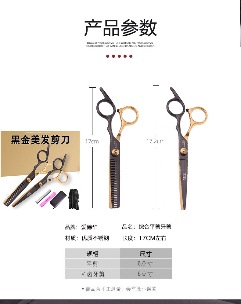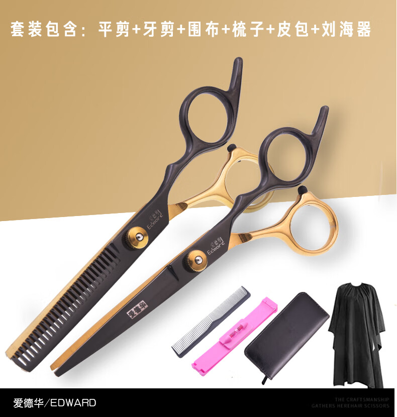 EDWARD black gold hairdressing scissors household hairdressing scissors for adults and children bangs cutter hair scissors haircut tool set HJ88