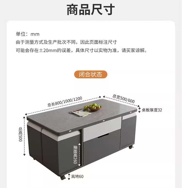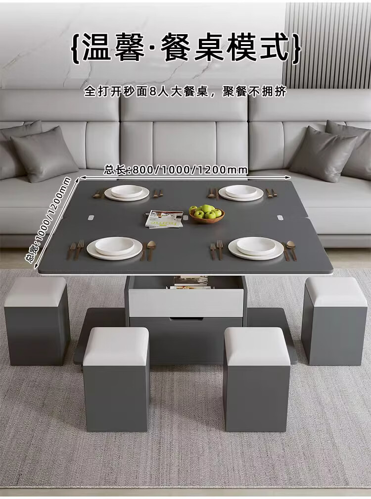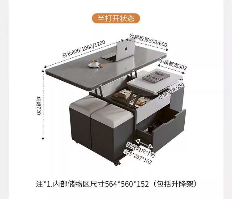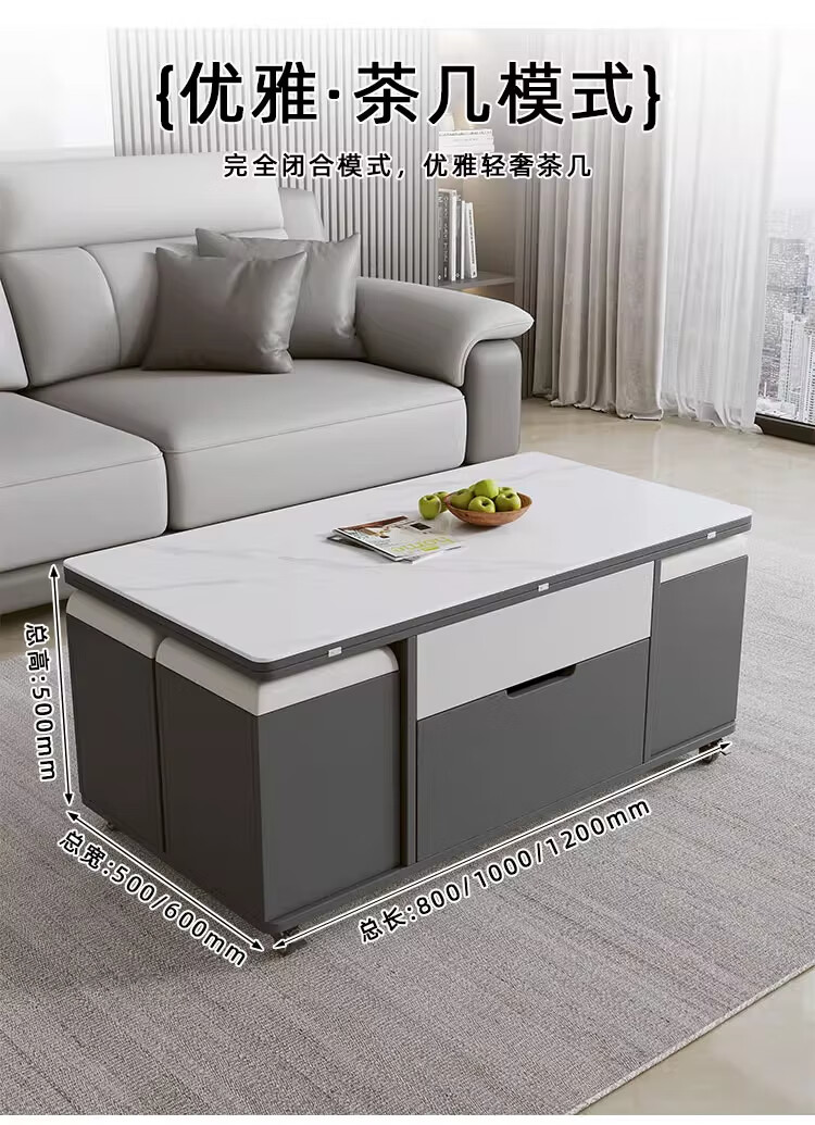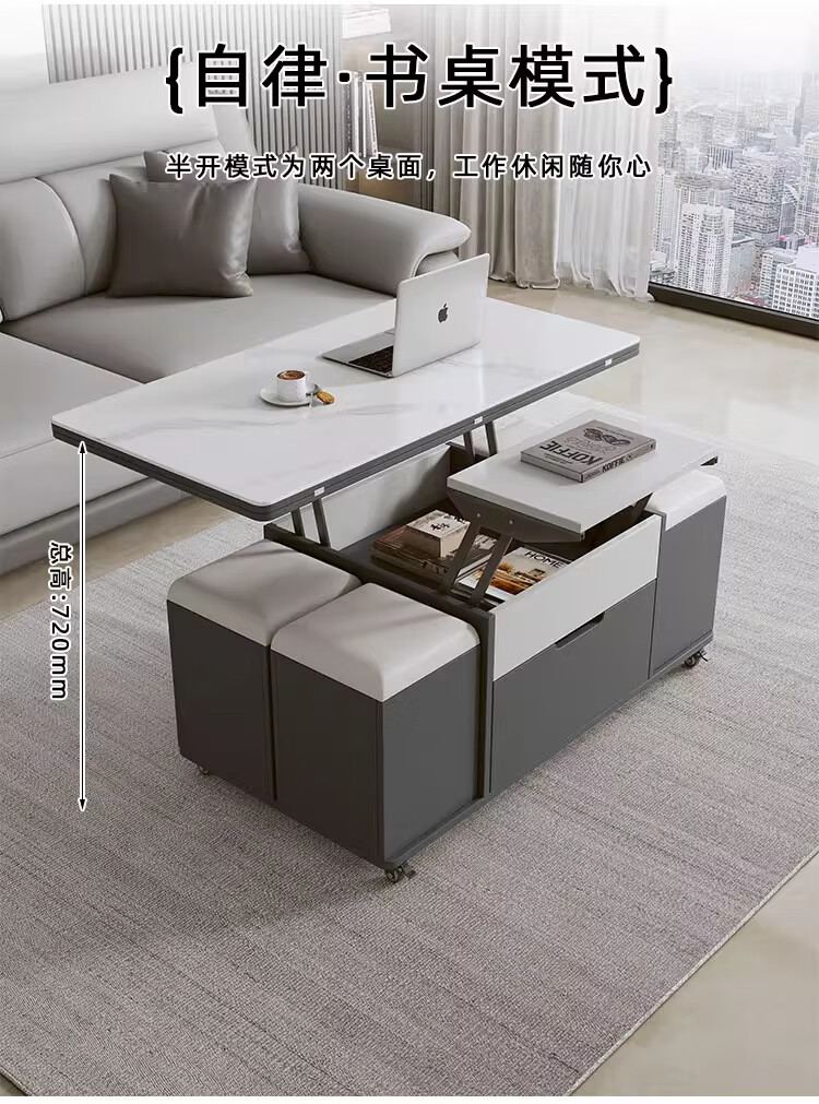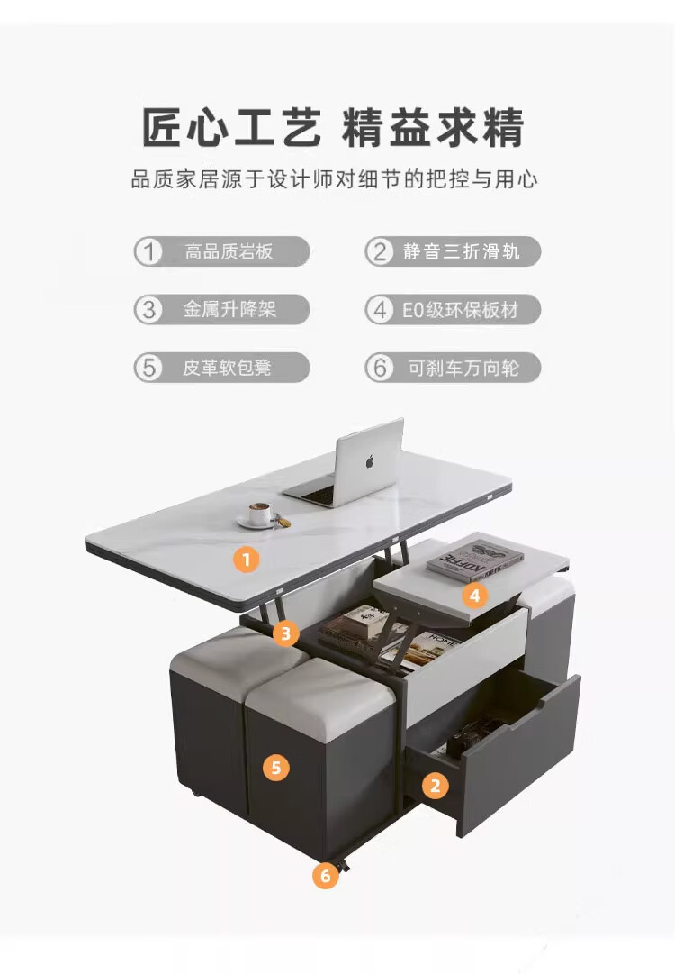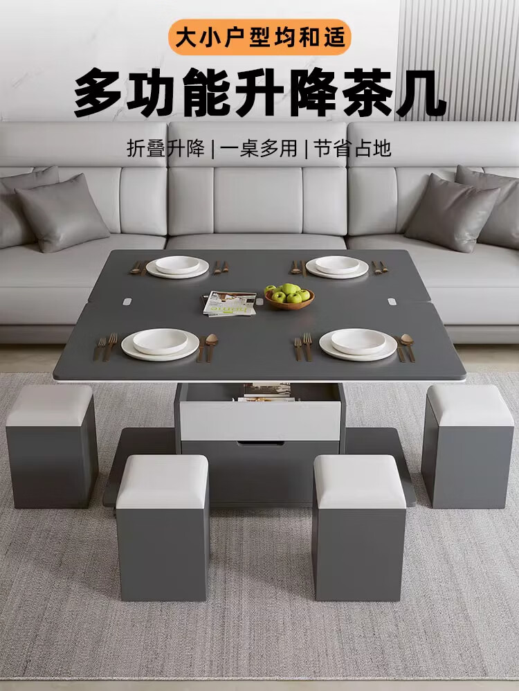 Memory Travel Multifunctional Slate Lift Coffee Table Dining Table Dual-Purpose Folding Simple Tea Table Tea Table Dining Table Home Living Room Coffee Table