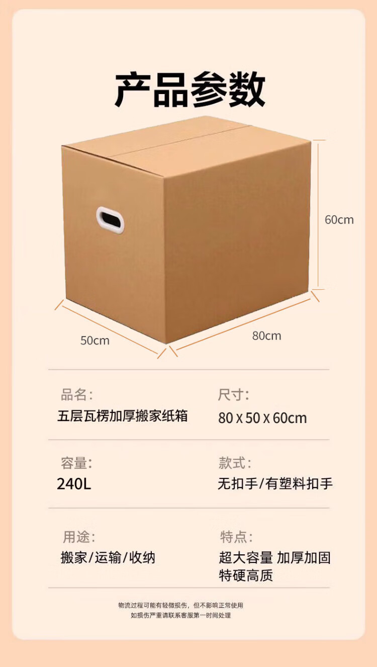 Mingya extra large thickened moving carton packing box moving carton with plastic buckle hand storage box express packing box 80*50*60cm 5 pieces 5393