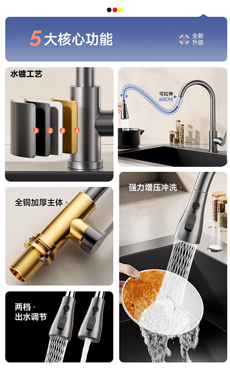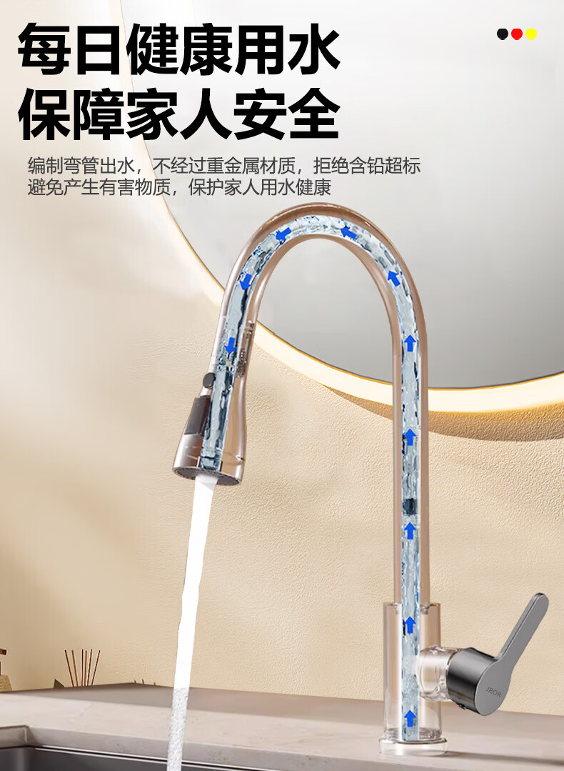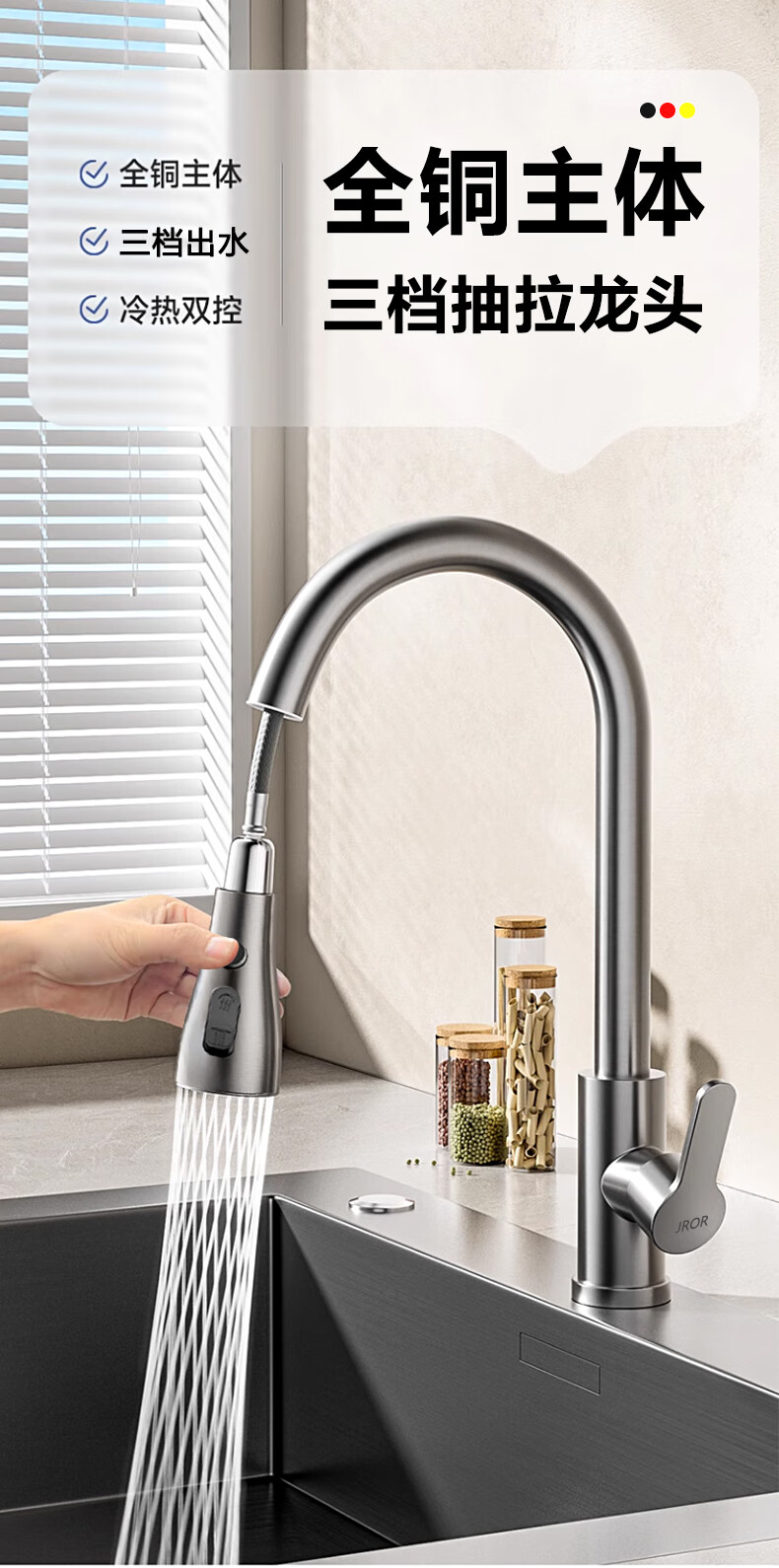 JROR Germany all-copper kitchen sink faucet hot and cold water two-in-one pull-out wash basin sink faucet