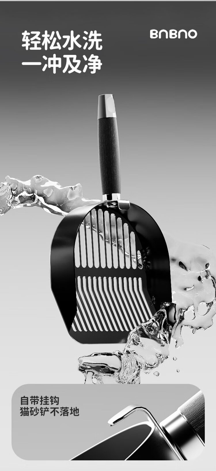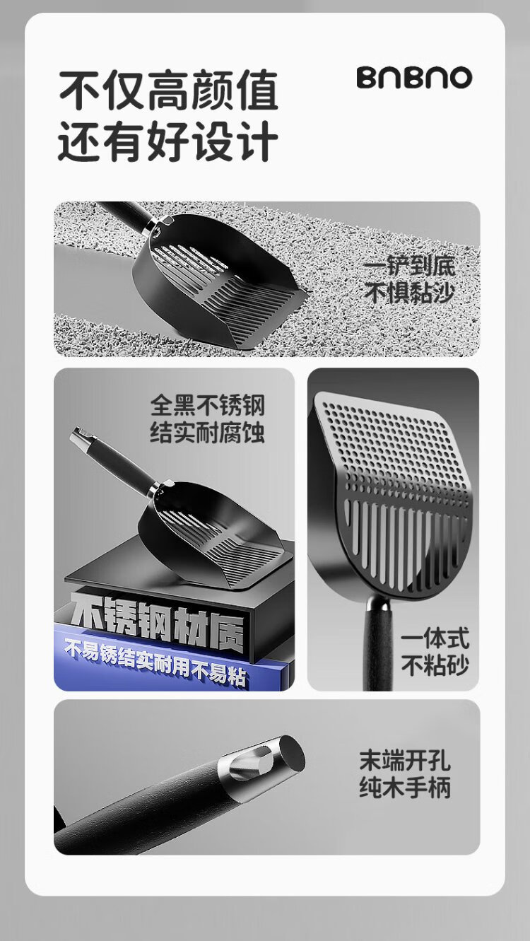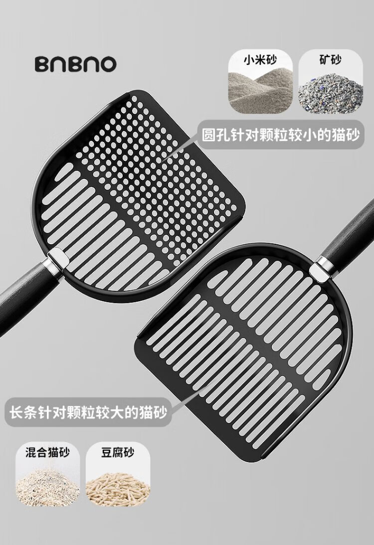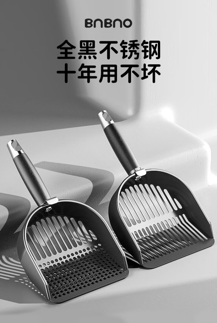 BNBNO all black stainless steel cat litter shovel cat poop shovel small hole fine round hole poop shovel artifact tofu mineral sand special screen shovel
