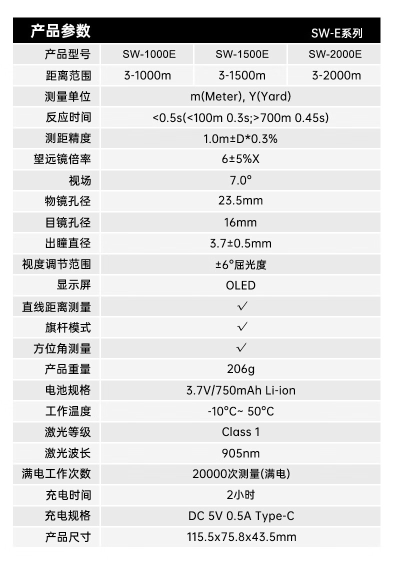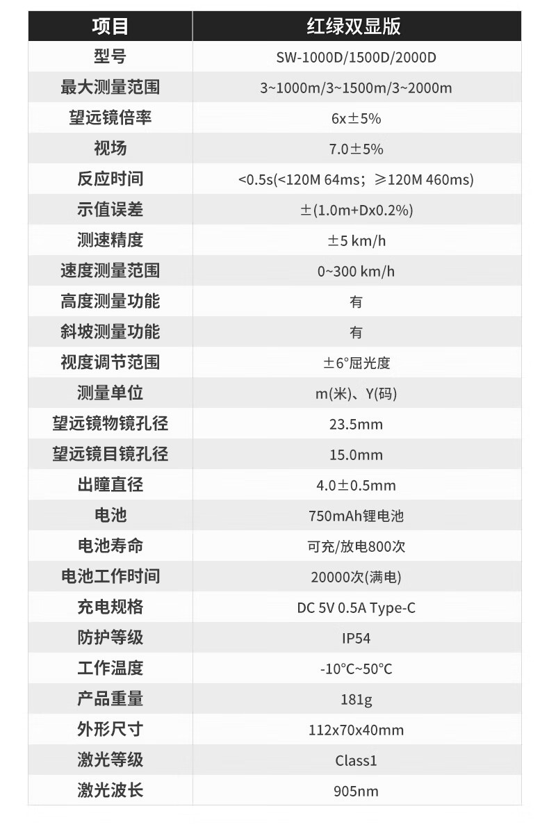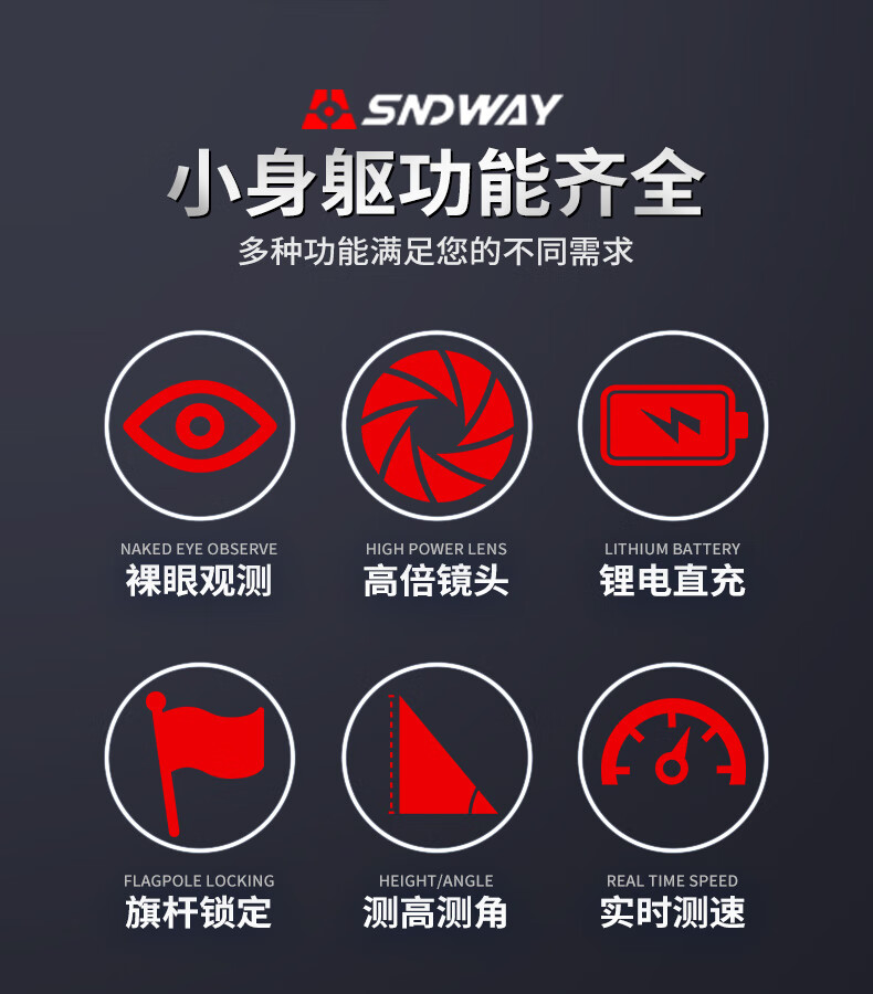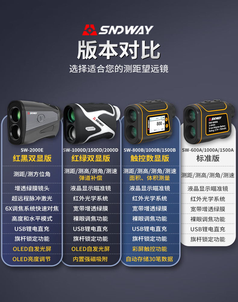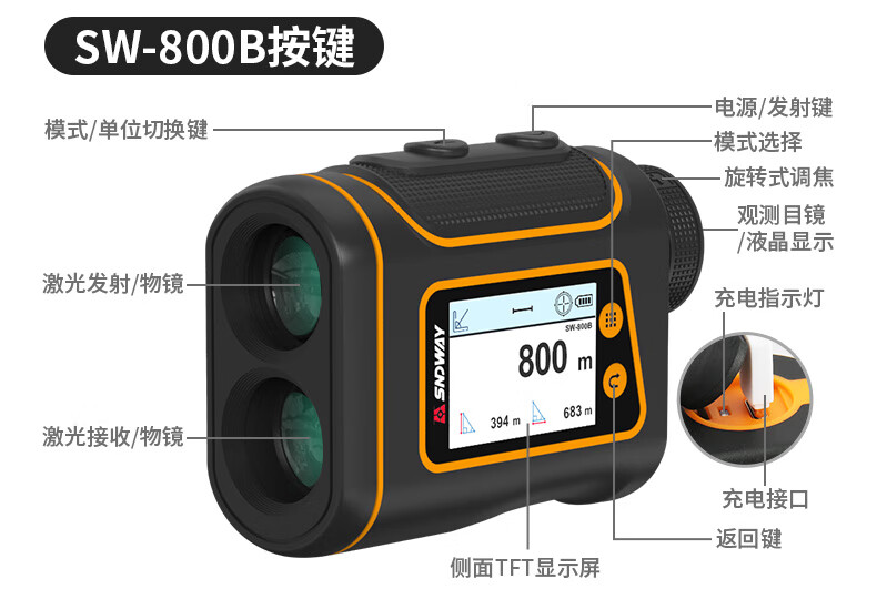SNDWAY Laser Telescope Rangefinder Outdoor Angle Measurement Height Measurement Speed Measurement Golf Distance Measurement Home Electronic Ruler SW-1000A (1000 meters, lithium battery direct charge)