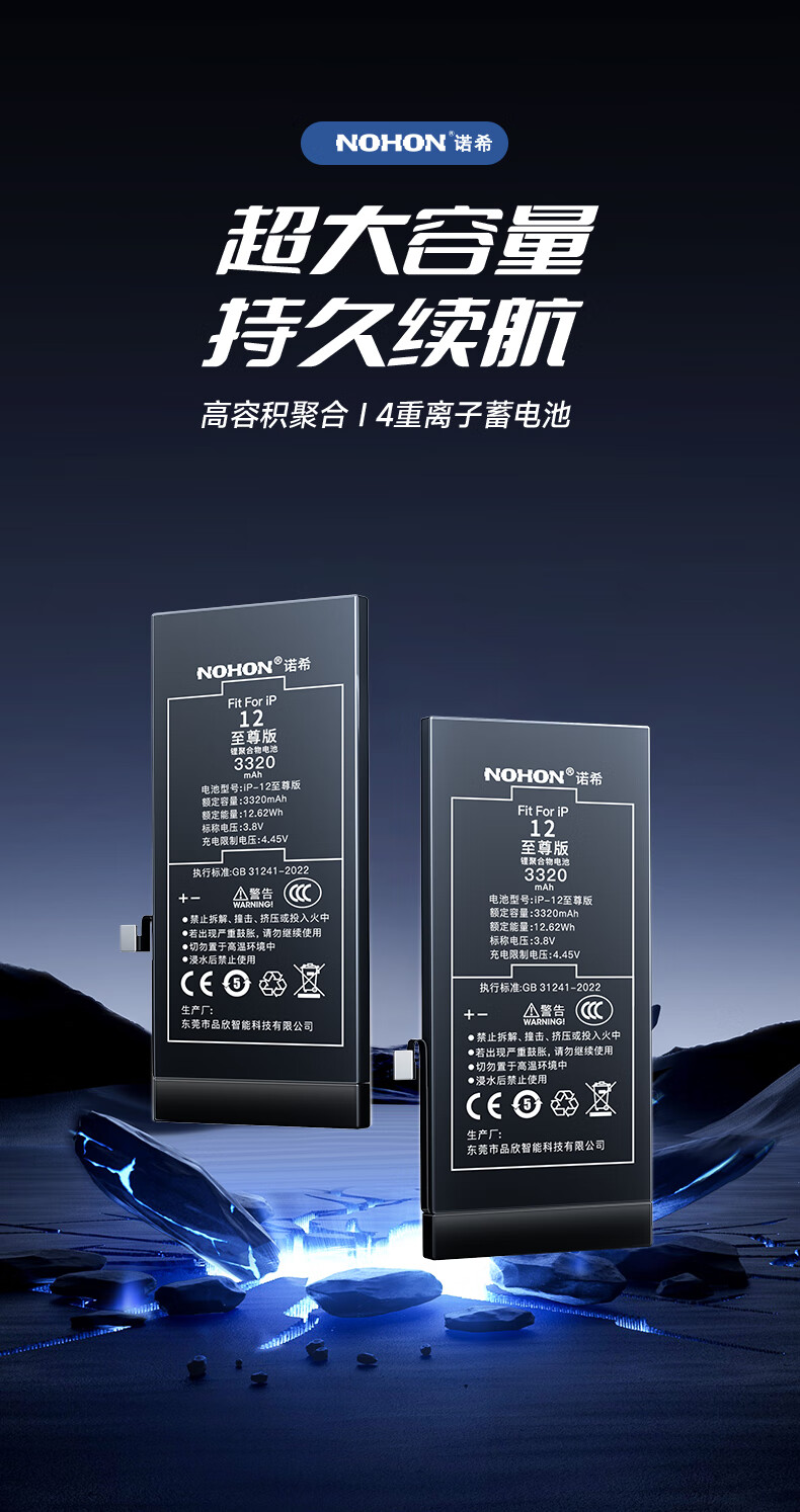 Noxis suitable for Apple 12 battery, 3C certification, independent installation, universal for iphone 12/12Pro, built-in battery of mobile phone, large capacity, extreme version 3320mAh