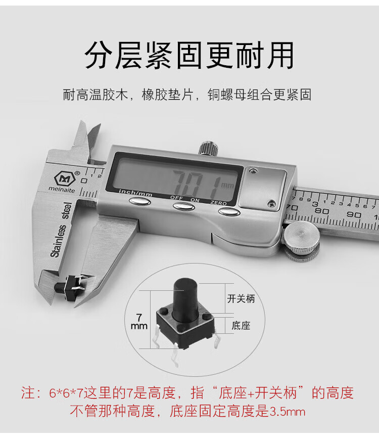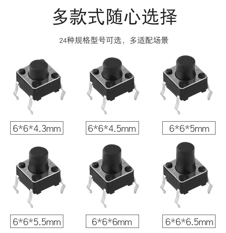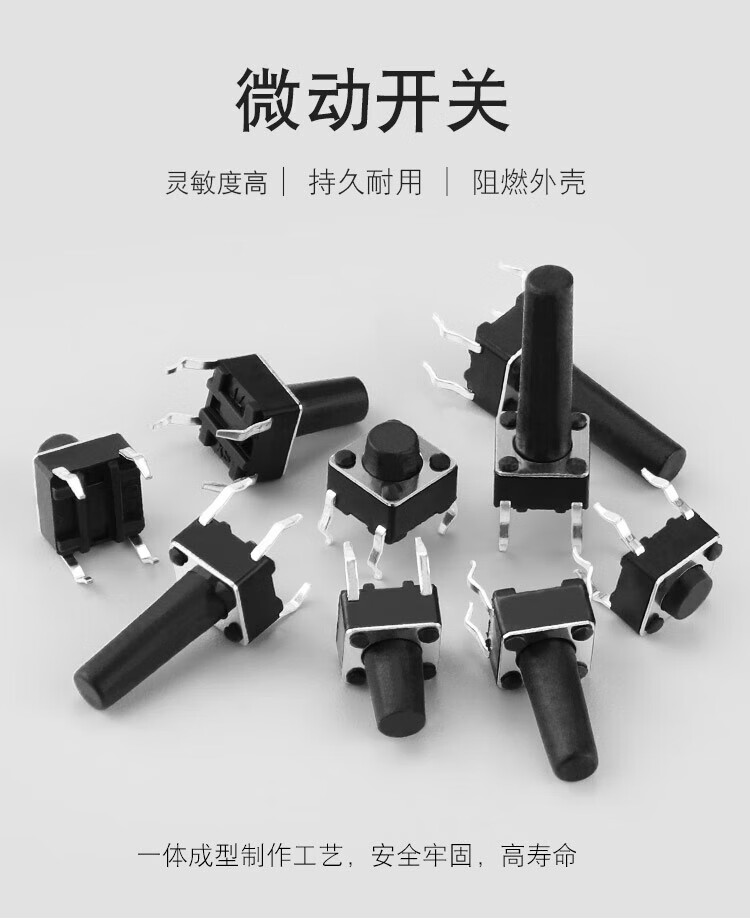 Huijun micro switch key switch copper foot touch switch button 4-leg vertical series 6*6*5mm 50 pieces