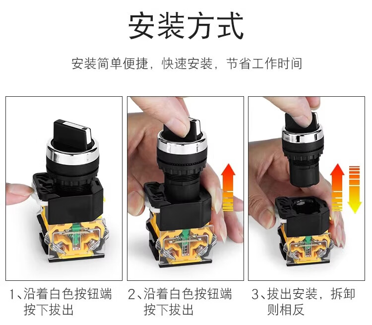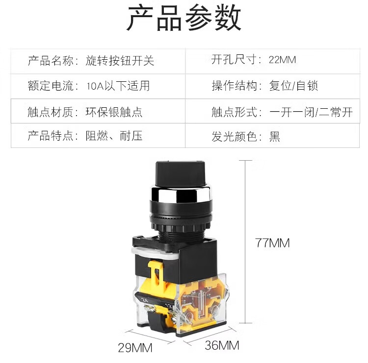 Huijun LA38 knob switch high current 10A transfer switch button opening 22MM knob-self-locking-3 gears two normally open quick wiring
