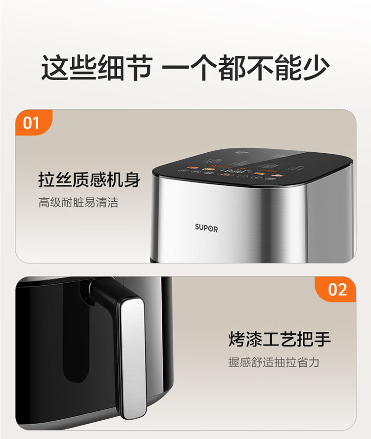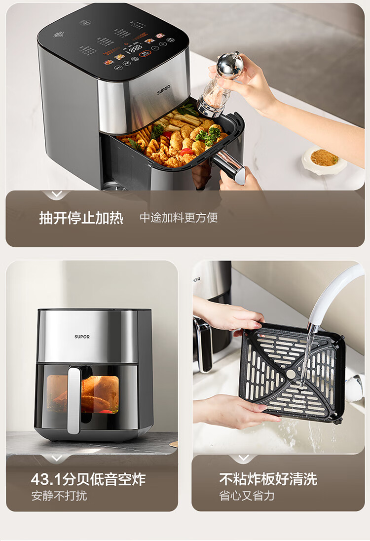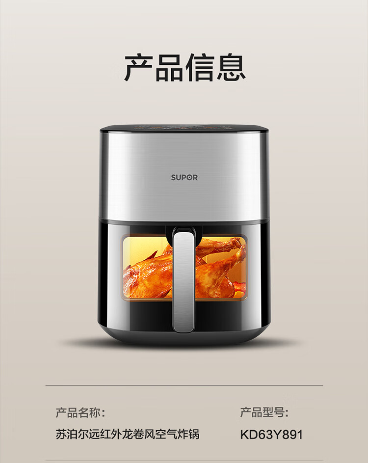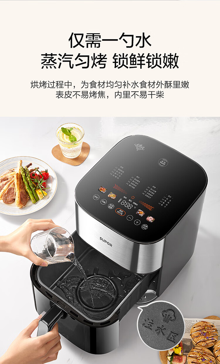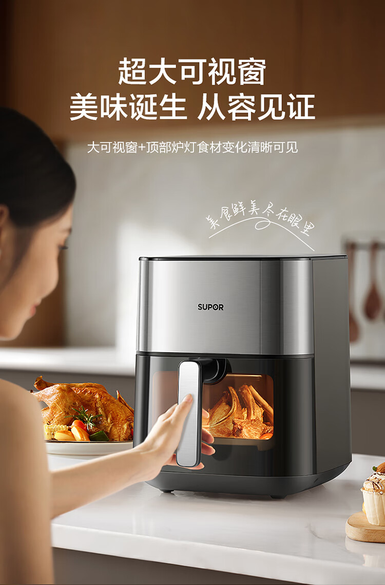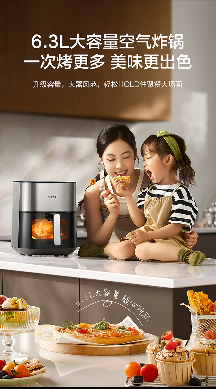 SUPOR air fryer flip-free 6.3L household multi-functional fully automatic frying and baking machine far infrared visible electric fryer steam tender KD63Y891