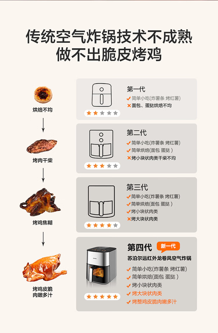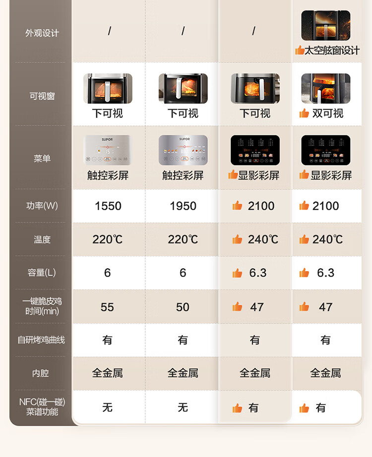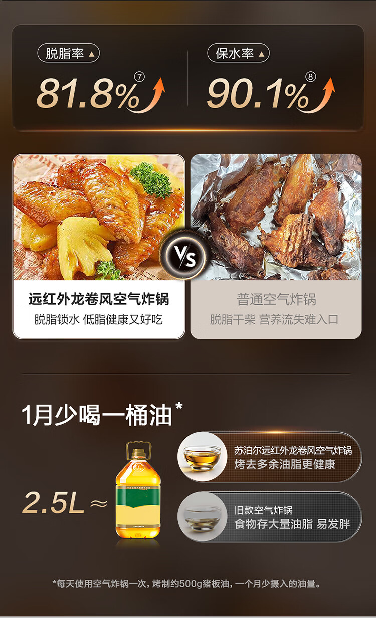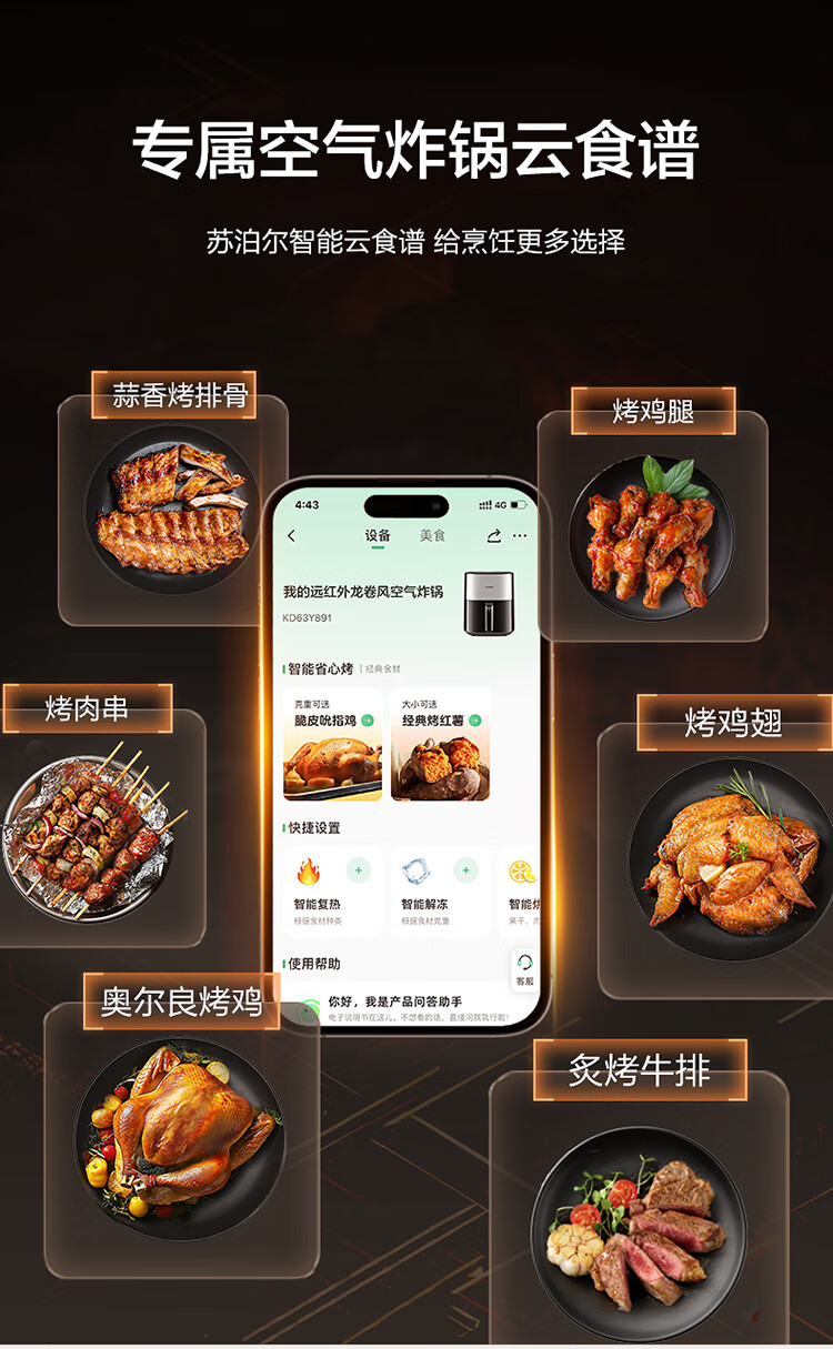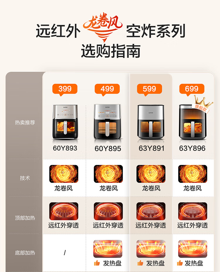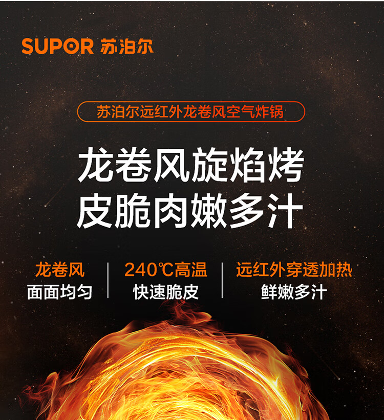 SUPOR air fryer flip-free 6.3L household multi-functional fully automatic frying and baking machine far infrared visible electric fryer steam tender KD63Y891