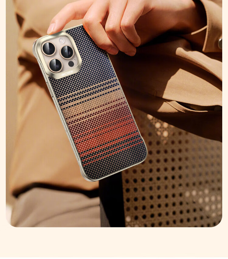 Aimeichen is suitable for iphone16promax mobile phone case magnetic magsafe aramid fiber Apple 16promax Kevlar mobile phone case for boys and girls ultra-thin frameless-red