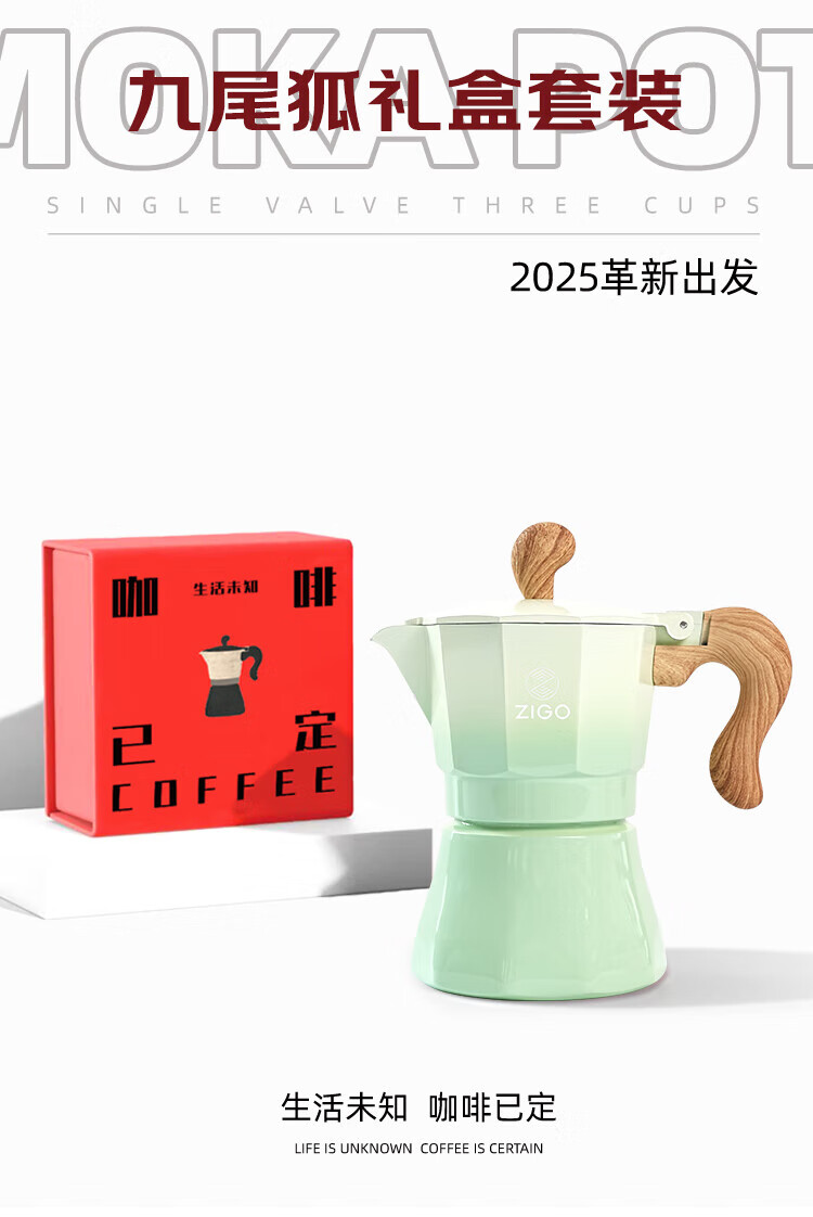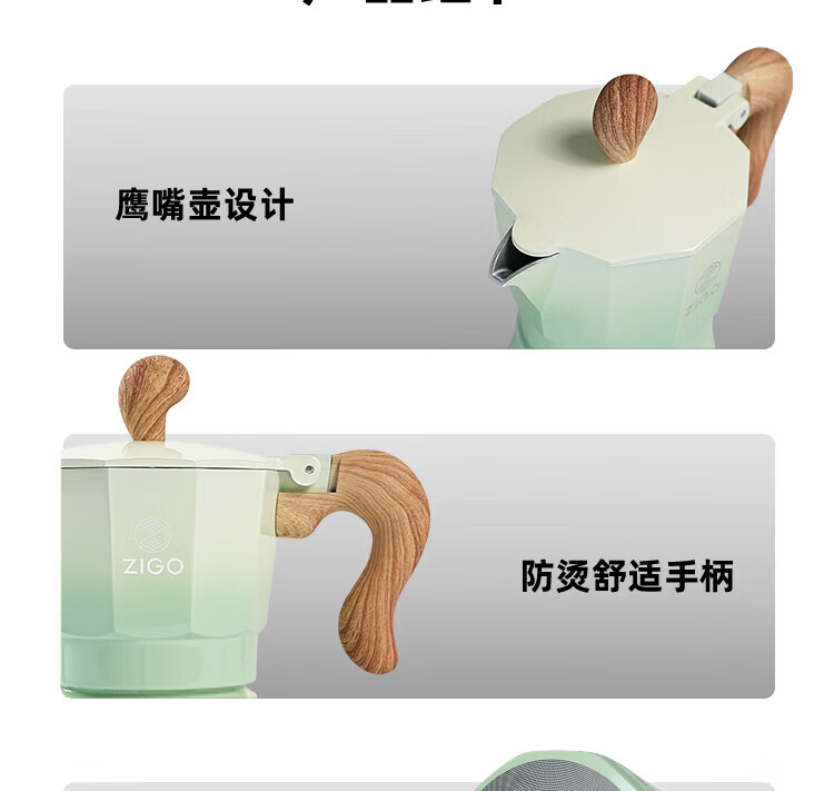 Zigo Moka Pot Italian Espresso Pot Hand Brewing Pot Coffee Pot Gift Box Gift National Supplement Green