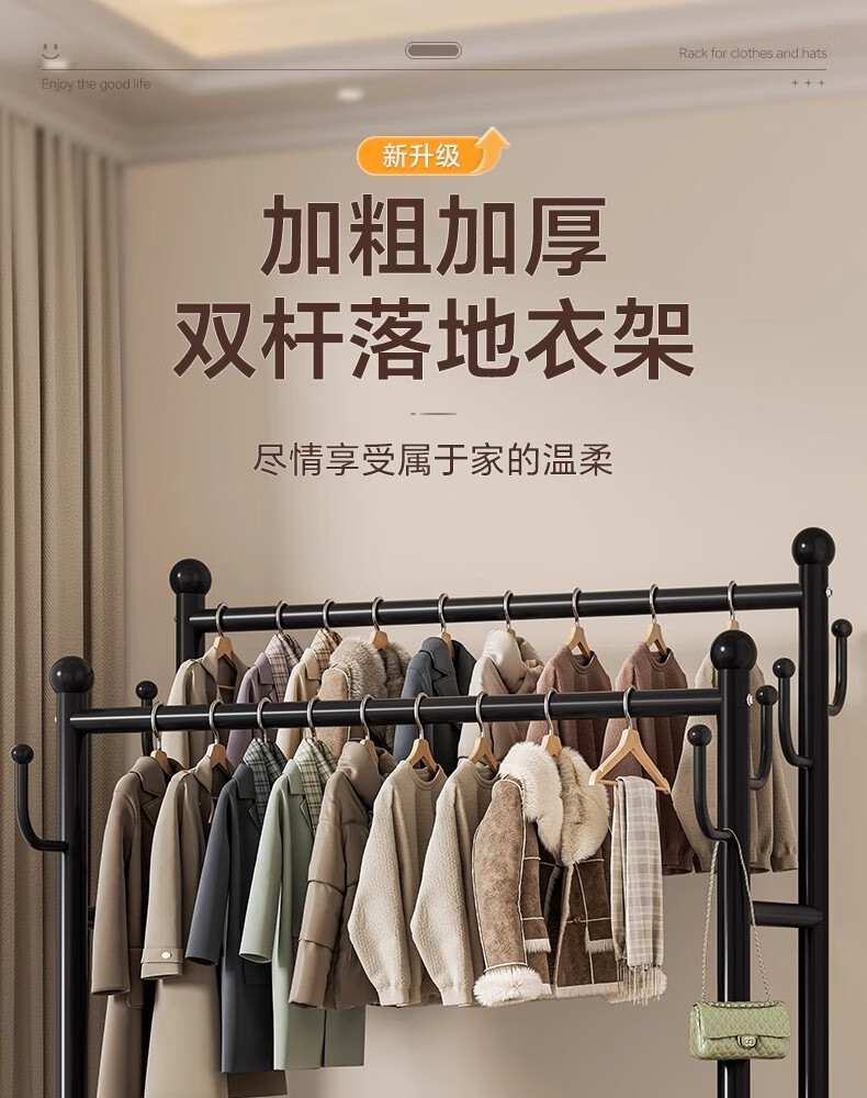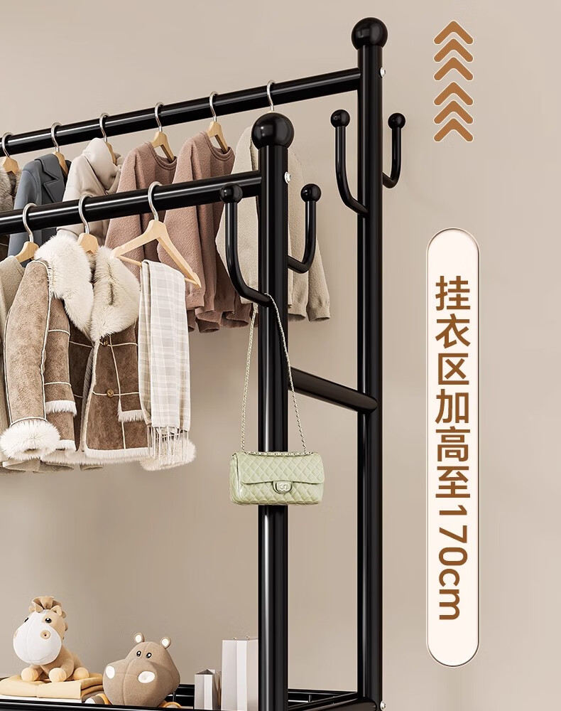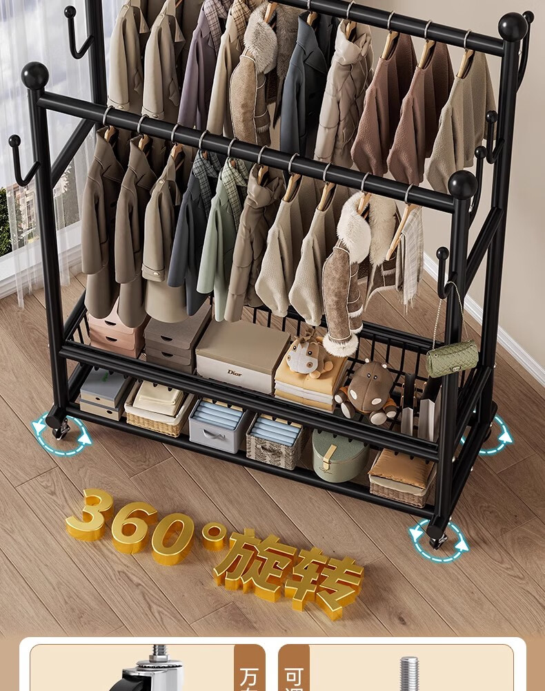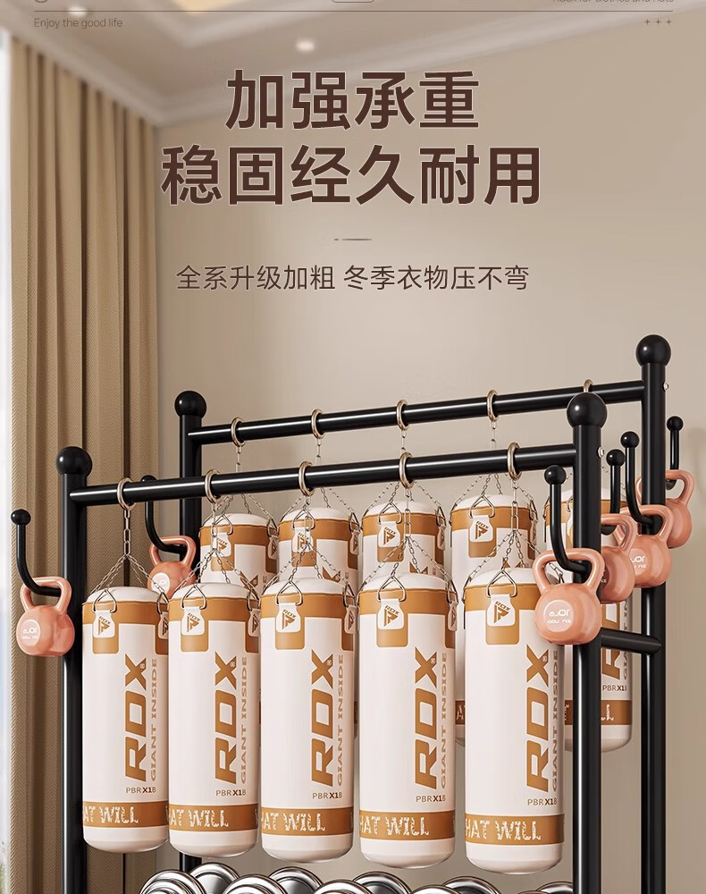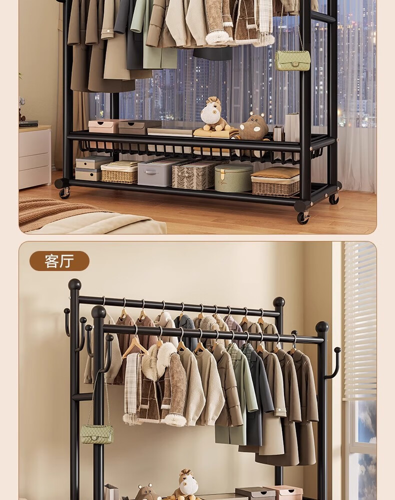 Shunyou bold 32 tube double rod coat rack bedroom floor-standing indoor clothes drying rack removable 150 black SY-445