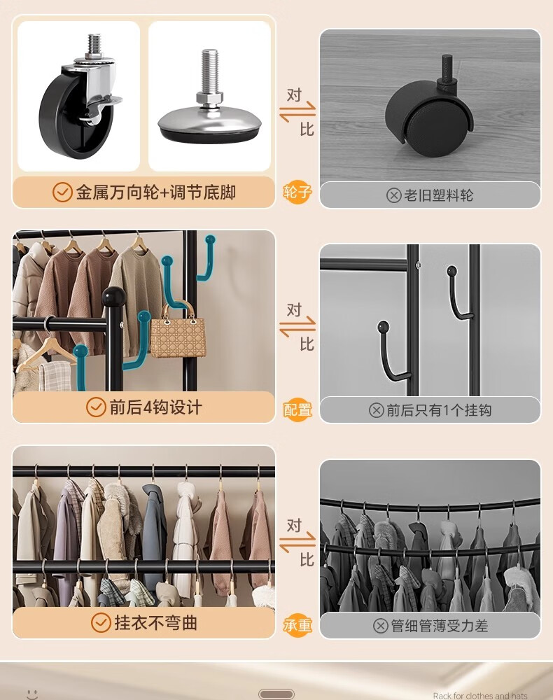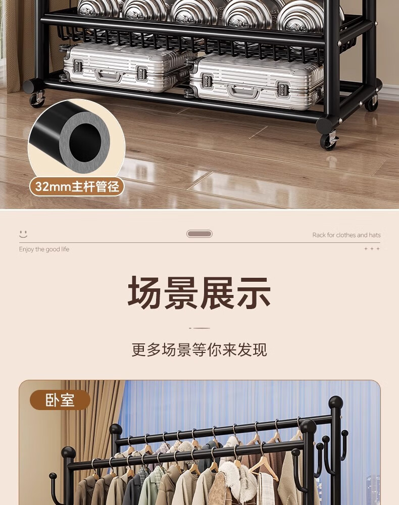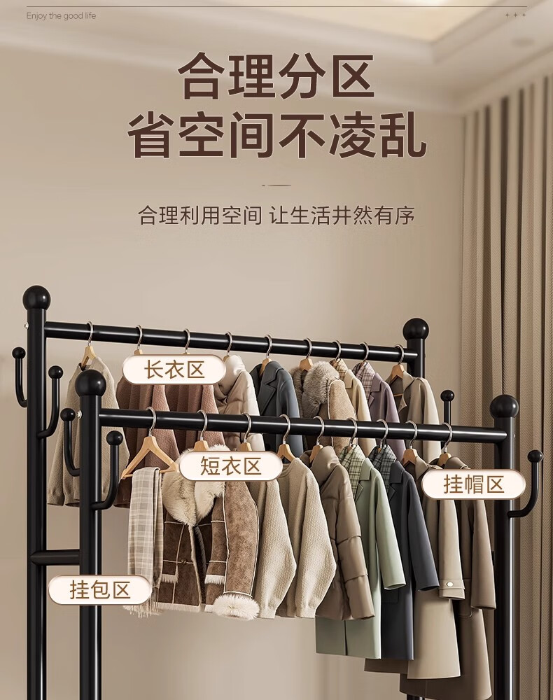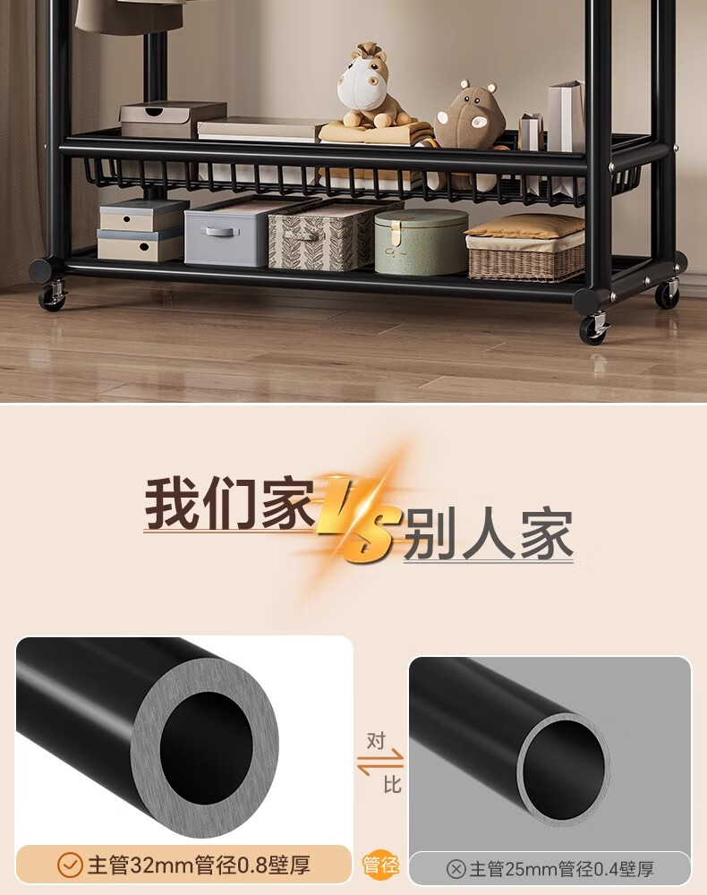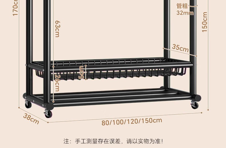 Shunyou bold 32 tube double rod coat rack bedroom floor-standing indoor clothes drying rack removable 150 black SY-445