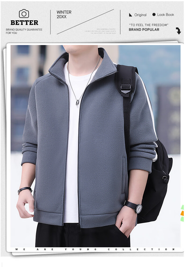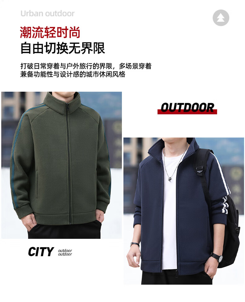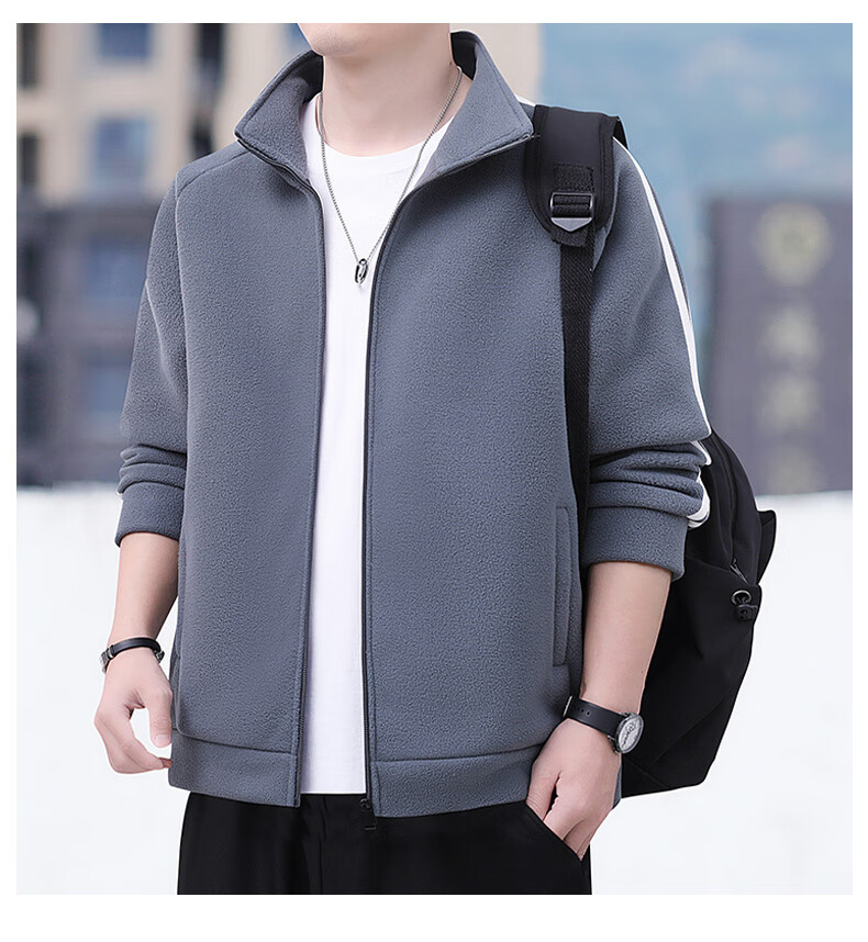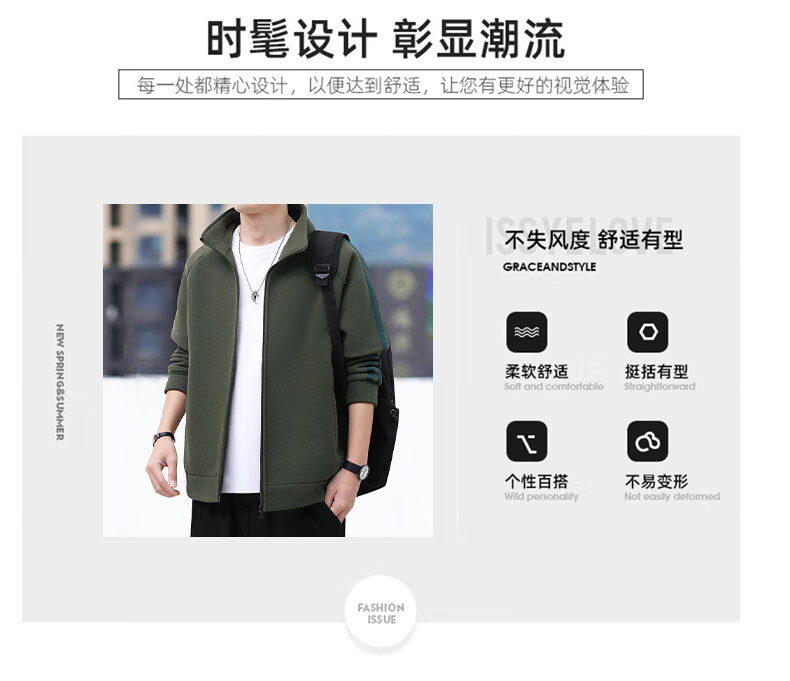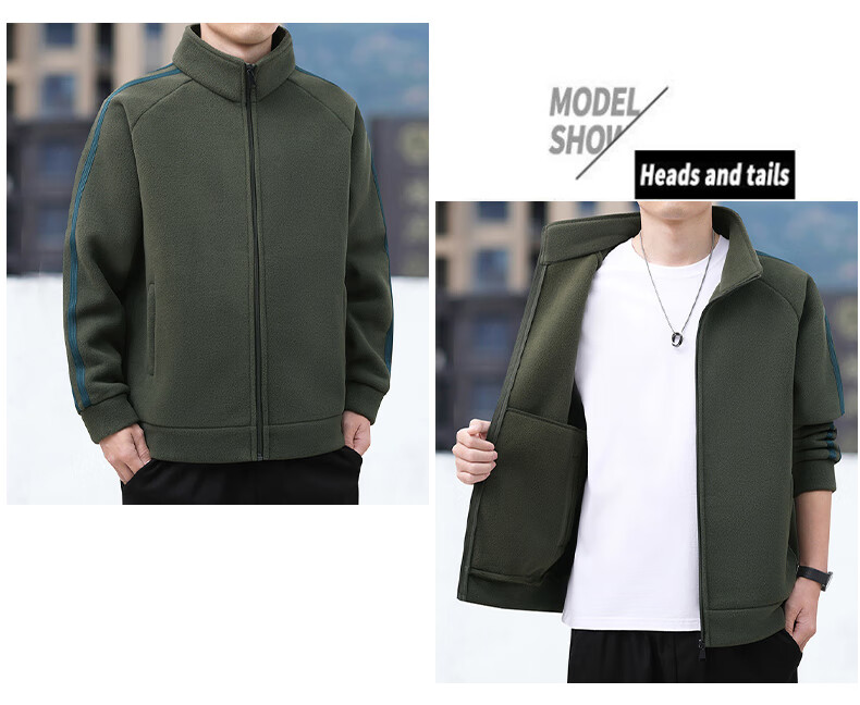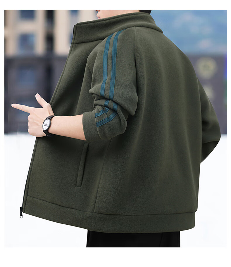 Romon Jacket Men's Autumn and Winter Casual Versatile Warm Windproof Polar Fleece Jacket Men's Dad Clothing 8868 Green 2XL