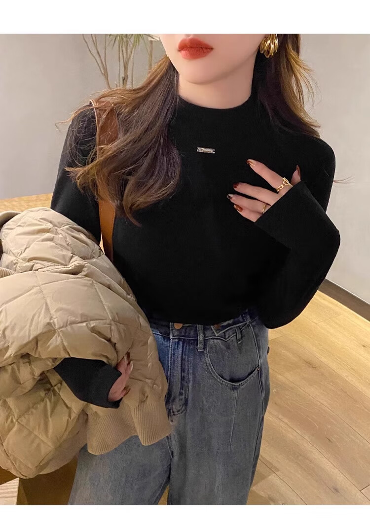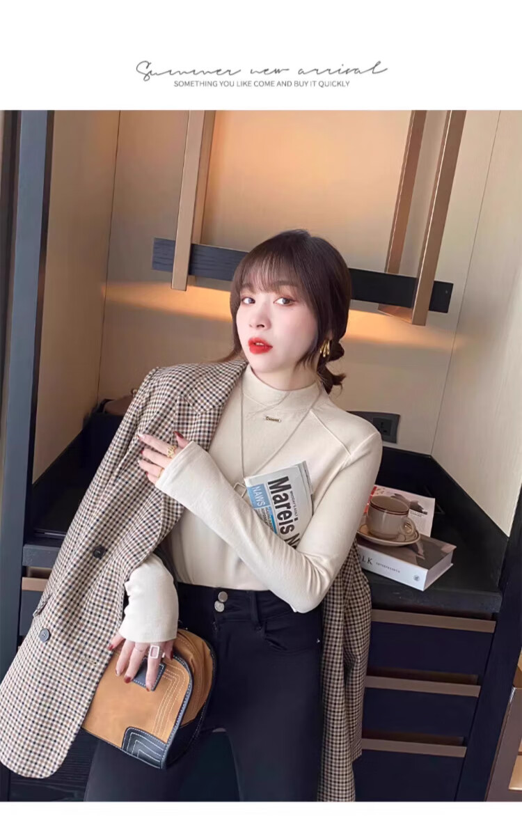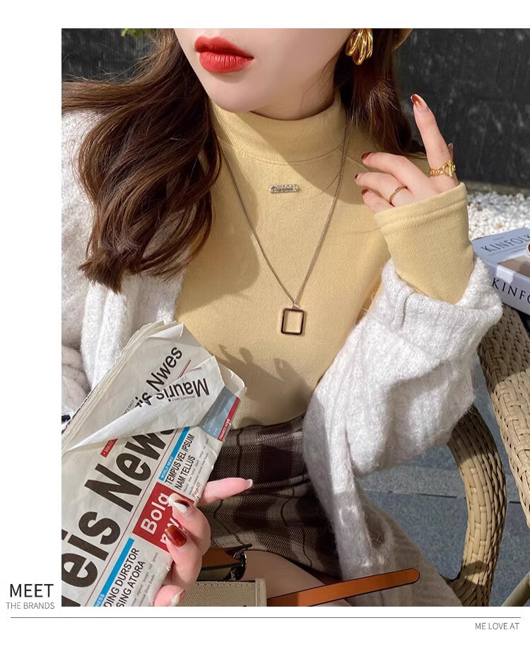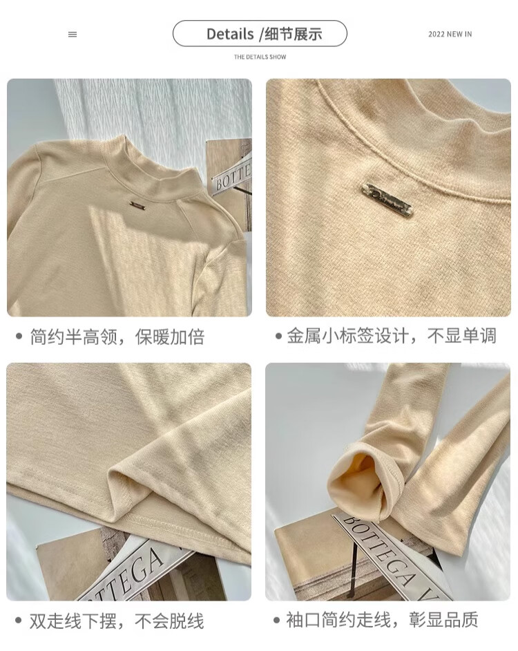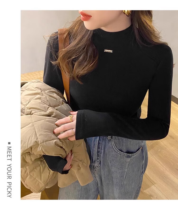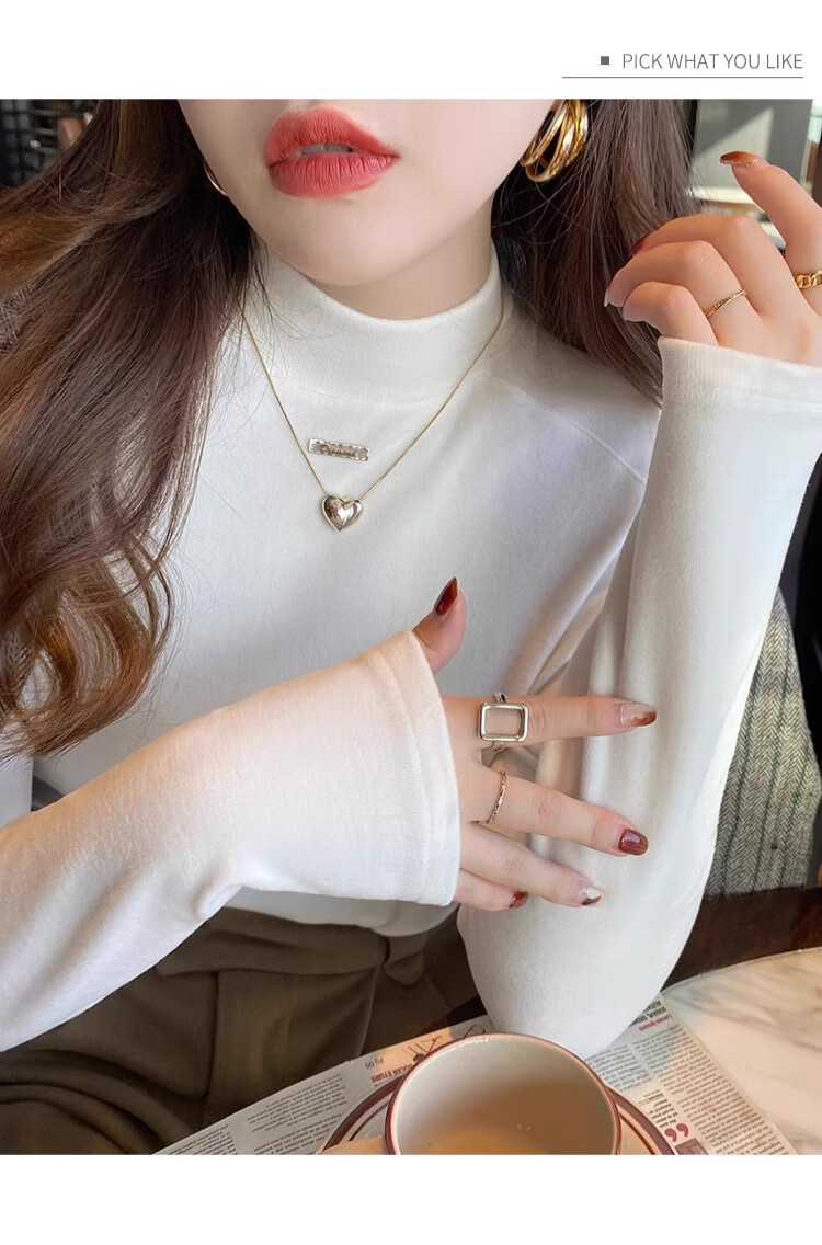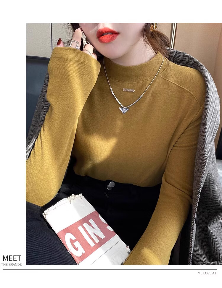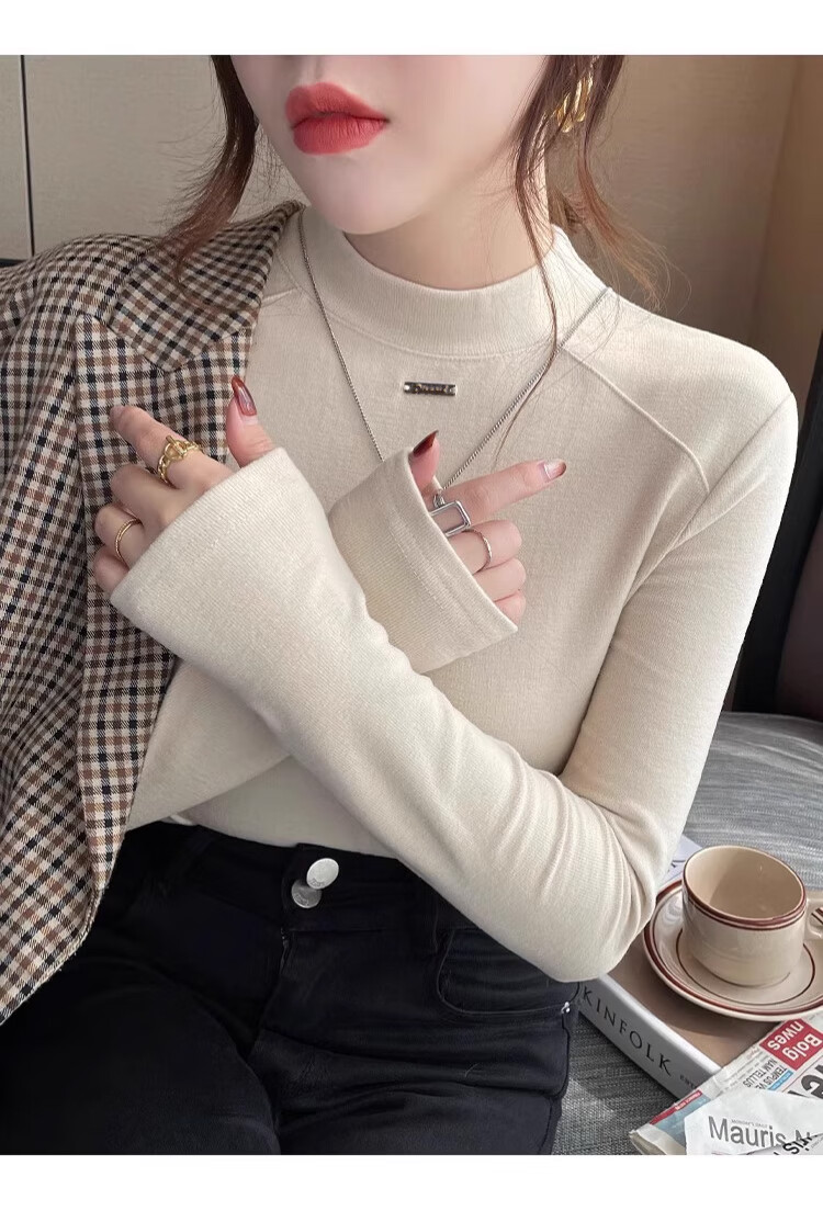 Tingmei half turtleneck brushed bottoming shirt for women, herringbone raglan autumn and winter warm inner layer, slim and stylish, can be worn outside T-shirt top
