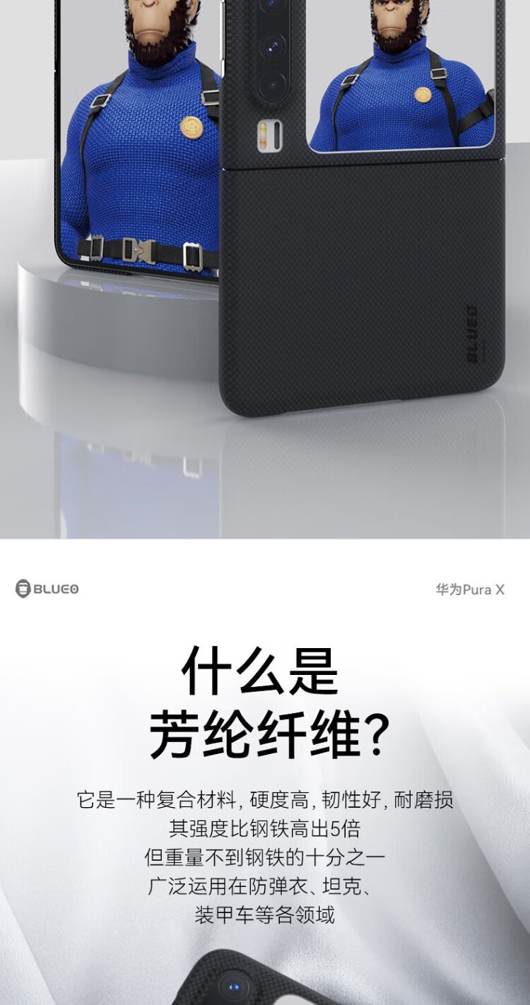 BLUEO is suitable for Huawei PuraX mobile phone case collector's edition protective case Kevlar aramid fiber anti-fall and anti-fingerprint protective case black gray