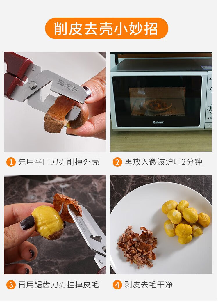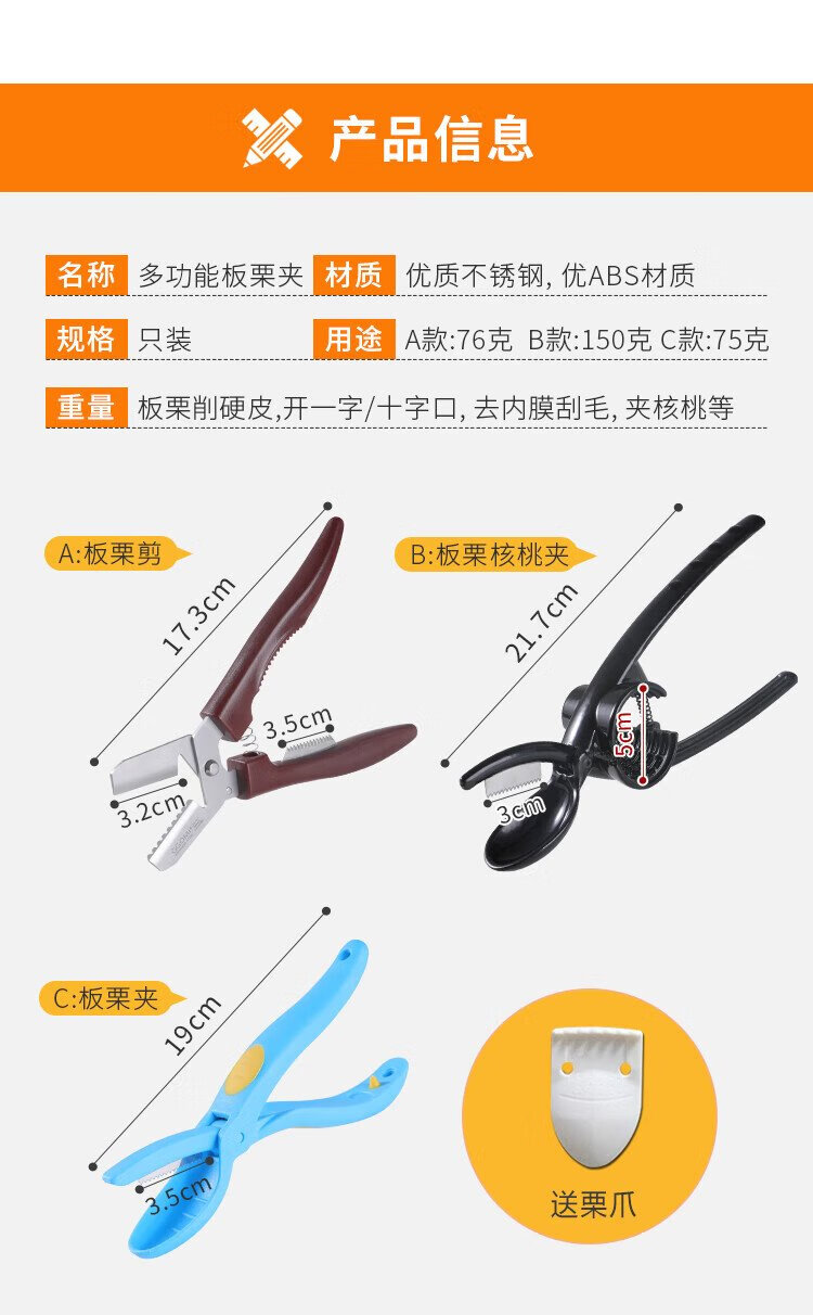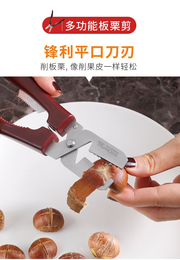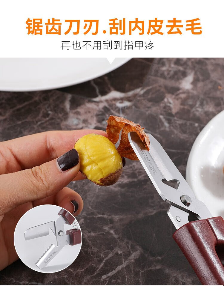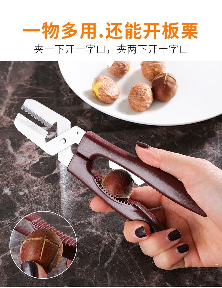 Necooks multifunctional chestnut opener, chestnut peeling artifact, dual-purpose walnut clip, peeler, chestnut knife tool, 1 brown chestnut scissors