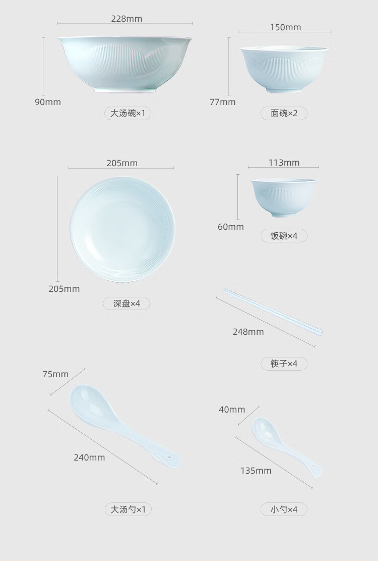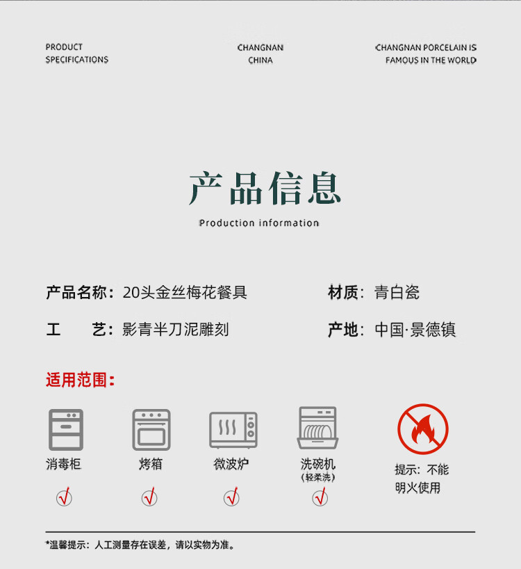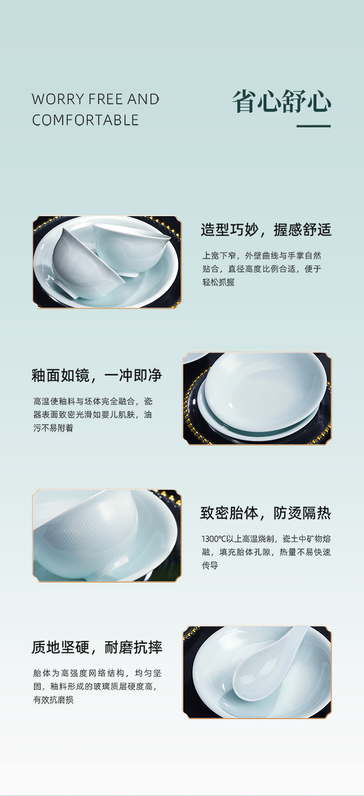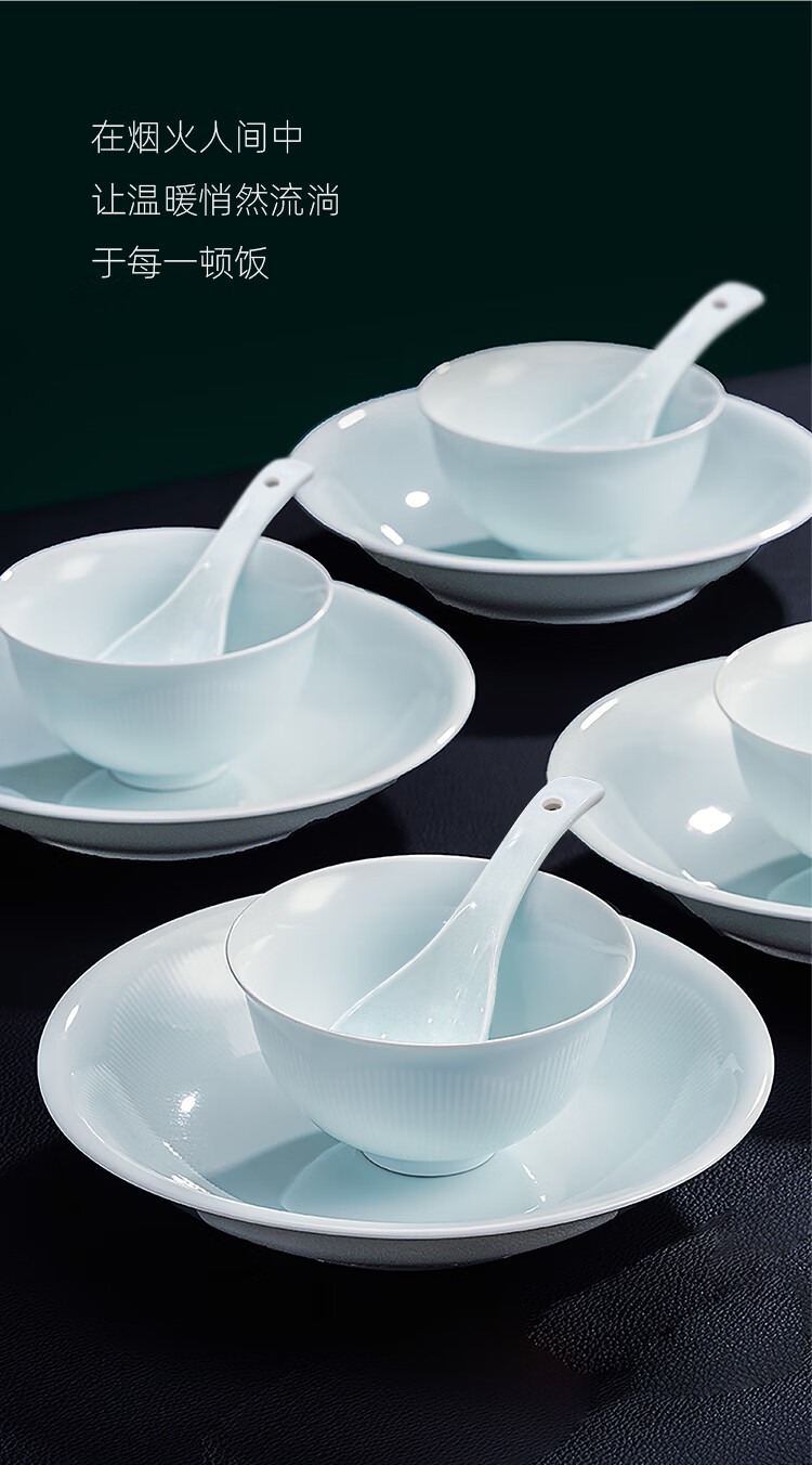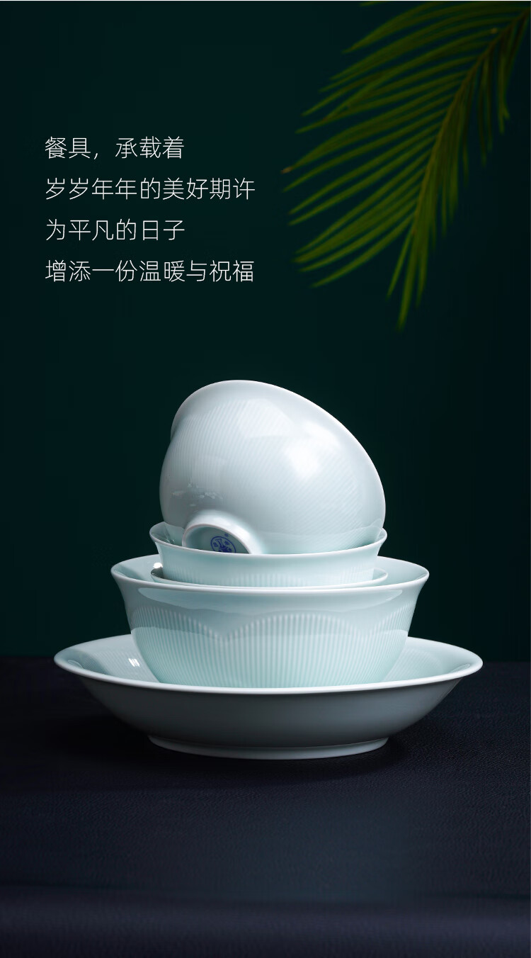 Changnan Jingdezhen ceramic tableware high temperature celadon complete set of dishes and plates high-end housewarming holiday set gift 20 pieces