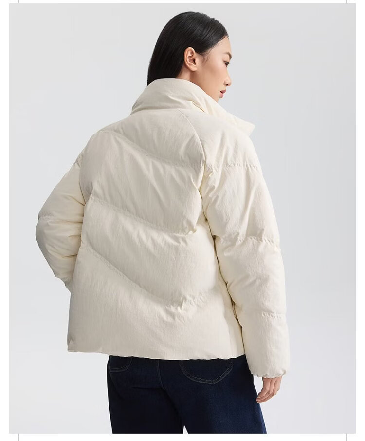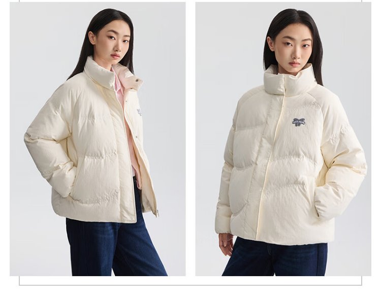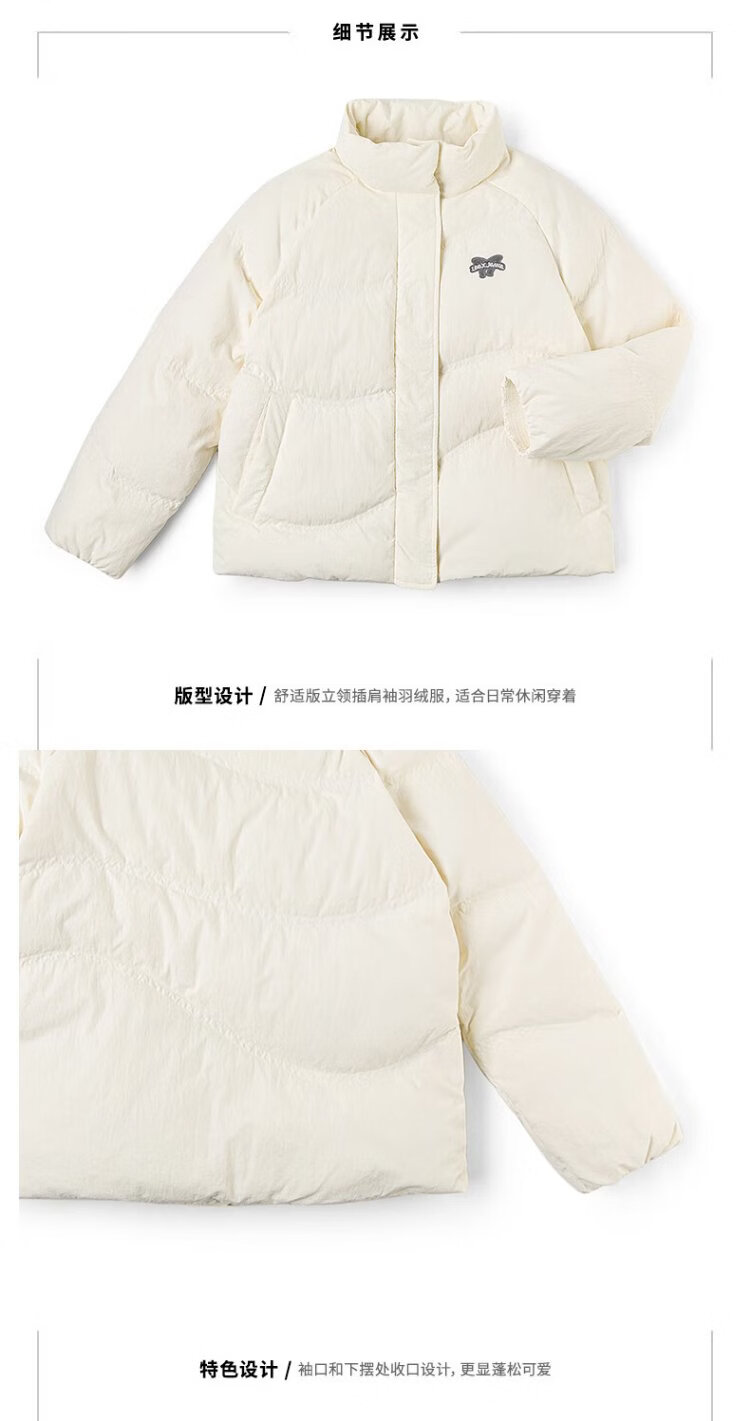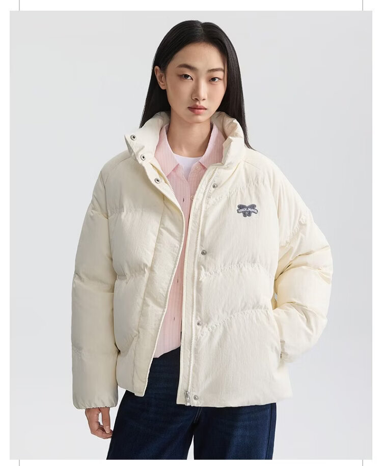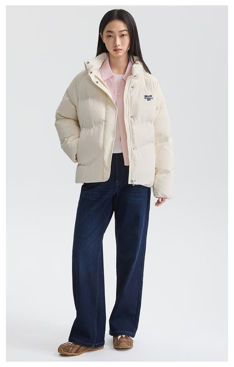 Lee25 new autumn and winter comfortable version stand-up collar raglan sleeves small logo logo women's down jacket off-white M