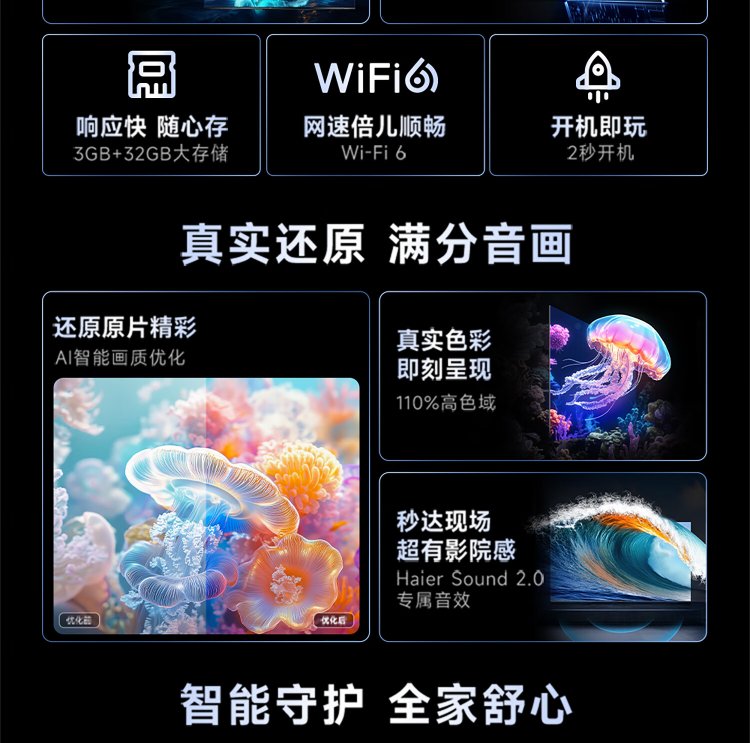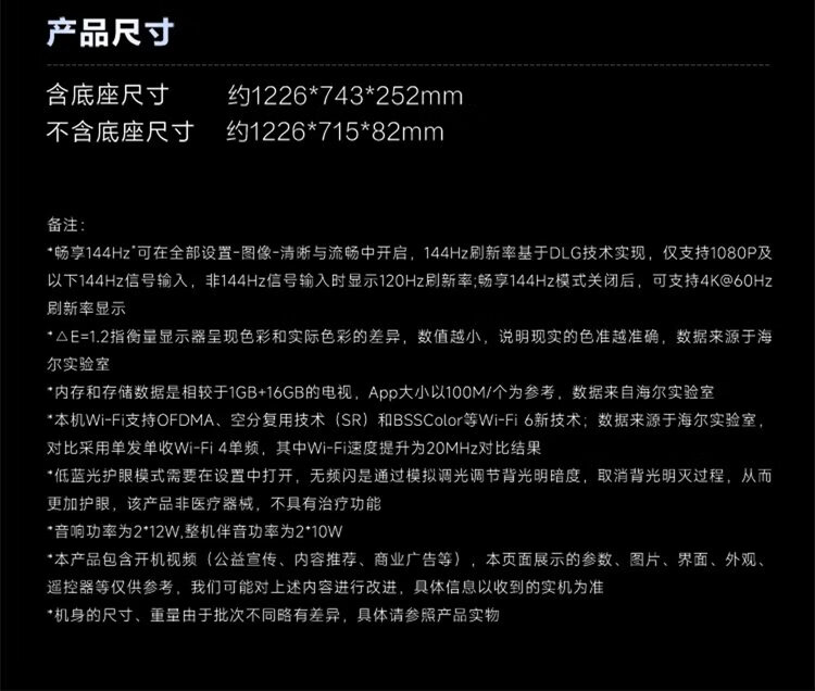 Haier TV includes installation version, fixed rack, comes with one package, 55H5C 55-inch 4K Ultra HD 144Hz High Brush High Color Gamut 3+32GB Game Intelligence Level 1 Energy Efficiency