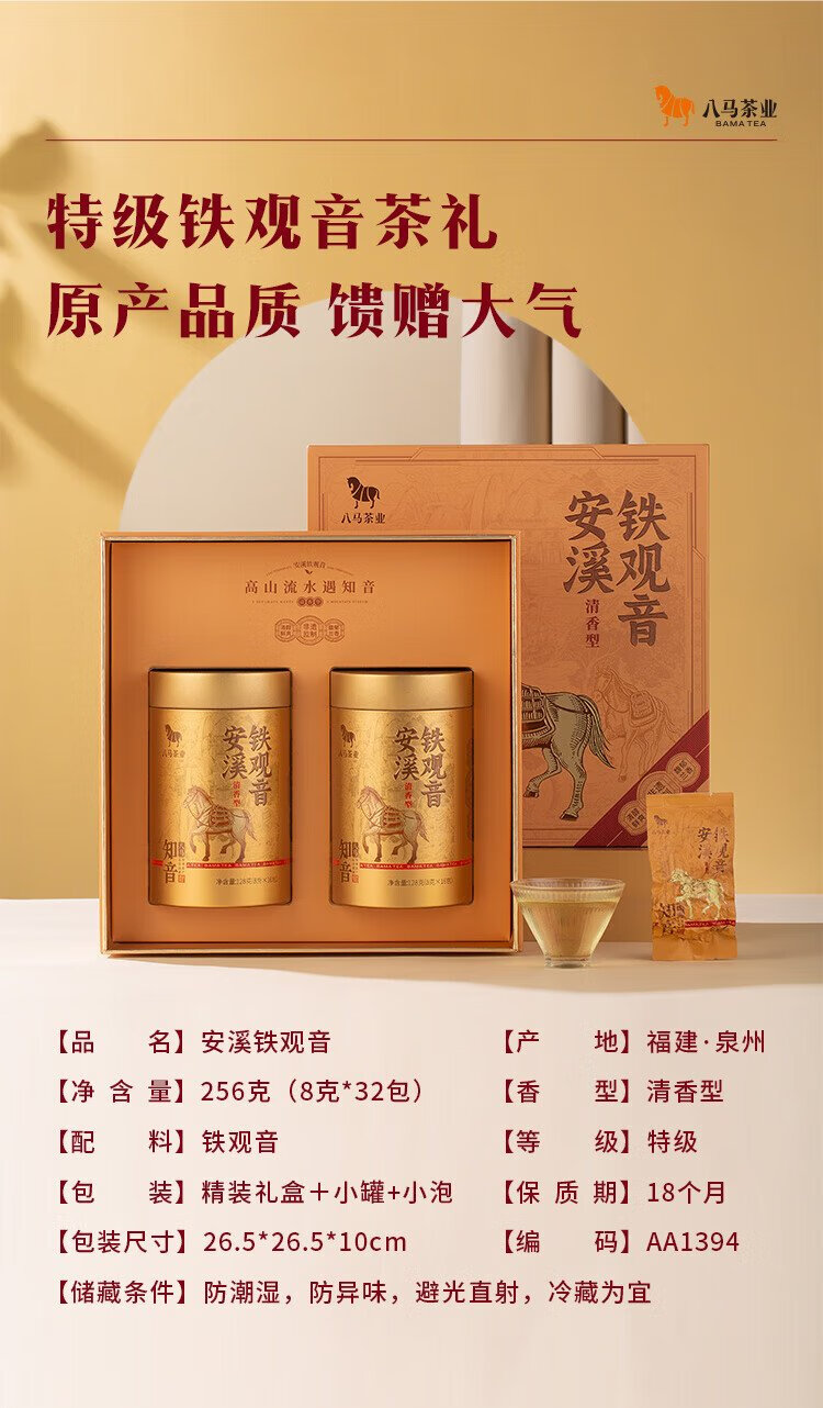 Bama Tea Industry Oolong Tea Zhiyin Anxi Tieguanyin Fresh Fragrance Special Grade 256g Gift Box Tea for Gifts