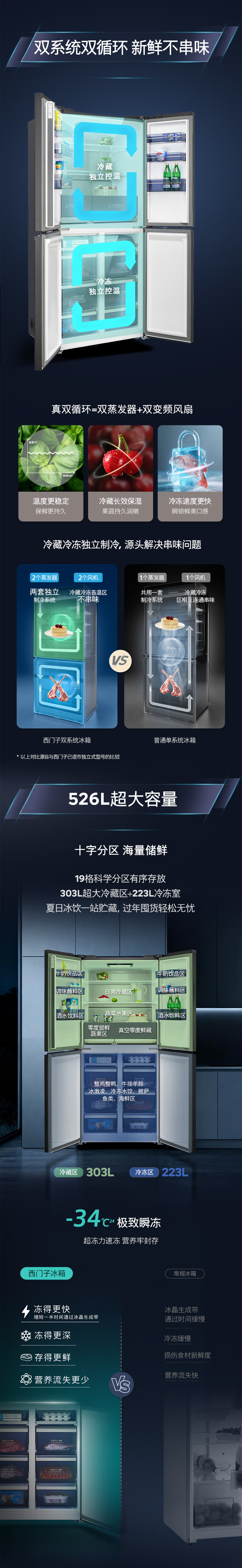 SIEMENS Super Oxygen 526L Cross Door Refrigerator Dual System Vacuum Zero Fresh Storage Large Capacity Intelligent eNose Super Oxygen Fresh Lock Tempered Glass KC82AA657C National Subsidy
