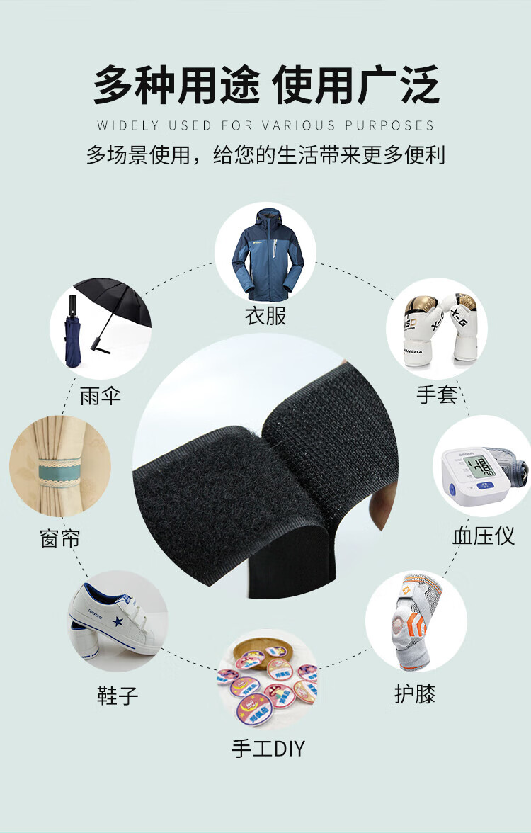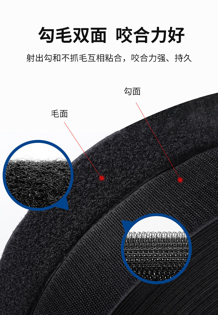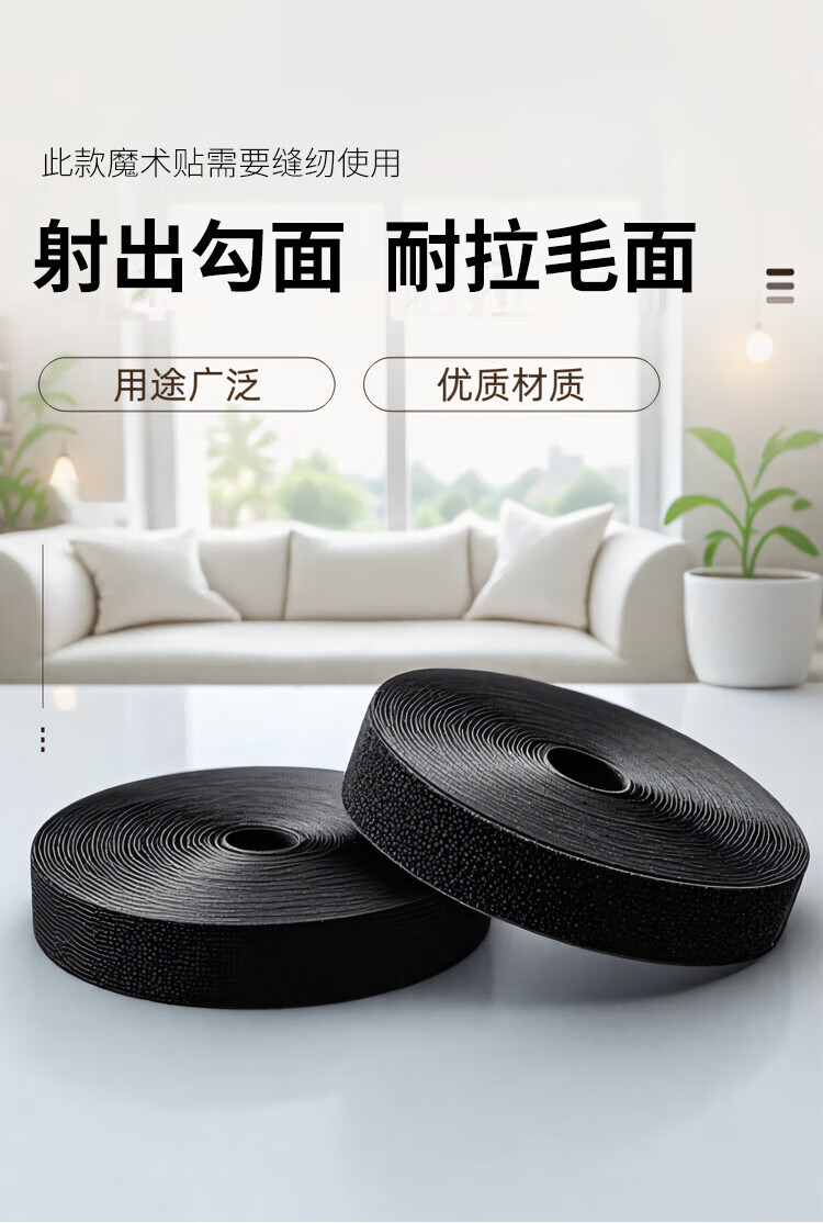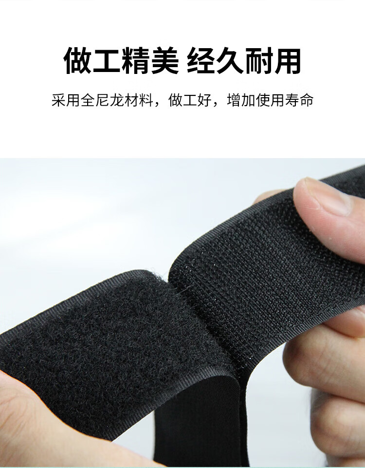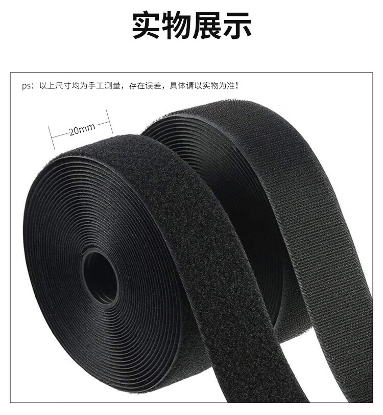 HAILE Glue-free Velcro Cable Tape, Mother-in-Line Fleece Self-adhesive Tape, Sewn Black 2cm Wide Hook Surface, Wool Side, 2 Rolls, 2 Meters Each SZD-2H-2M