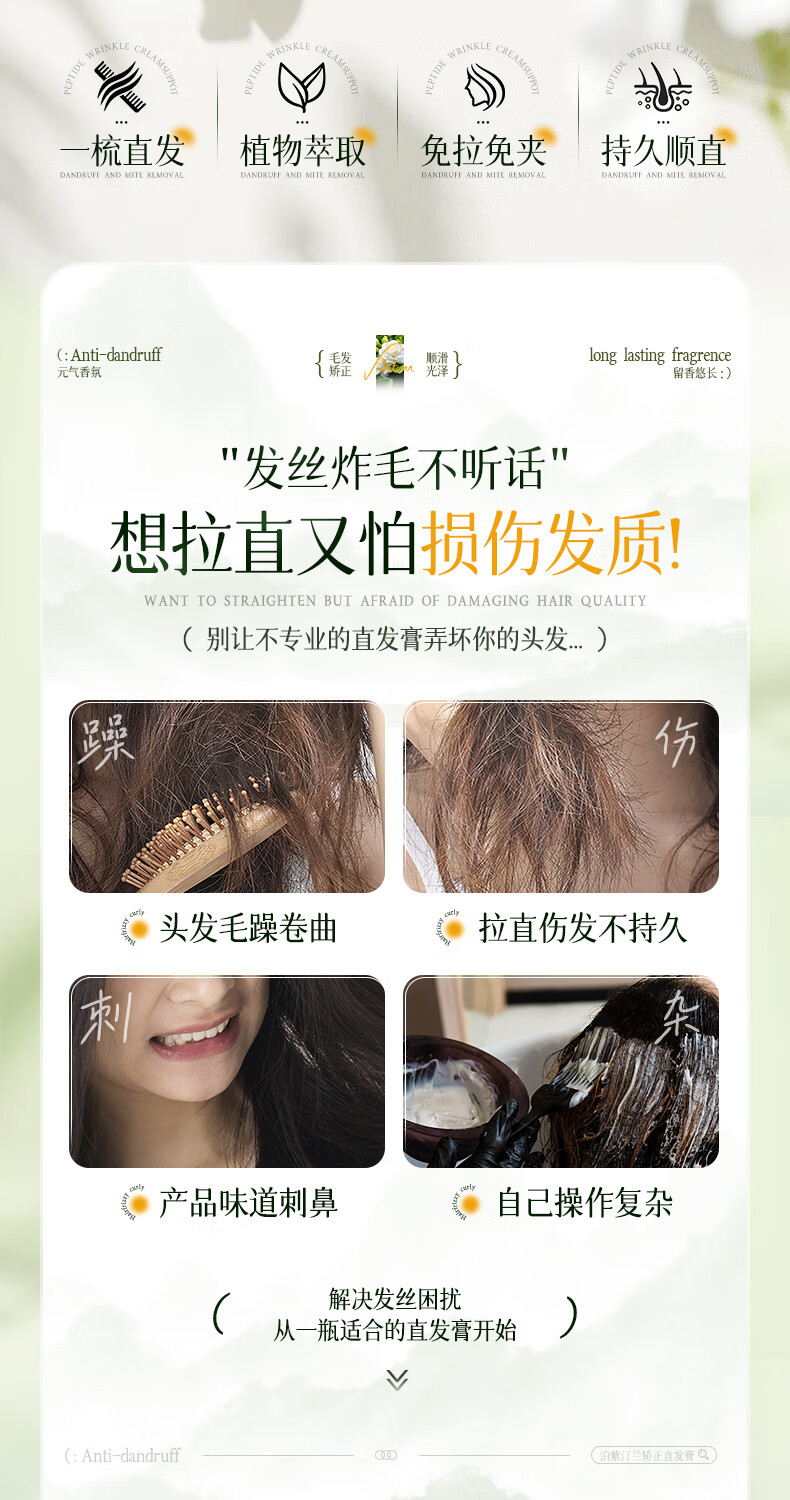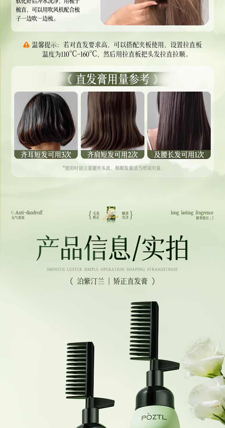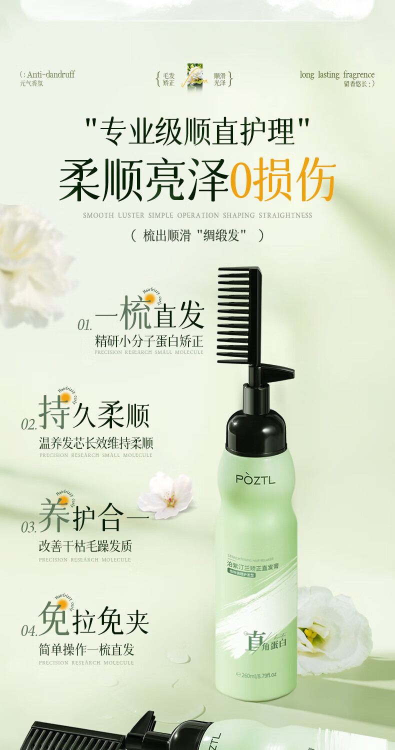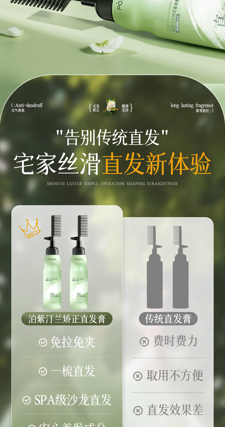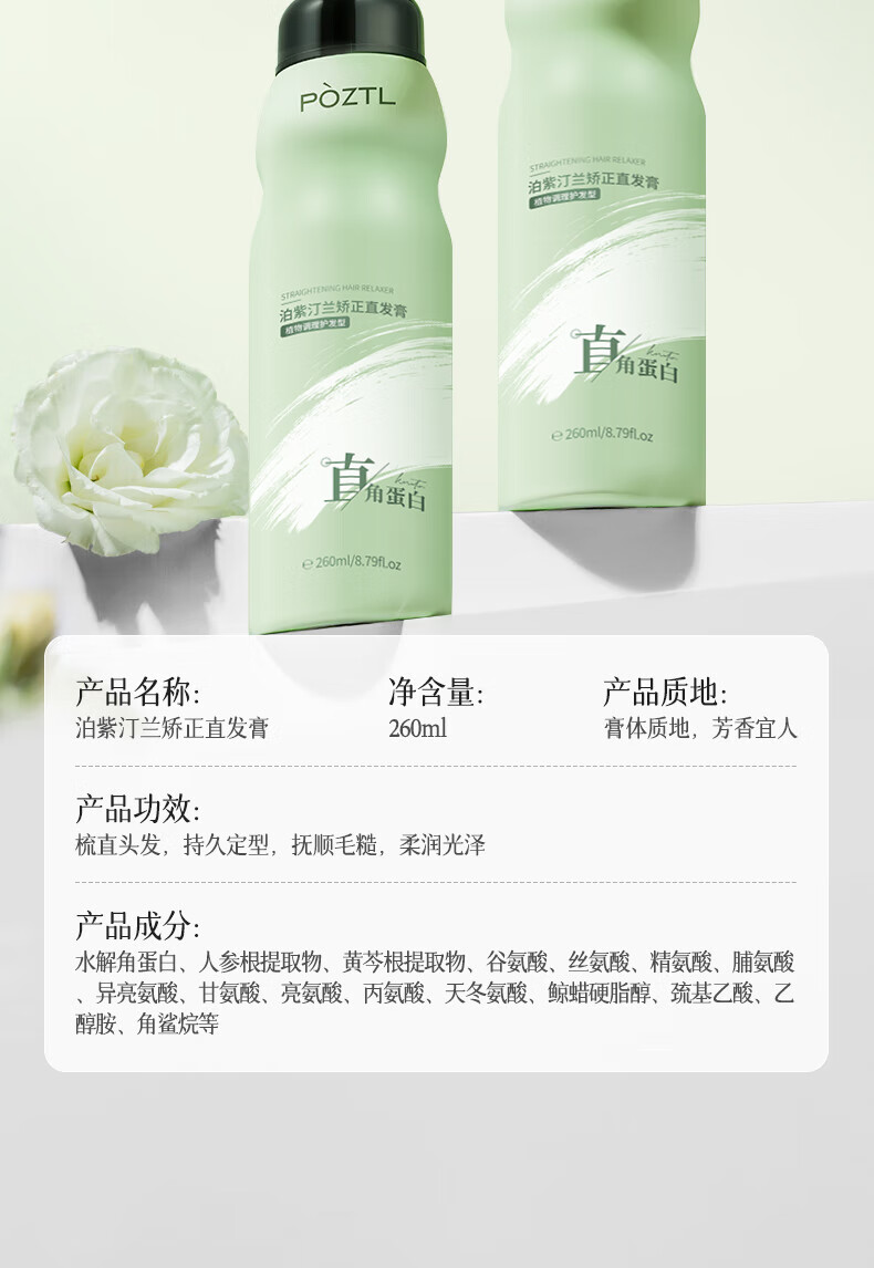 Poxitinlan Protein Corrective Hair Straightening Cream No-pull Household Bangs Clip Hair Styling One-comb Straightening Smoothing and Softening Cream for Men and Women