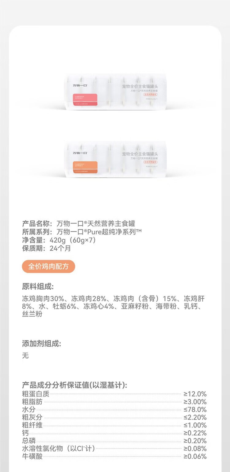 Pure Ultra Pure Series Full Price Chicken Flavor Staple Food Cans Cat Staple Food Cans Nutritional Weight Gain 60g*14 Cans