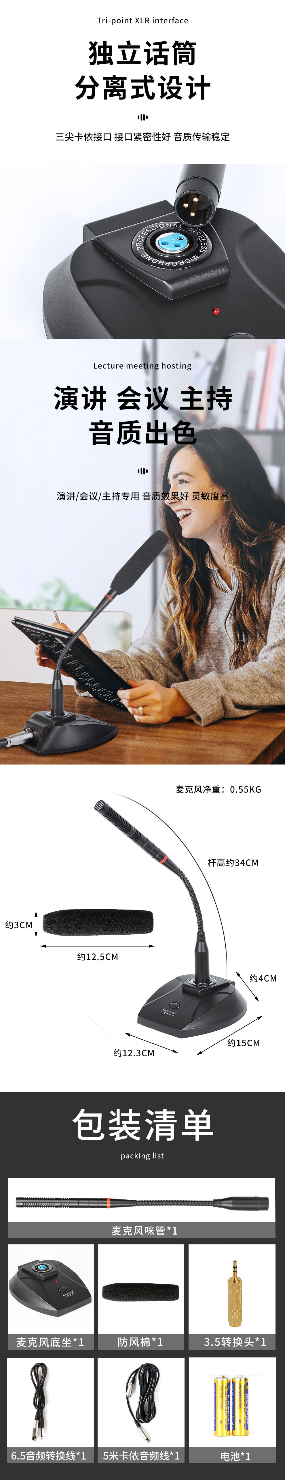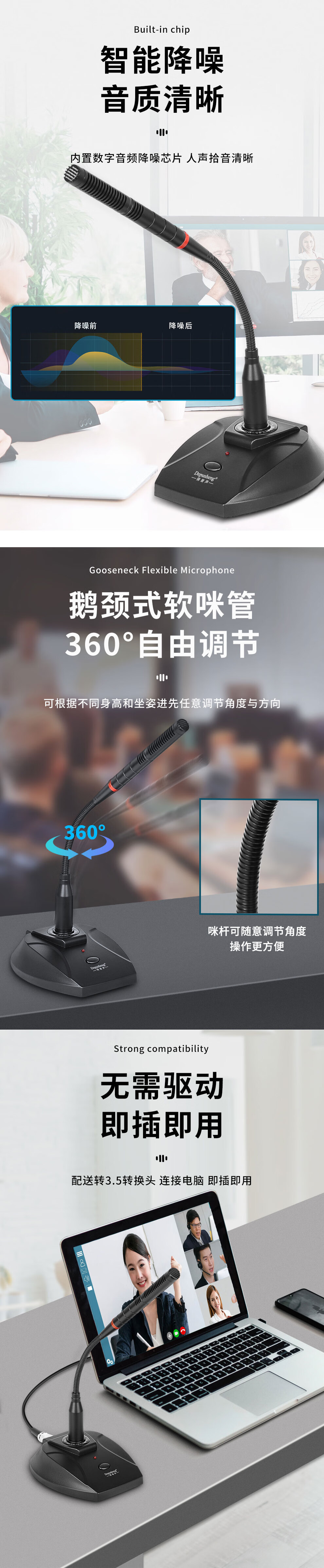 DepushengD110 professional wired conference microphone training speech call broadcast online class teaching voice nail all-in-one recording condenser computer wired desktop gooseneck microphone