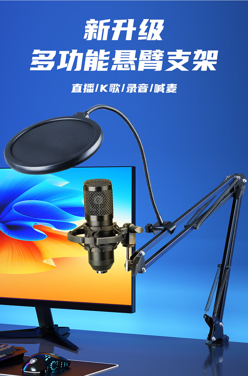 DepushengA6 microphone stand cantilever live broadcast microphone karaoke recording dubbing with goods anchor condenser microphone pop-up cover shock-proof frame desktop universal folding frame thickened and bold professional