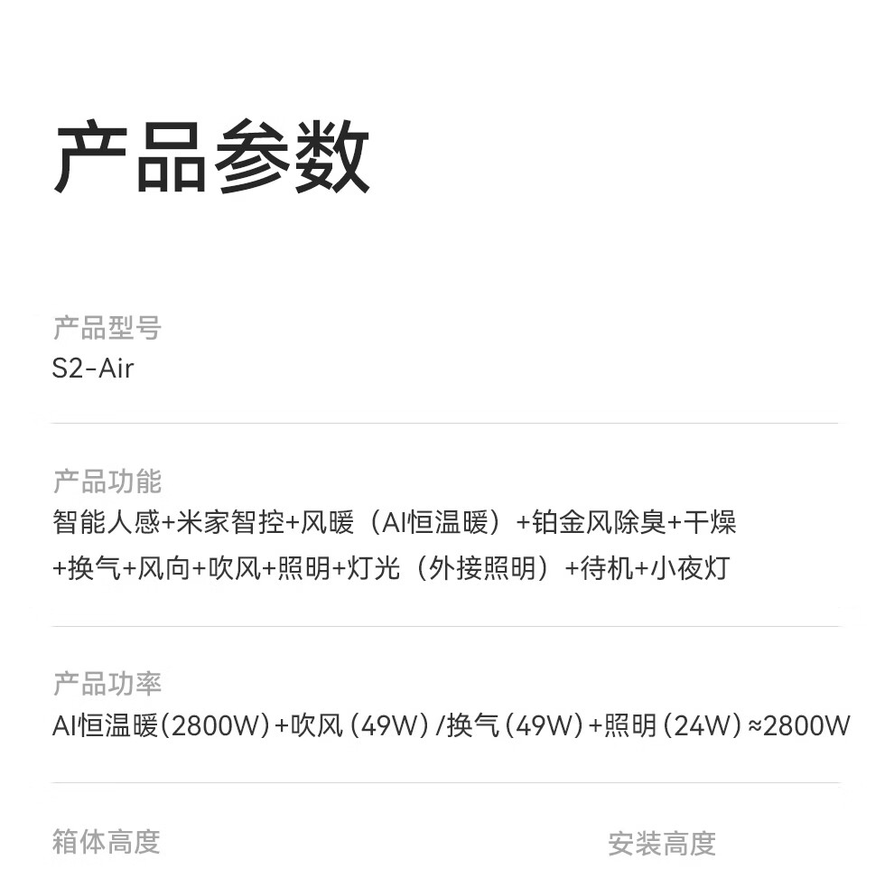Aopu Smart Bathroom Renewal Subsidy Smart Series AI Human Sensing Constant Temperature Deodorization Warm Air Ventilation All-in-One S2-Air