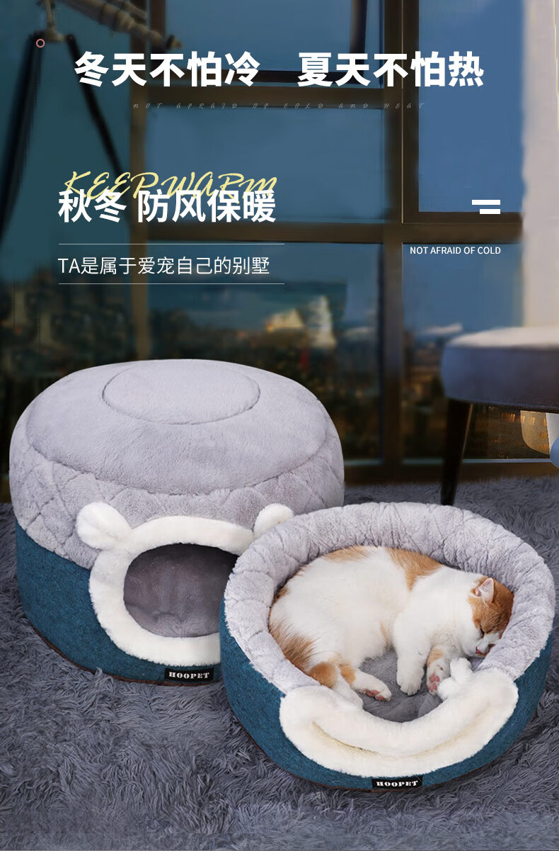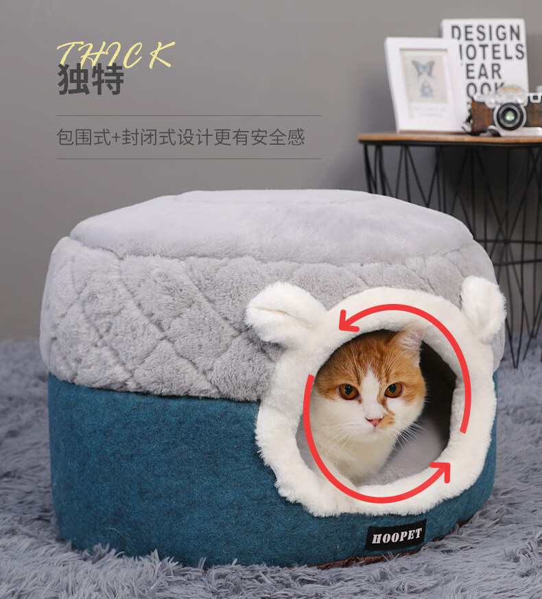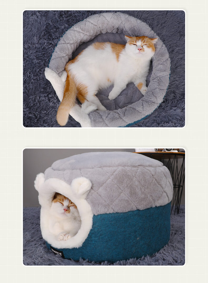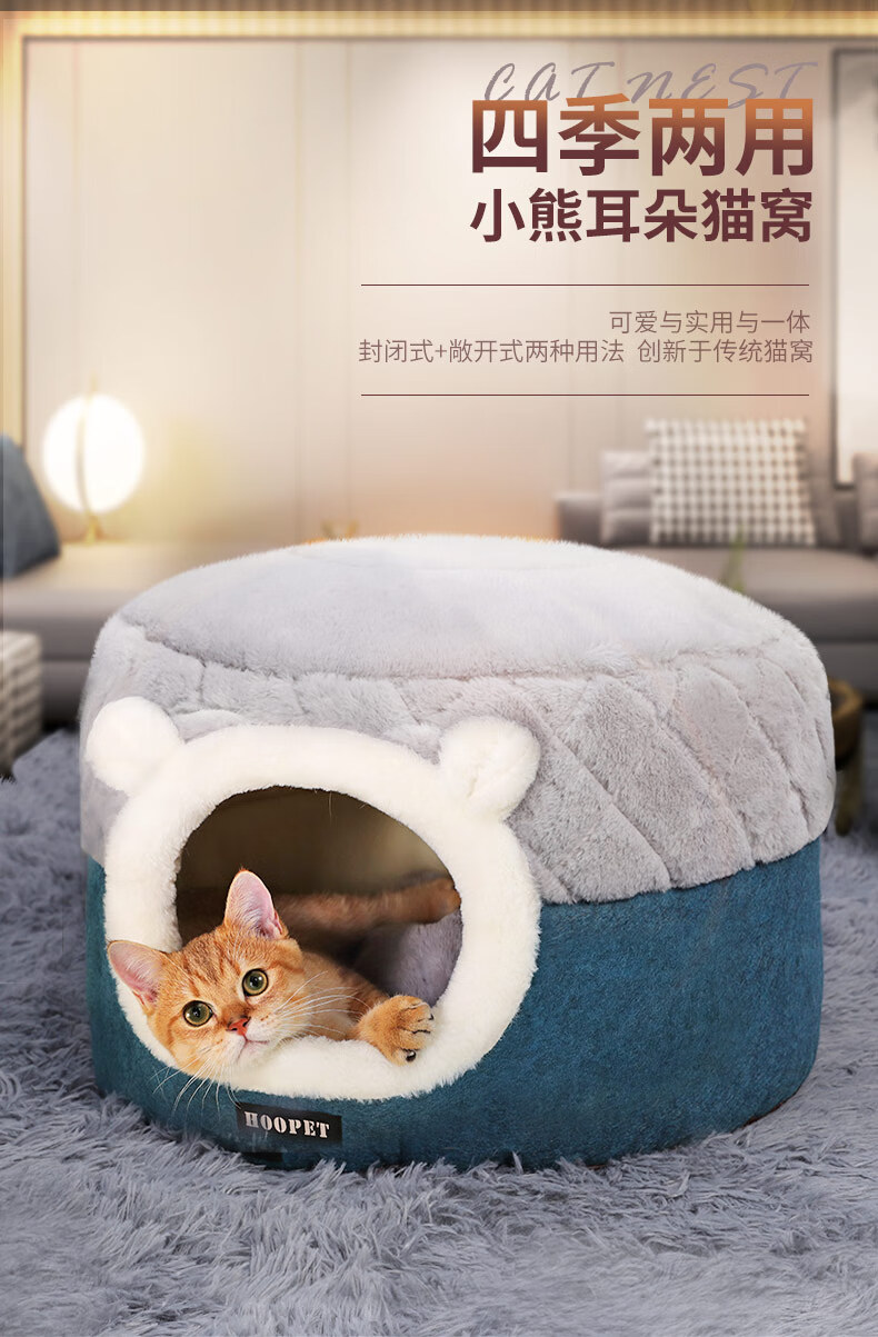 Huayuan Pets (hoopet) Cat House Closed Four-Season Cat House Cat Bed Kitten Winter Warm Cat House Removable and Washable Mat Pet Nest Dual-Purpose Closed Cat House Removable and Washable Mat M 50*50*H36cm (suitable for cats under 15 pounds)