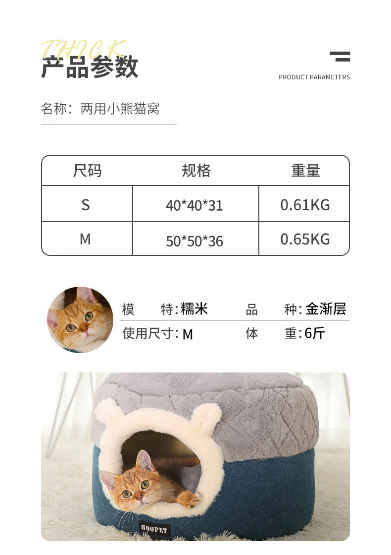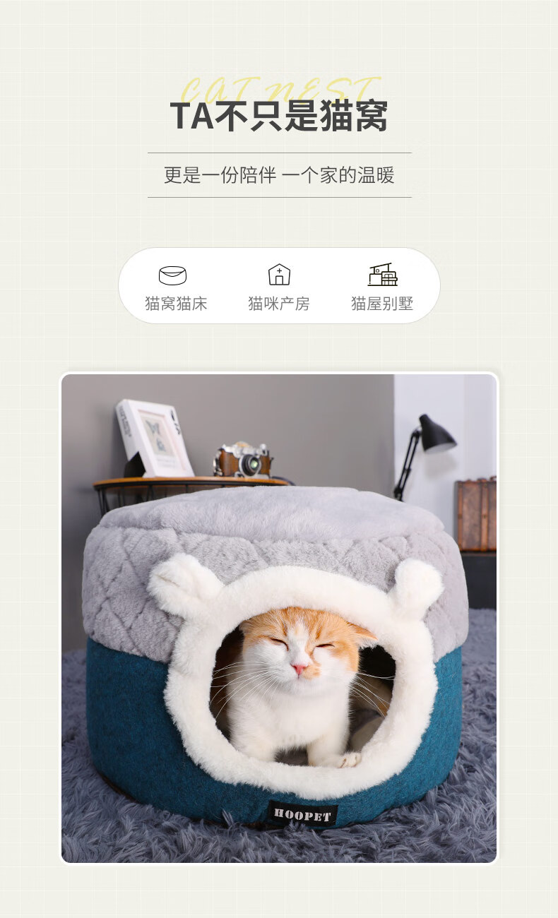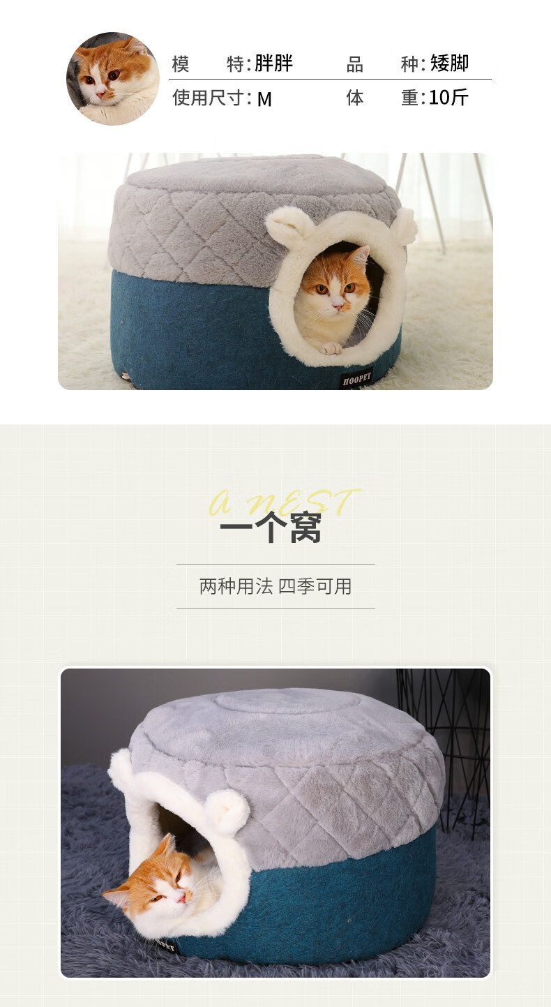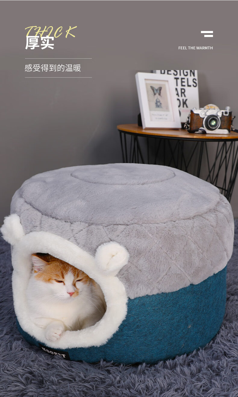 Huayuan Pets (hoopet) Cat House Closed Four-Season Cat House Cat Bed Kitten Winter Warm Cat House Removable and Washable Mat Pet Nest Dual-Purpose Closed Cat House Removable and Washable Mat M 50*50*H36cm (suitable for cats under 15 pounds)