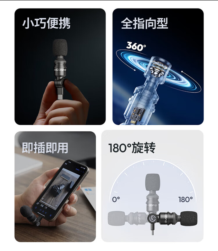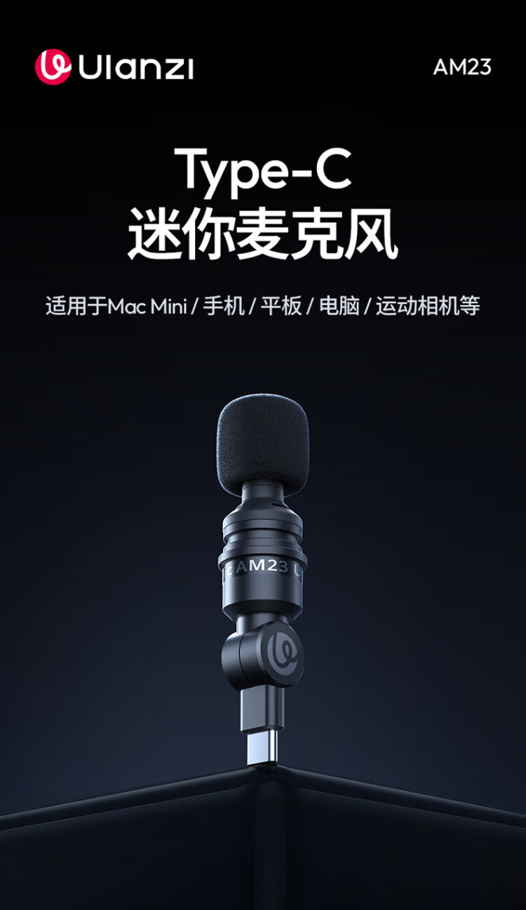 Ulanzi AM23 USB C mini microphone for live video shooting Vlog compact and portable Type-C direct plug-in small microphone