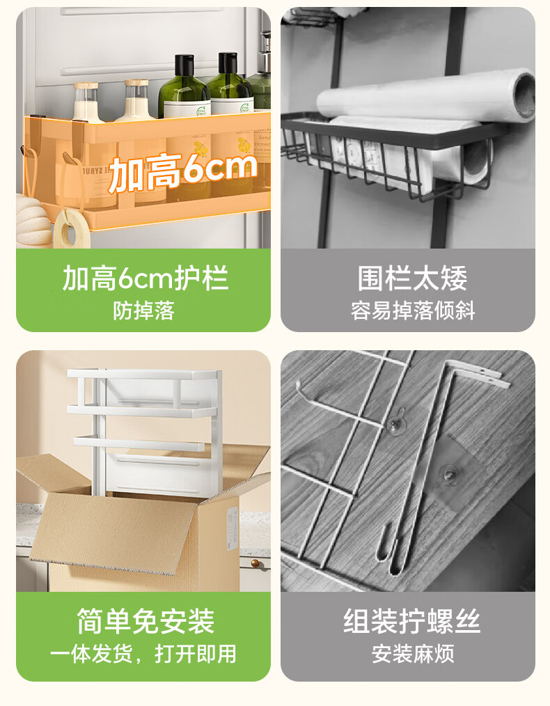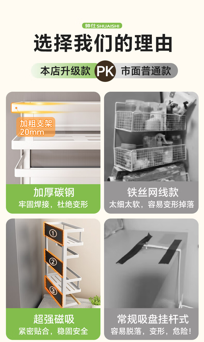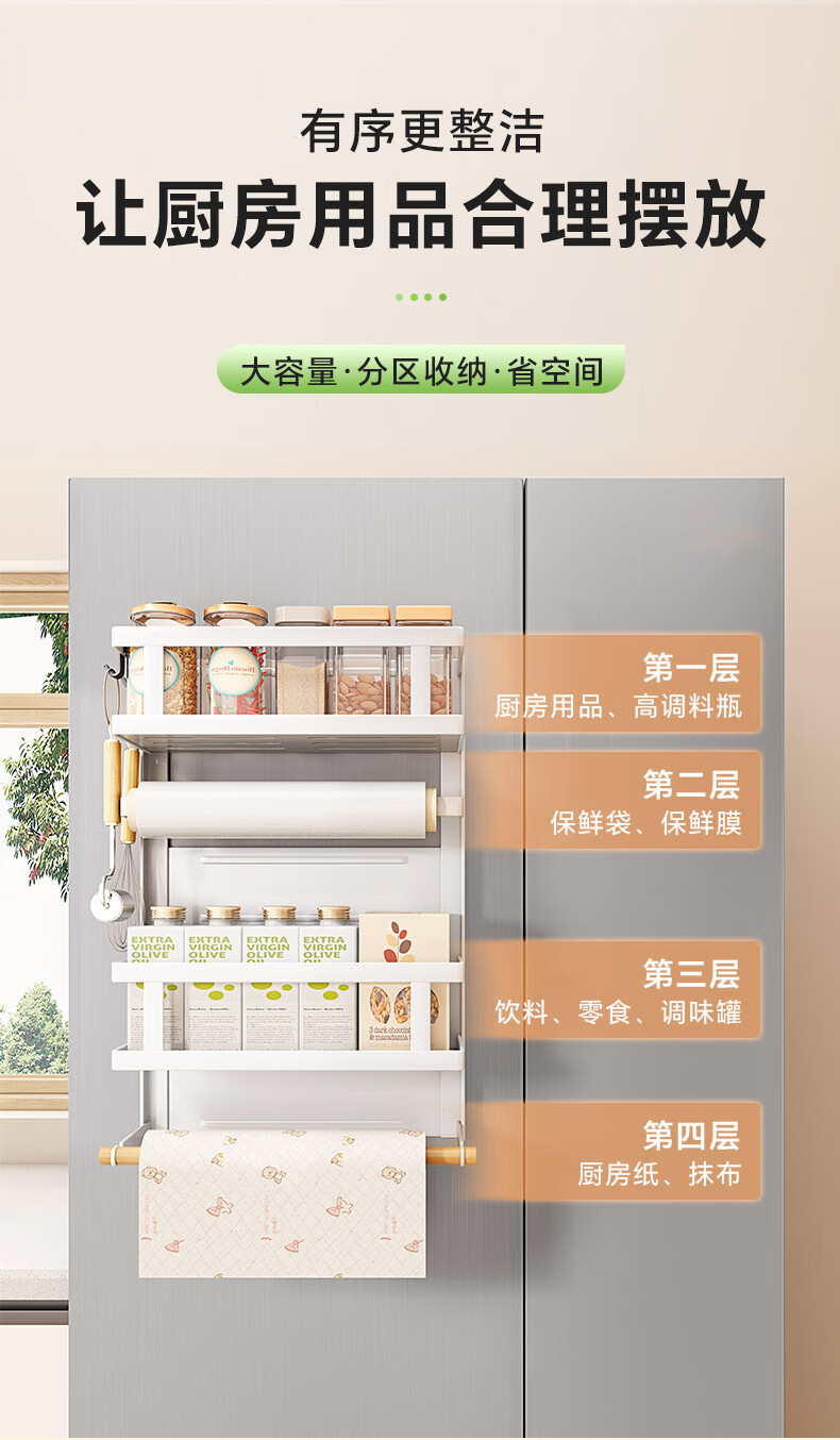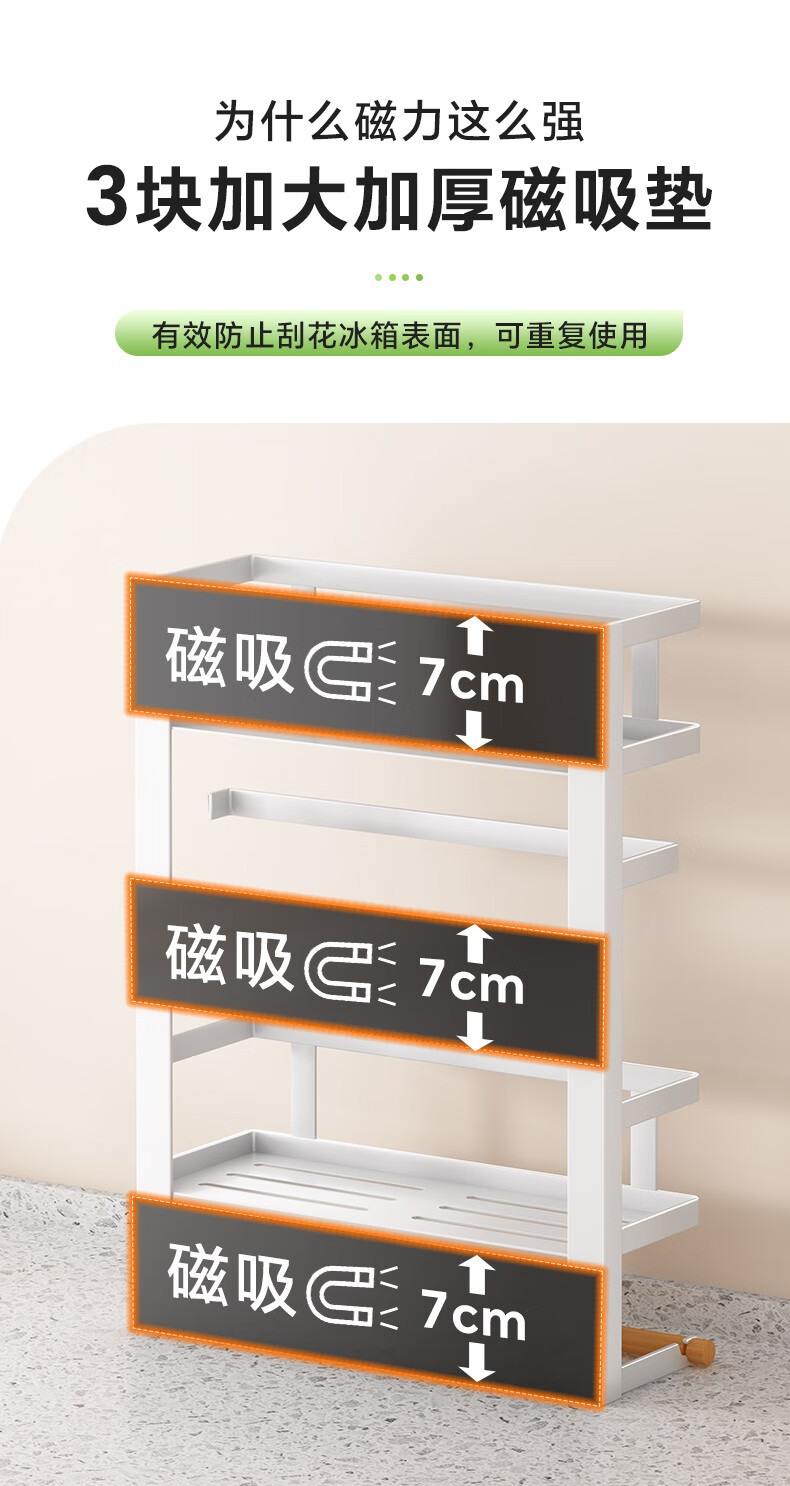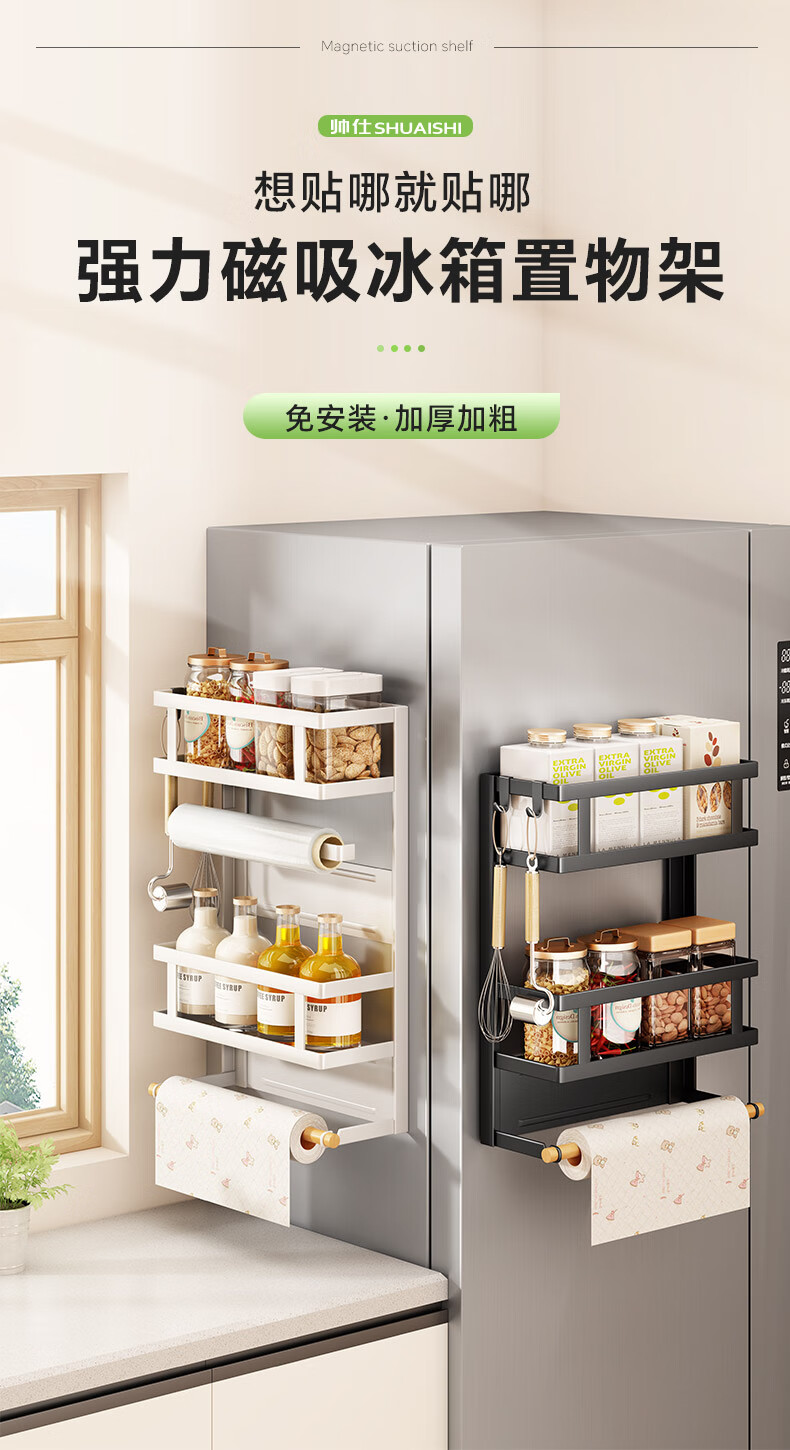 Shuaishi (shuaishi) refrigerator side storage rack kitchen storage rack wall-mounted refrigerator hanging rack magnetic hook multi-functional storage shelf