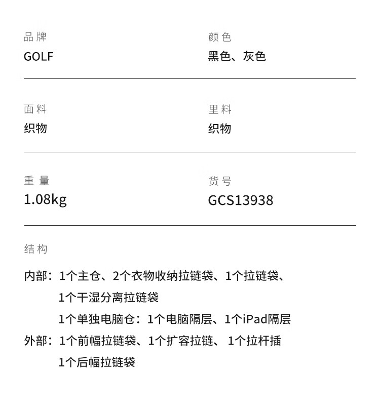 Golf (GOLF) Backpack Men's Business Travel Backpack Expandable Computer Bag 16/17.3 Inch Laptop Portable Luggage Bag