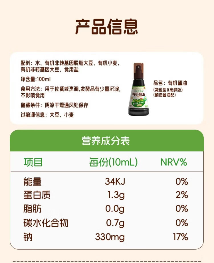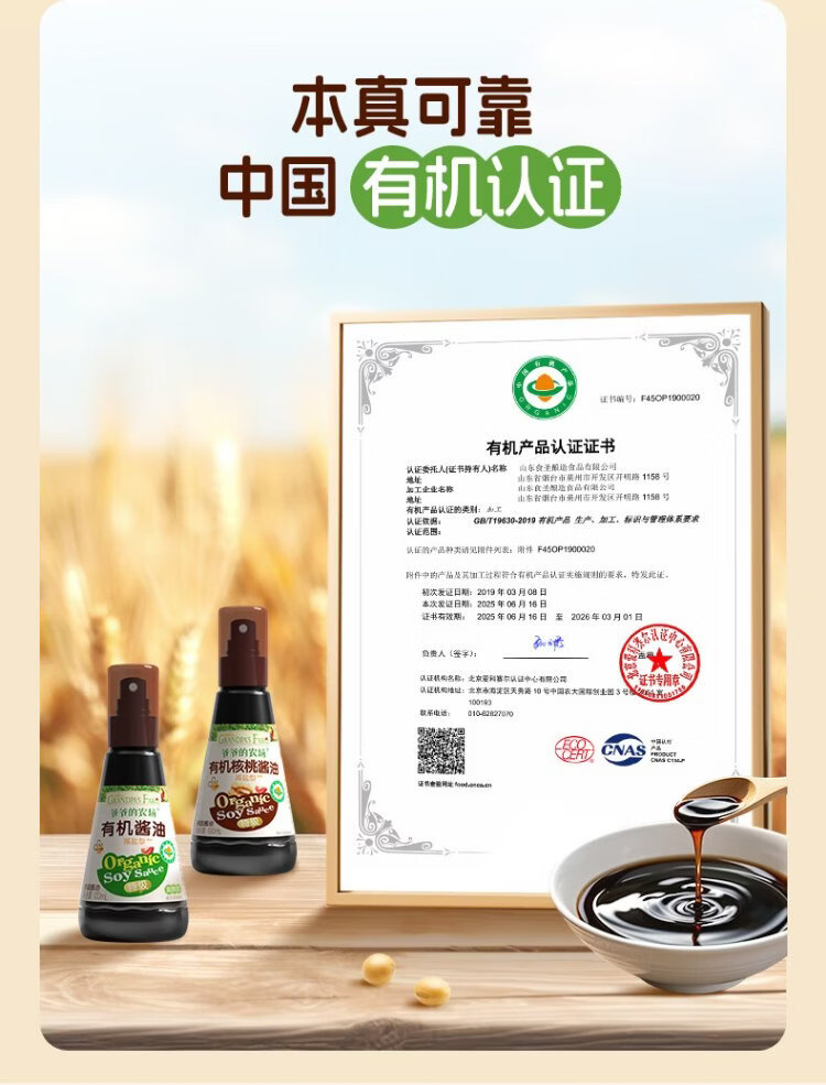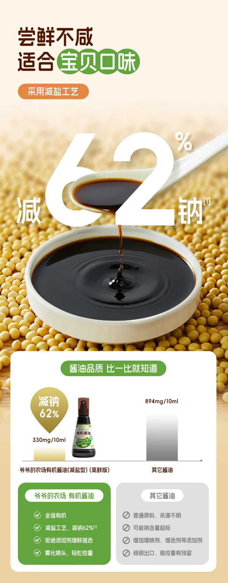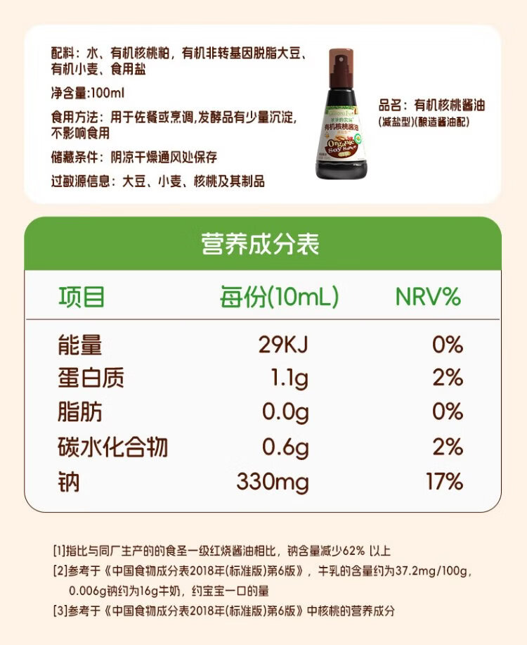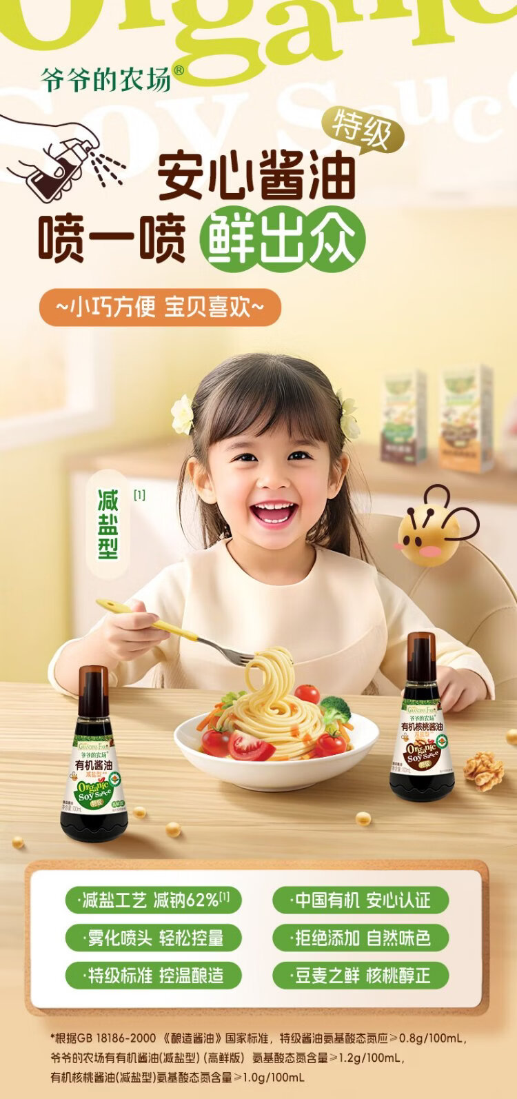 Grandpa's Farm organic spray walnut soy sauce 100ml salt-reduced seasoning for children and babies, free baby supplement recipe with clean ingredients