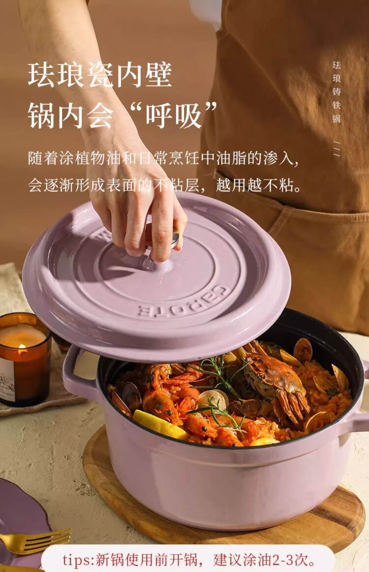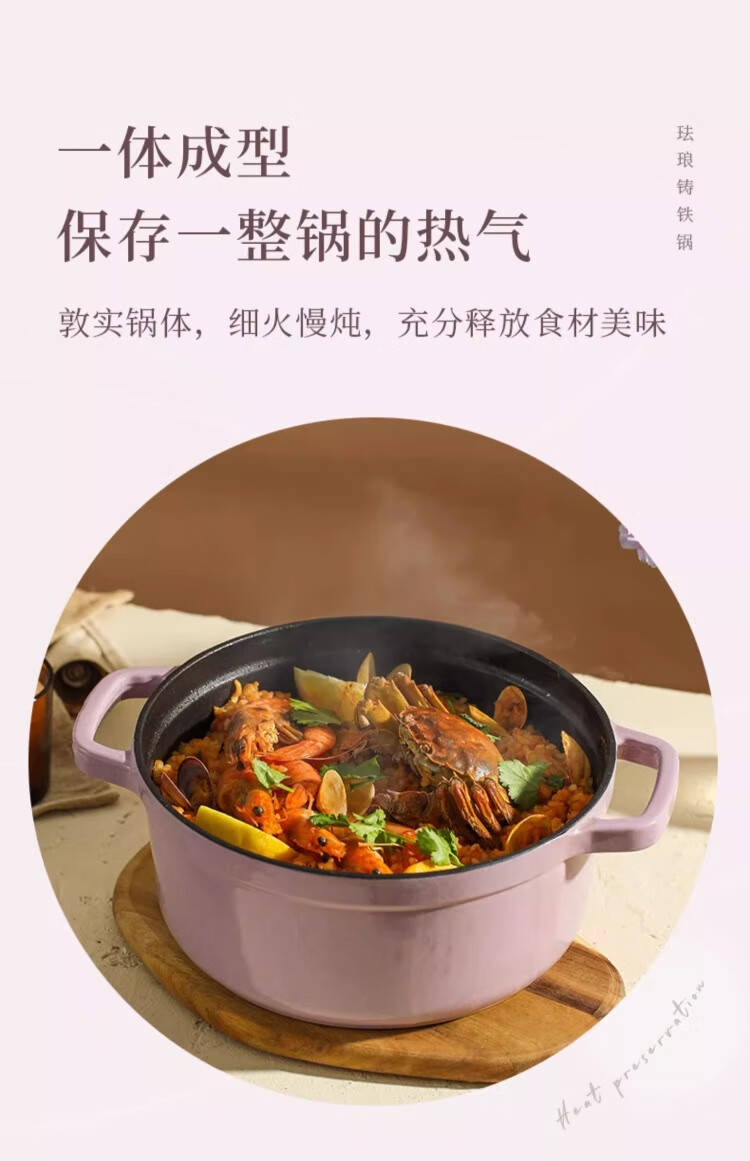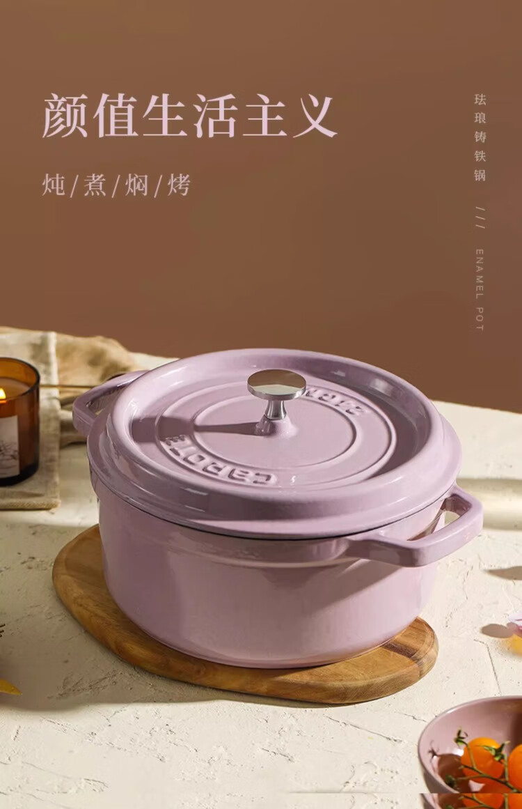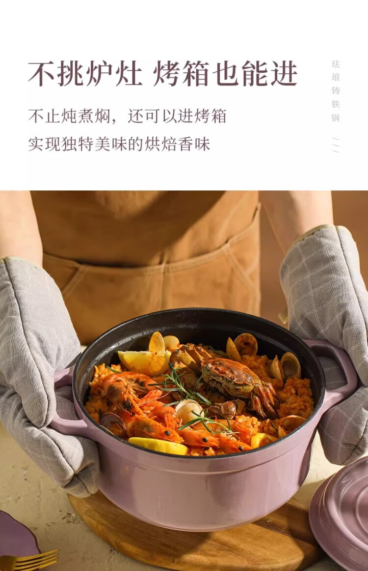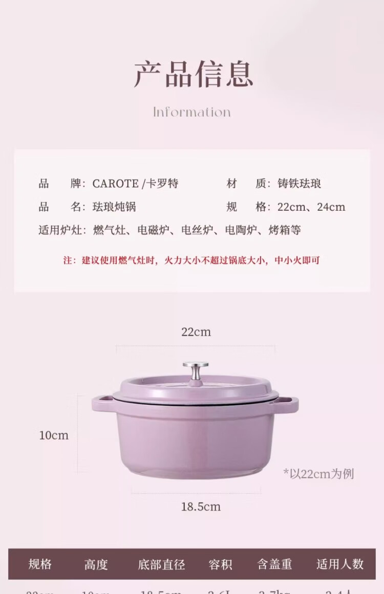 Carrot enamel pot cast iron pot household stew pot stew pot casserole soup pot stew pot non-stick pot induction cooker cooking pot 22cm