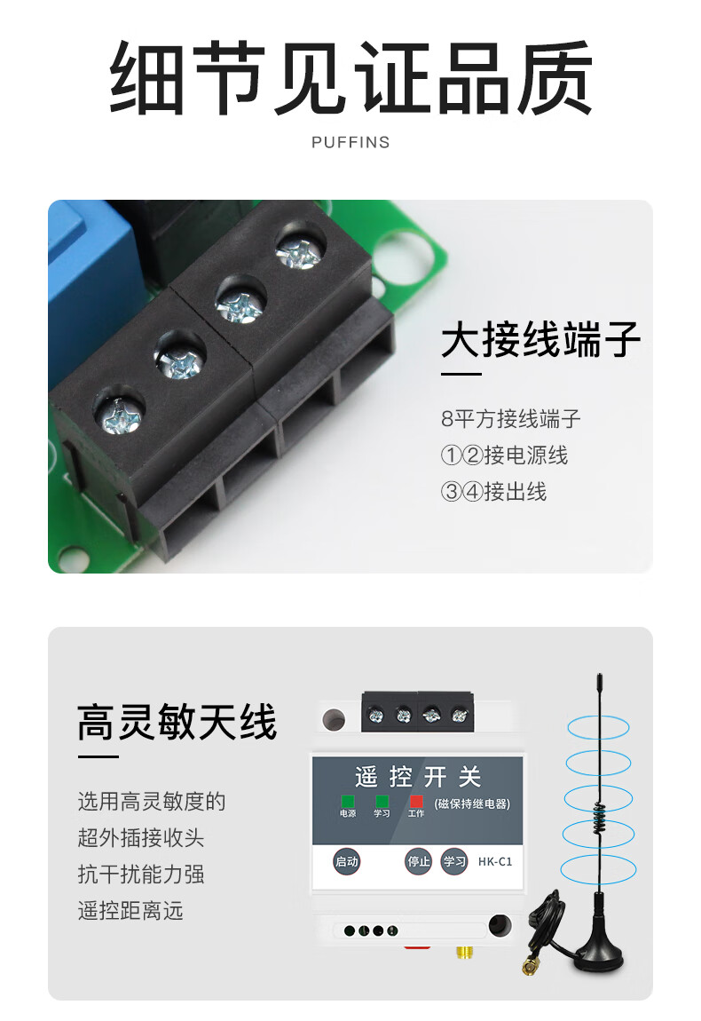 Puffin 220V water pump wireless remote control switch ultra-remote timing control can penetrate the wall high-power intelligent light control motor oxygenation 3 kilometers 220V remote control switch 10KW remote control *1