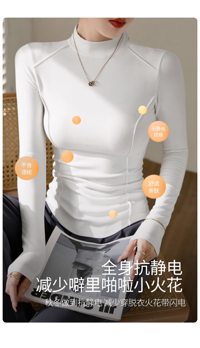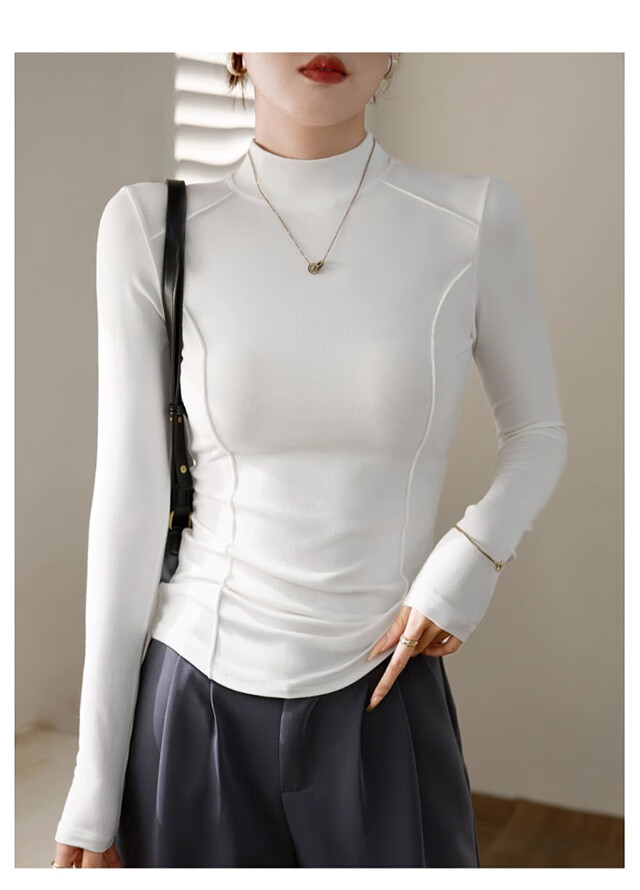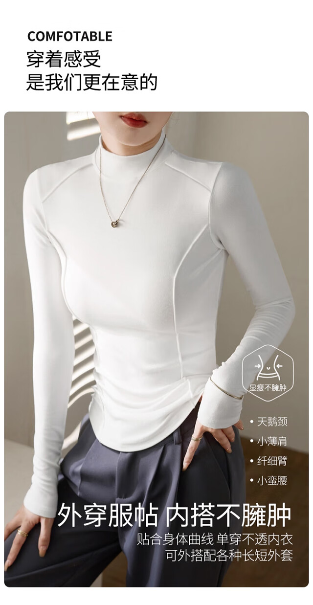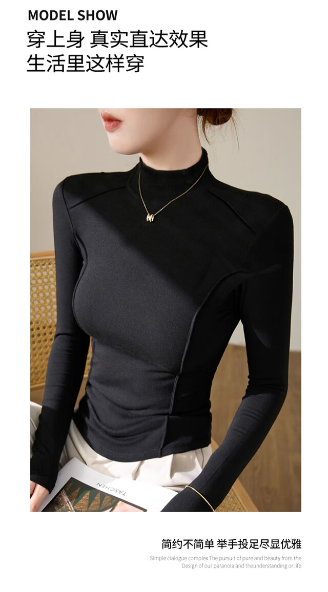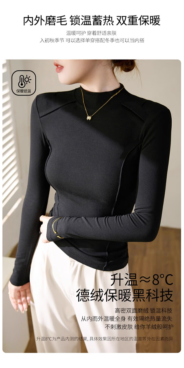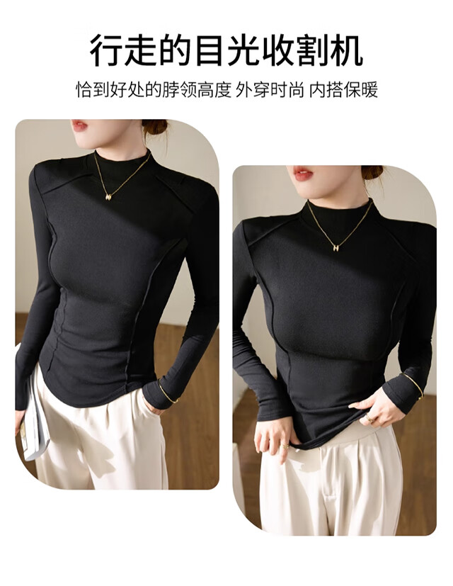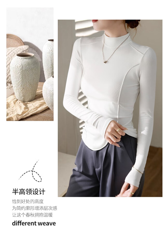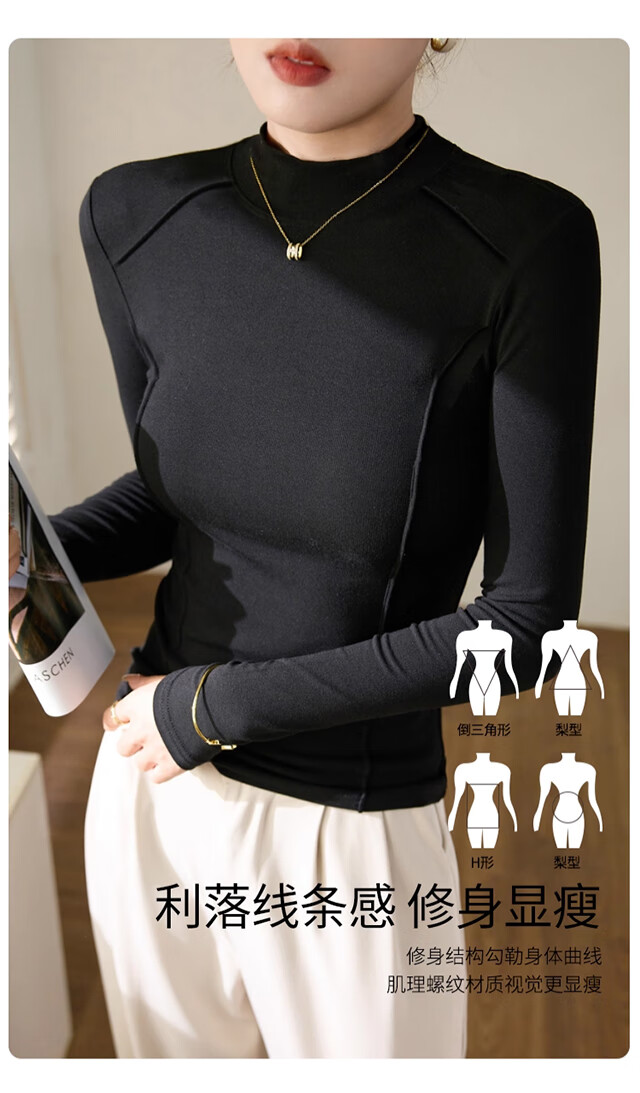 Langsha Half Turtle Collar Bottoming Shirt Women's Wool Silk Autumn and Winter German Velvet Heating Slim Herringbone Line Autumn Clothes