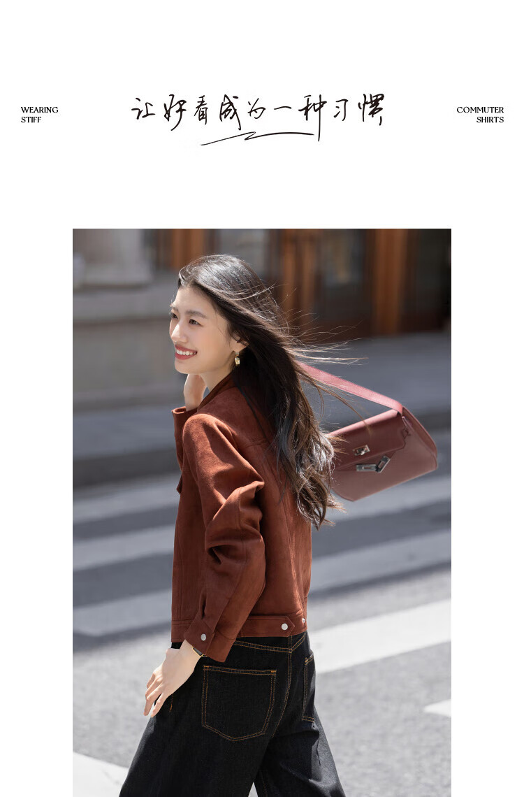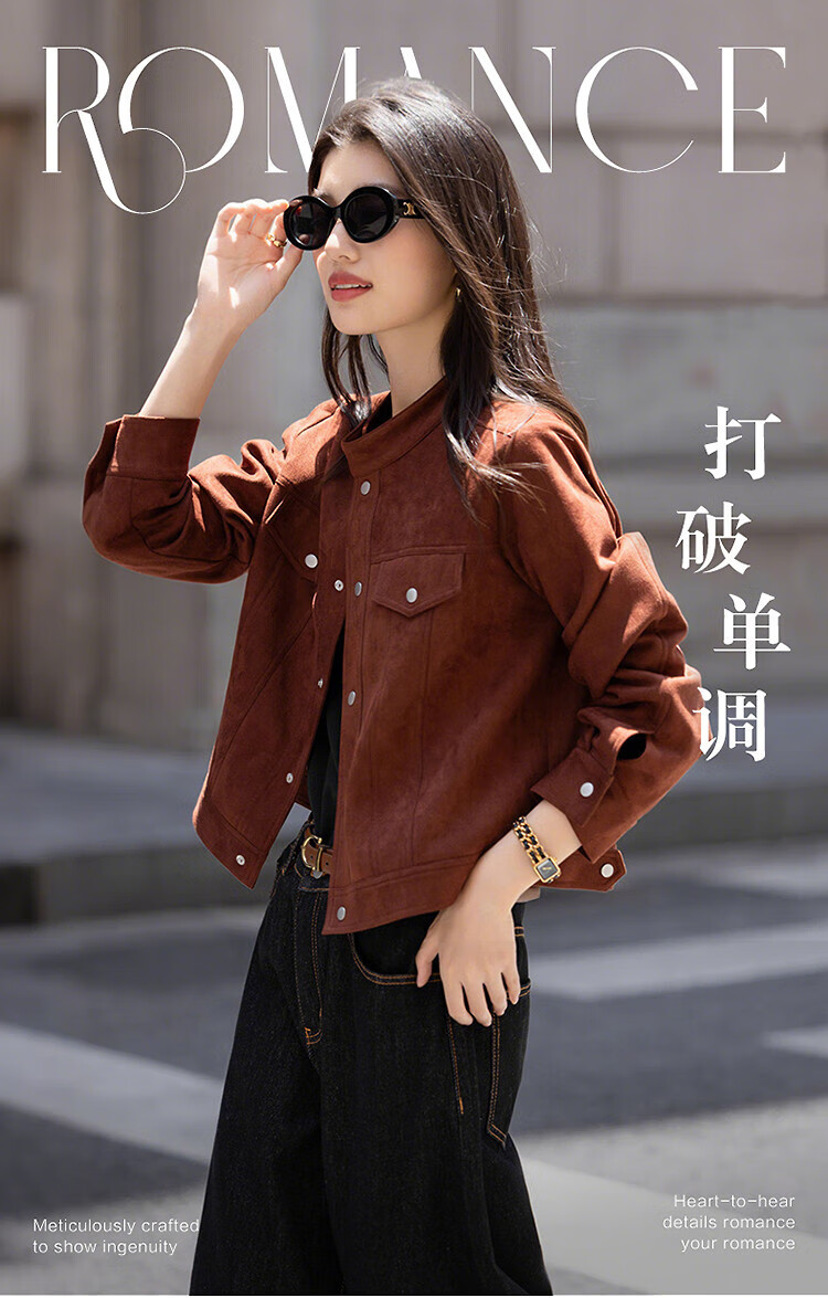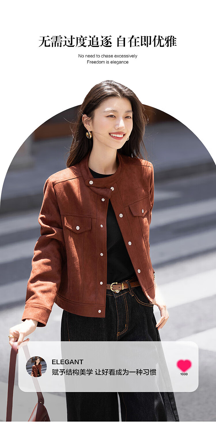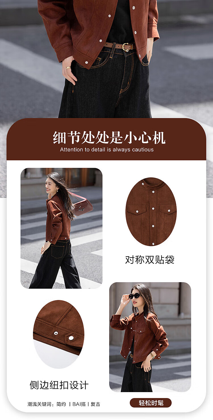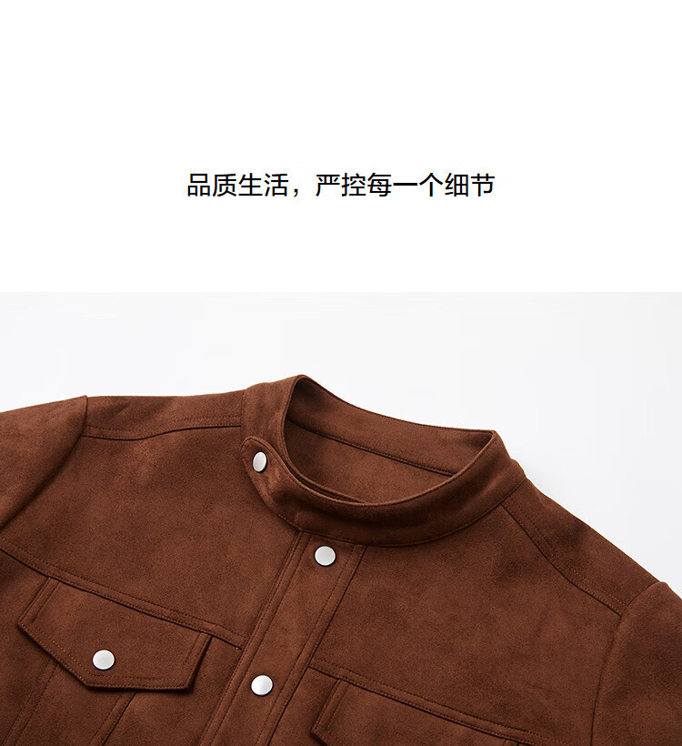 De Mana embraces long-termism, autumn minimalist style suede small stand-up collar fake pockets loose temperament women's jacket